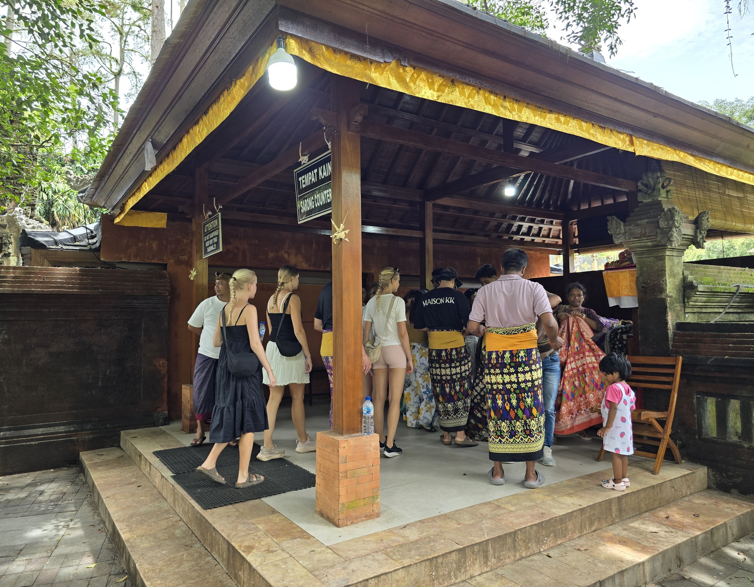 Trước khi bước vào đền, du khách và người hành hương đều phải thực hiện nghi thức quấn sarong, trang phục truyền thống của người Bali, như một cách thể hiện sự tôn kính với thần linh.
