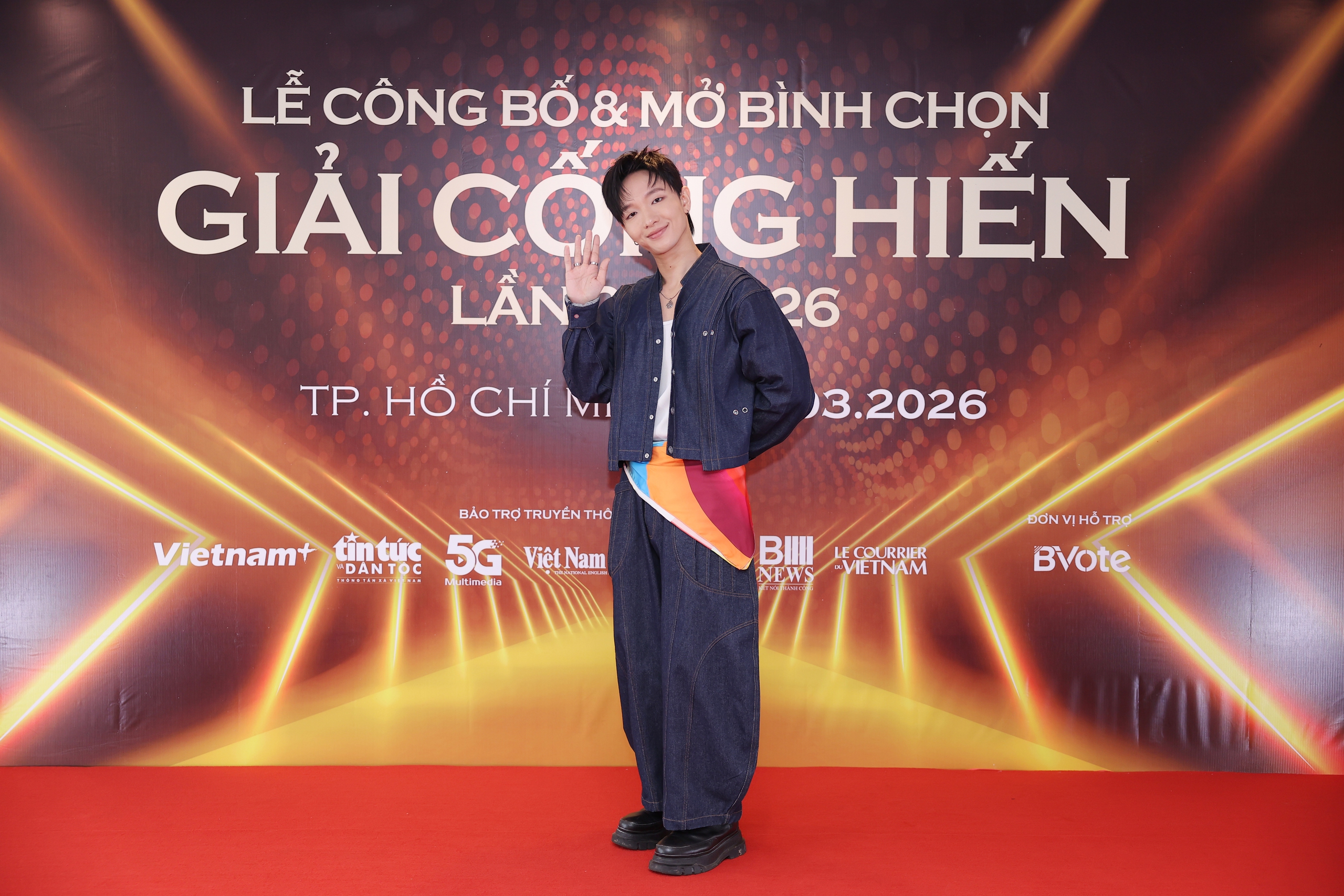 Nhà báo Nguyễn Thiện Thuật, Tổng Biên tập Báo Thể thao và Văn hóa (giữa), Trưởng BTC Giải Cống hiến lần 20 - 2026 và Ca sĩ Hòa Minzy (trái) Đại sứ Giải Cống hiến lần 20 - 2026 cùng Đại diện Bvote chính thức mở bình chọn Top 10 đề cử Giải Âm nhạc Cống hiến