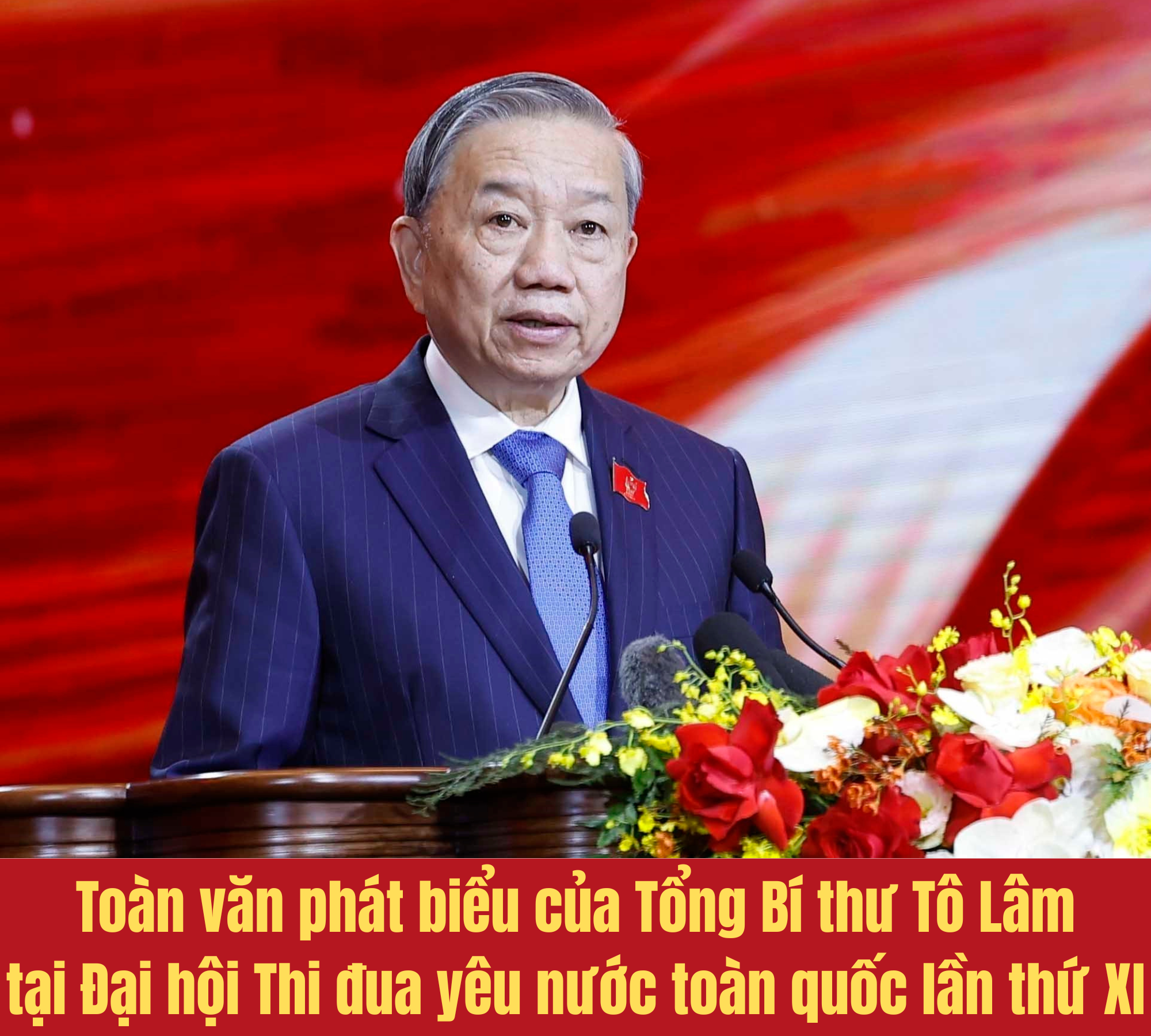 Hôm nay, chúng ta long trọng tổ chức Đại hội Thi đua yêu nước toàn quốc lần thứ XI trong không khí cả nước thi đua lập thành tích hướng tới hoàn thành những mục tiêu lớn của đất nước, hướng tới Đại hội đại biểu toàn quốc lần thứ XIV của Đảng. Đây là dịp tổng kết phong trào thi đua và công tác khen thưởng giai đoạn 2021–2025; tôn vinh, biểu dương các tập thể, cá nhân tiêu biểu; đồng thời xác định phương hướng, nhiệm vụ tiếp tục đổi mới công tác thi đua, khen thưởng trong giai đoạn tới.