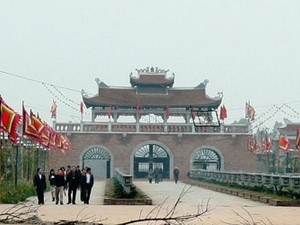 Ông Nguyễn Hồng Chuyên, Chủ tịch UBND huyện Hưng Hà cho biết, năm nay Lễ hội Đền Trần Thái Bình tại Đền thờ các vua Trần xã Tiến Đức, huyện Hưng Hà không chỉ là hoạt động diễn ra thường niên mà còn hưởng ứng Năm Du lịch quốc gia Đồng bằng sông Hồng 2013. Chương trình khai mạc lễ hội này sẽ được truyền hình trực tiếp trên sóng của Đài Phát thanh - Truyền hình Thái Bình từ Hưng Hà, Thái Bình vào 20 giờ ngày 22/2 (tức 13 tháng Giêng âm lịch). Cổng vào Đền Trần, huyện Hưng Hà, Thái Bình. |