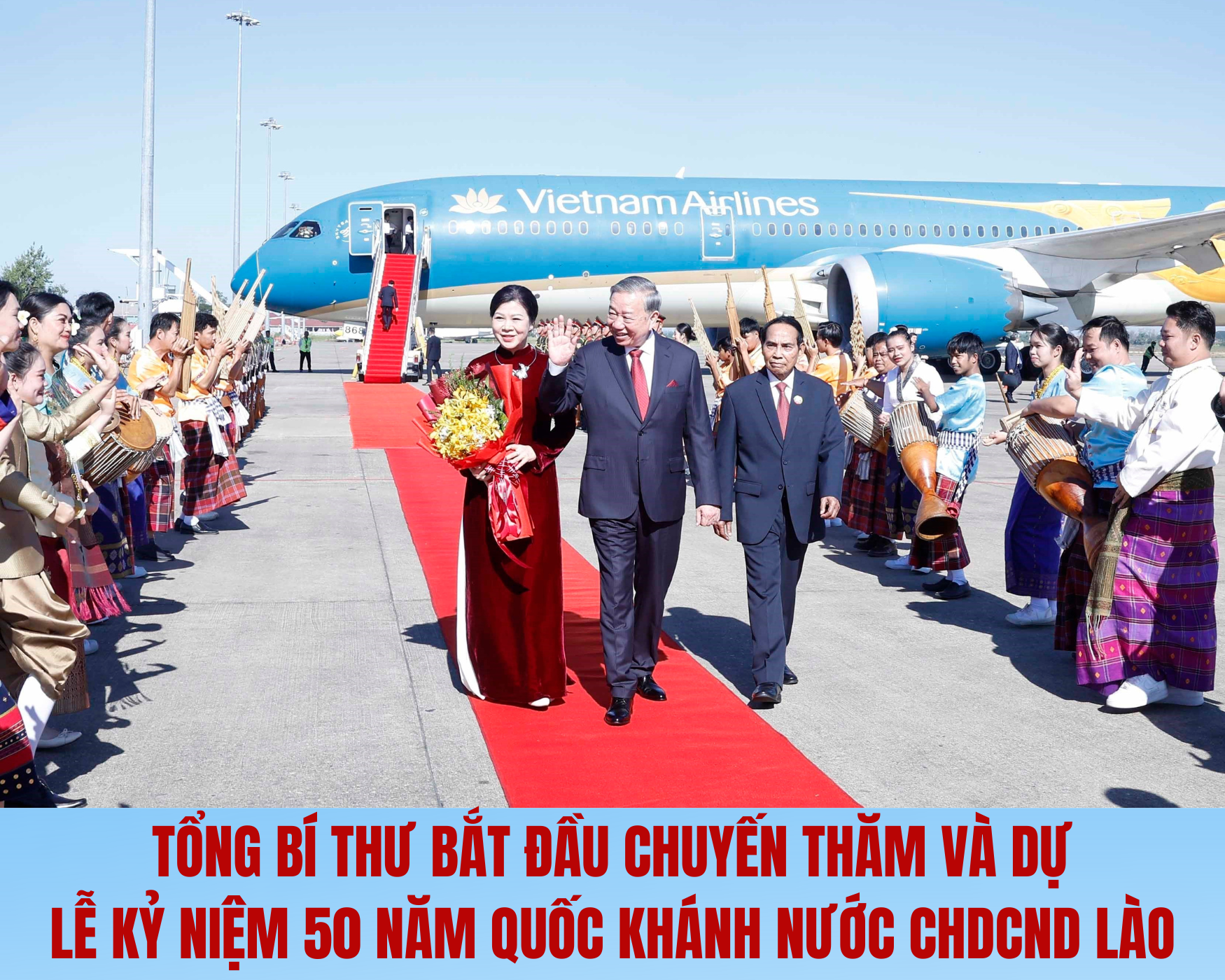 Sáng 1/12, chuyên cơ chở Tổng Bí thư Tô Lâm và Phu nhân Ngô Phương Ly, cùng Đoàn đại biểu cấp cao Việt Nam đã đến sân bay quốc tế Wattay ở thủ đô Viêng Chăn, bắt đầu chuyến thăm cấp Nhà nước tới Cộng hòa Dân chủ Nhân dân Lào, dự Lễ kỷ niệm 50 năm Quốc khánh nước Cộng hòa Dân chủ Nhân dân Lào và đồng chủ trì Cuộc gặp cấp cao giữa Đảng Cộng sản Việt Nam và Đảng Nhân dân Cách mạng Lào theo lời mời của Tổng Bí thư Ban Chấp hành Trung ương Đảng Nhân dân Cách mạng Lào, Chủ tịch nước Cộng hòa Dân chủ Nhân dân Lào Thongloun Sisoulith và Phu nhân từ ngày 1 đến 2/12/2025.