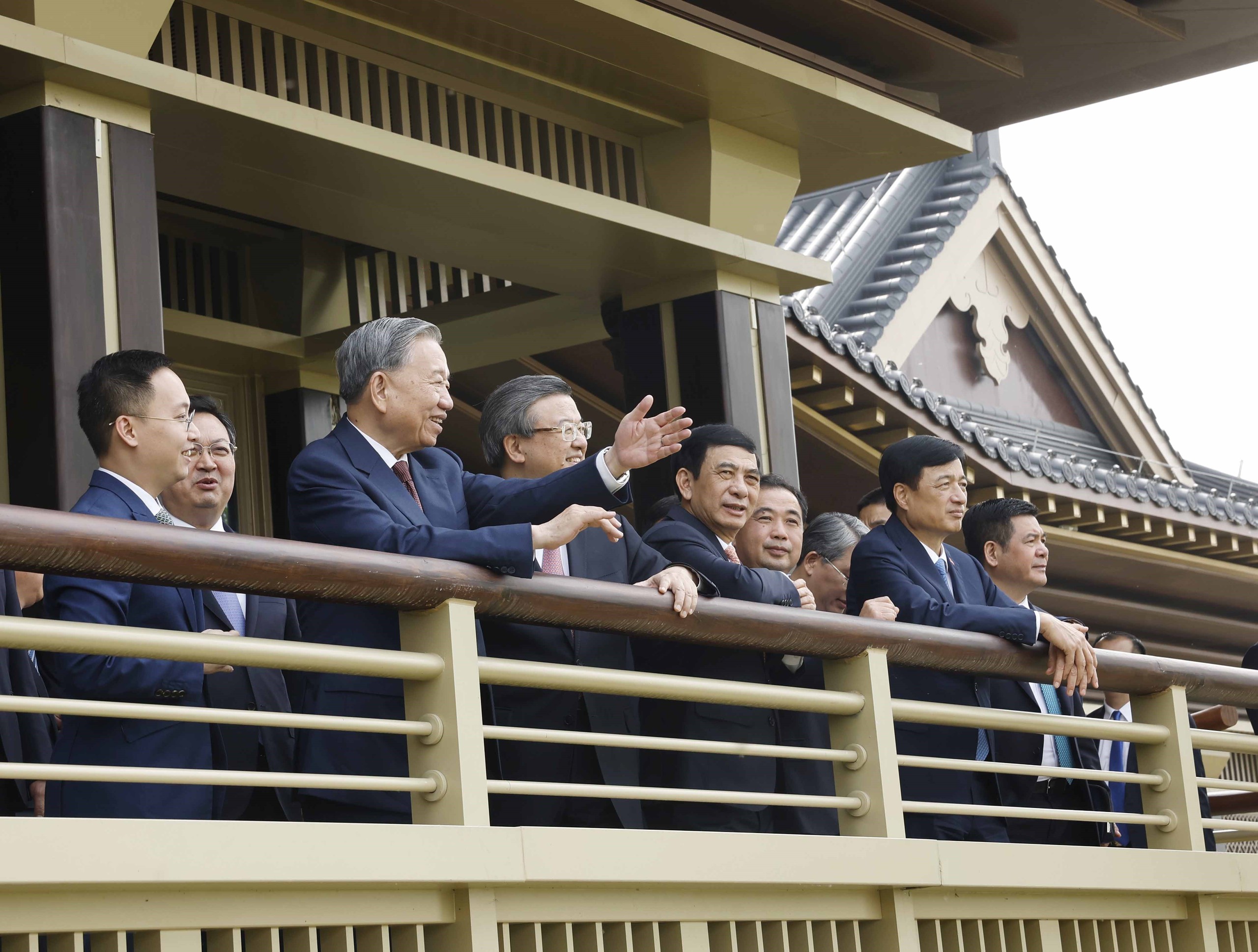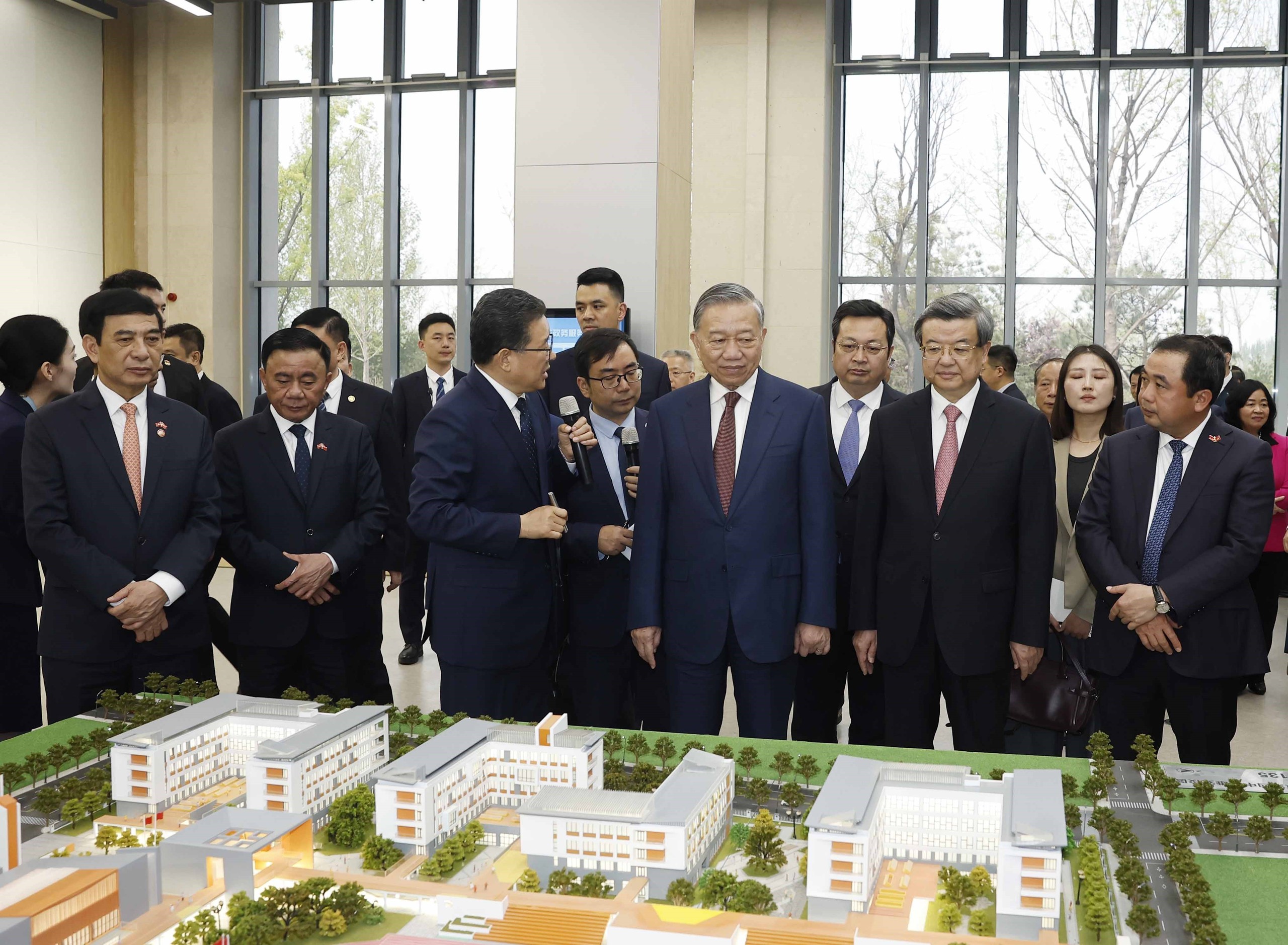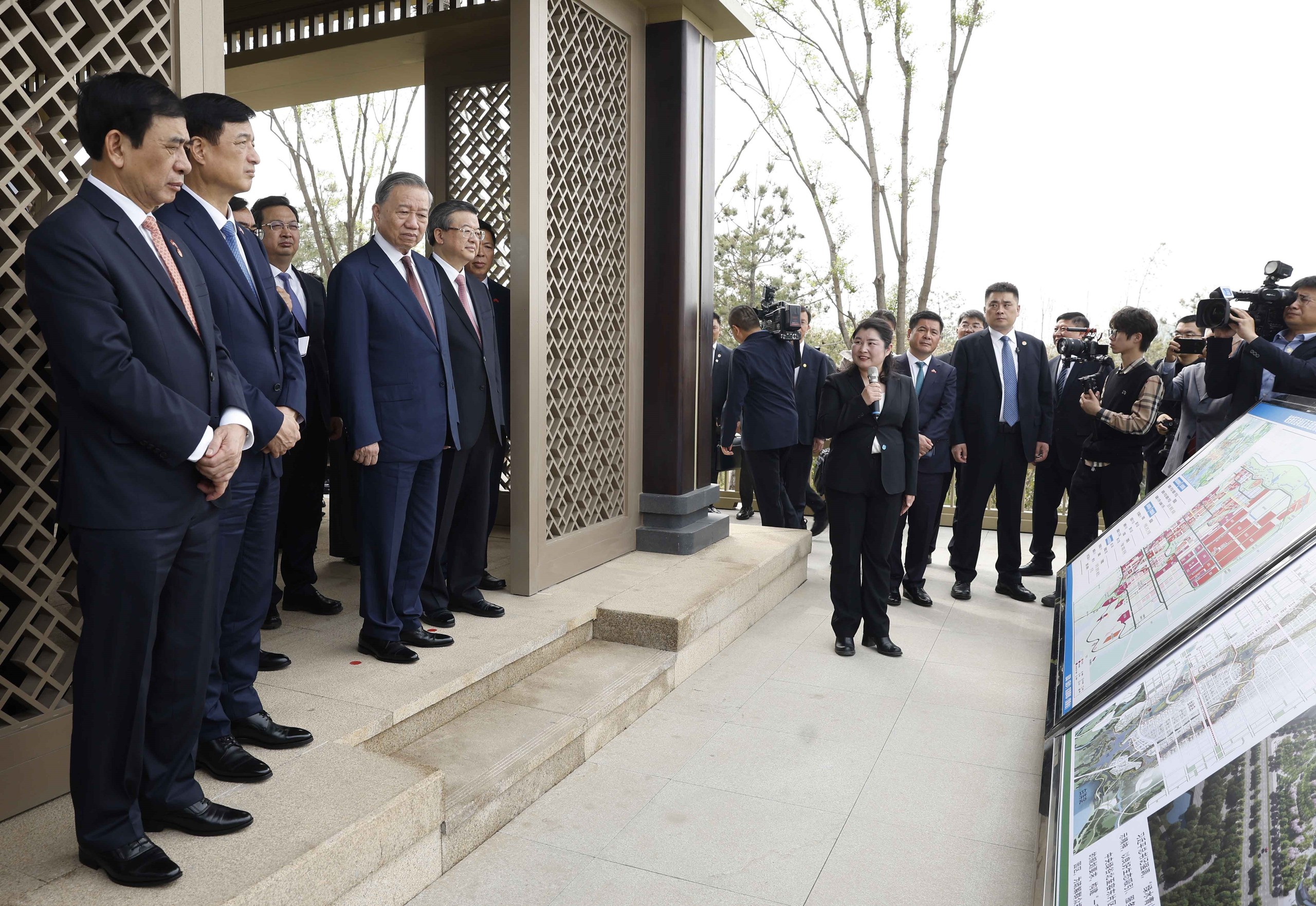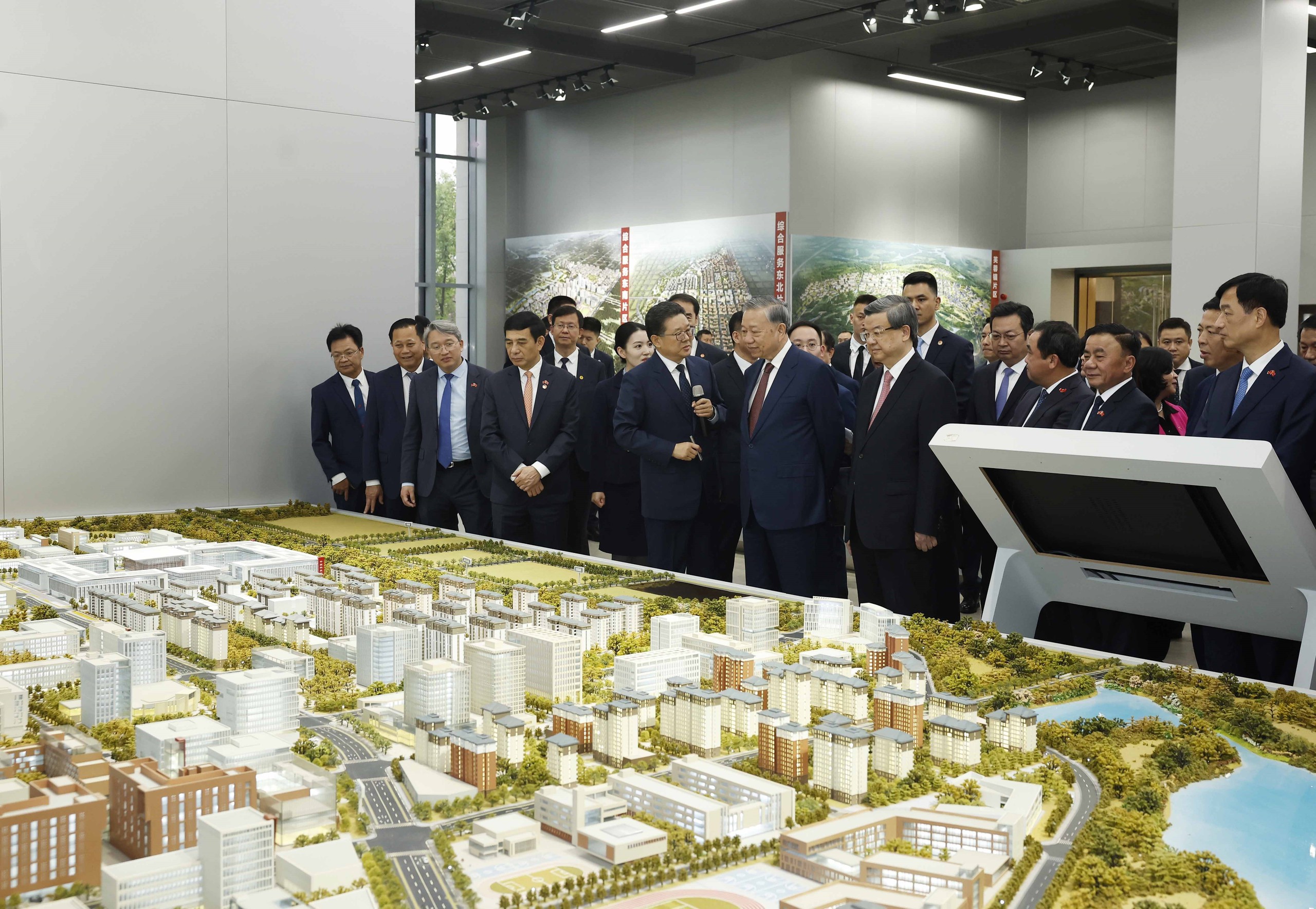Tổng Bí thư, Chủ tịch nước Tô Lâm khảo sát tại Khu khởi động của thành phố Hùng An, tỉnh Hà Bắc (Trung Quốc). Ảnh: Thống Nhất - TTXVN
