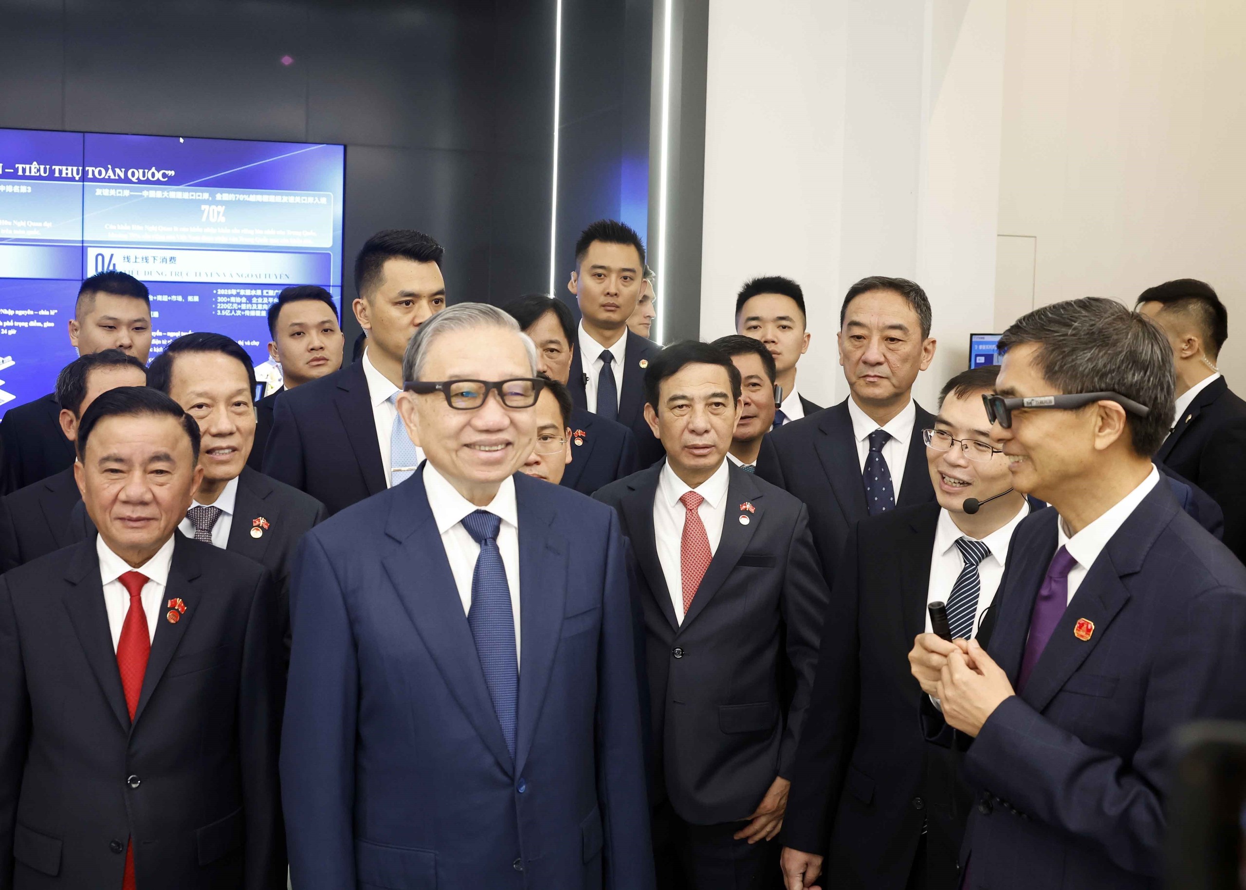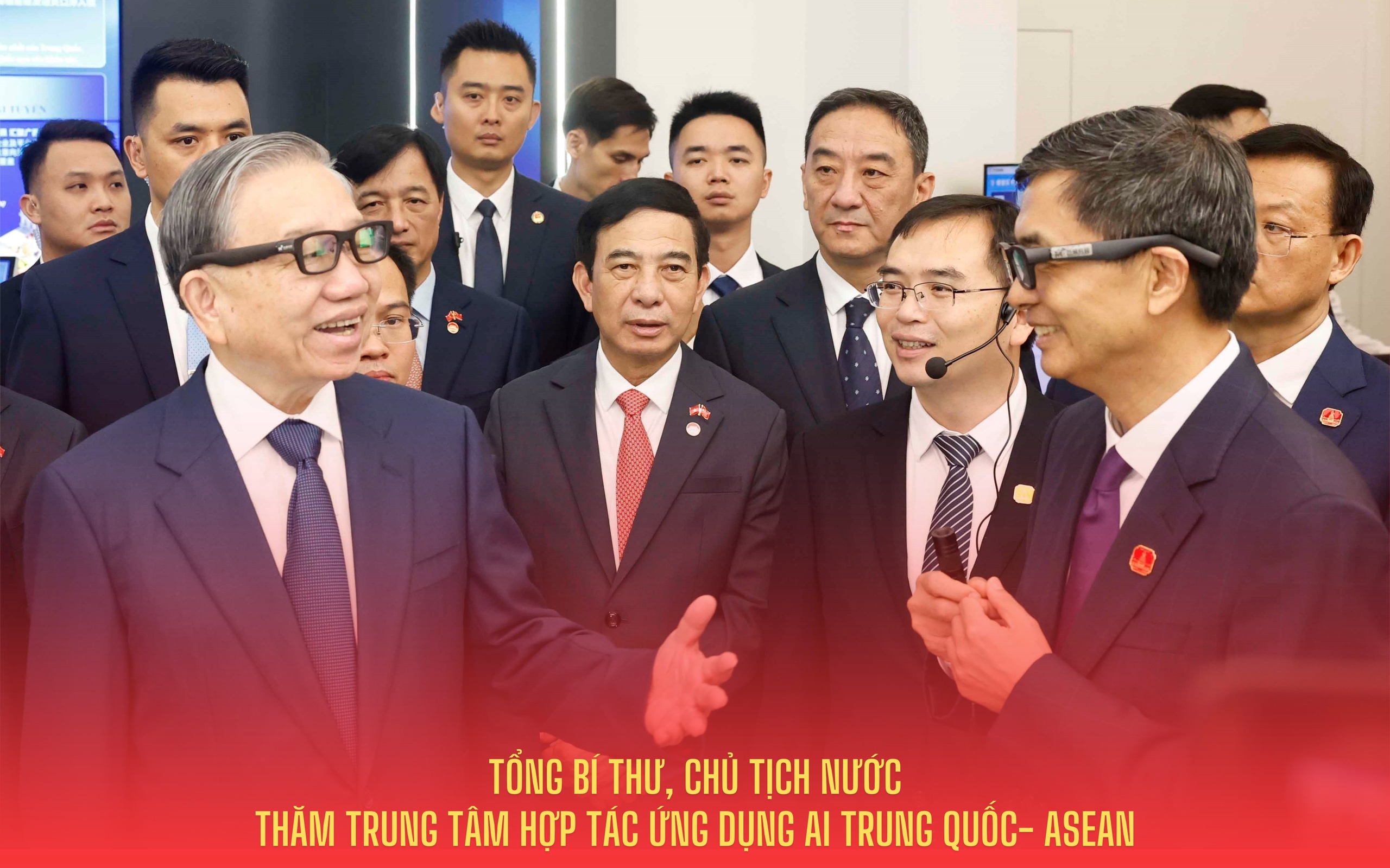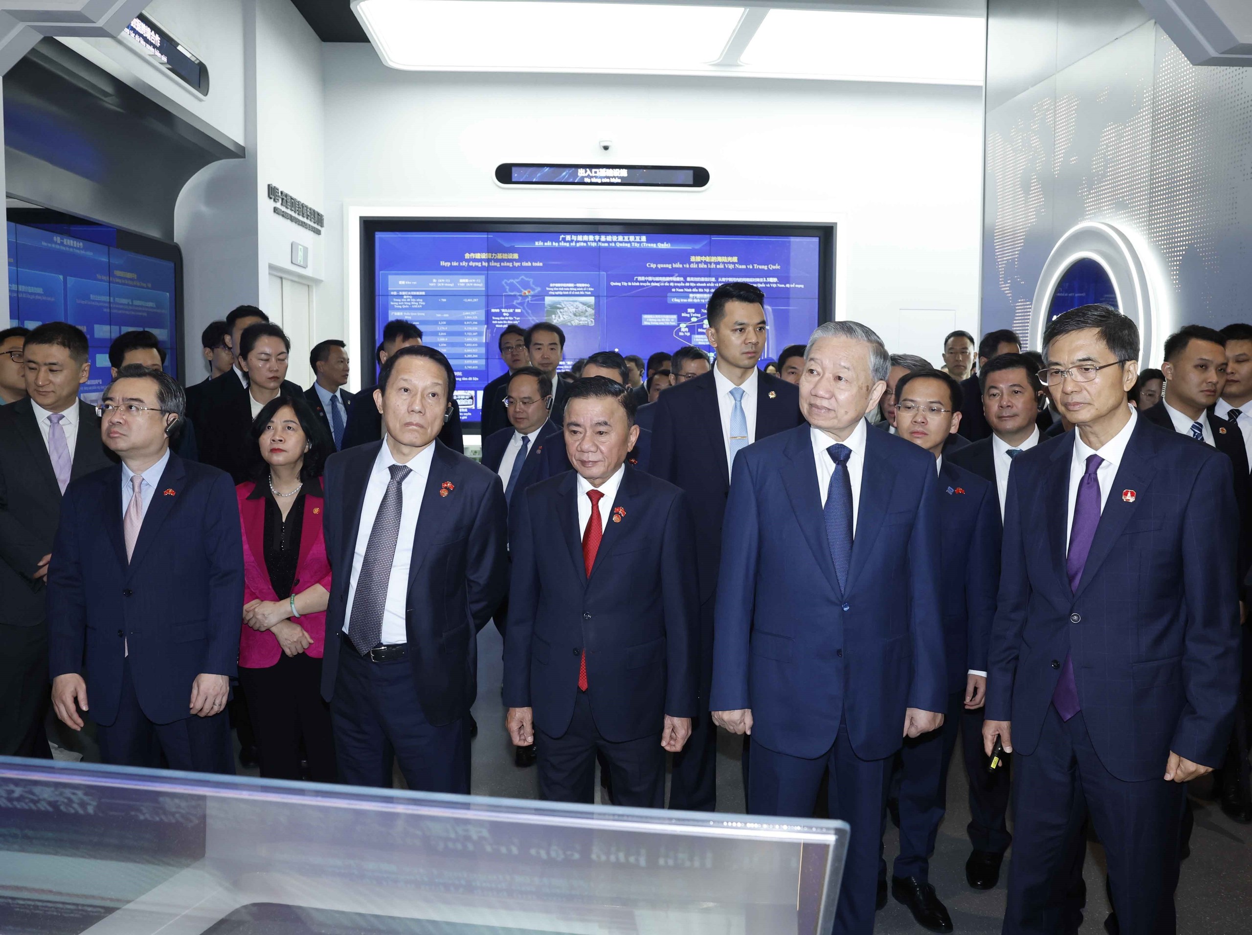 Tiếp tục chương trình thăm cấp Nhà nước tới Trung Quốc, sáng 17/4/2026, tại thành phố Nam Ninh, Tổng Bí thư, Chủ tịch nước Tô Lâm cùng Đoàn đại biểu cấp cao Việt Nam đến thăm, khảo sát Trung tâm hợp tác ứng dụng trí tuệ nhân tạo (AI) Trung Quốc - ASEAN.