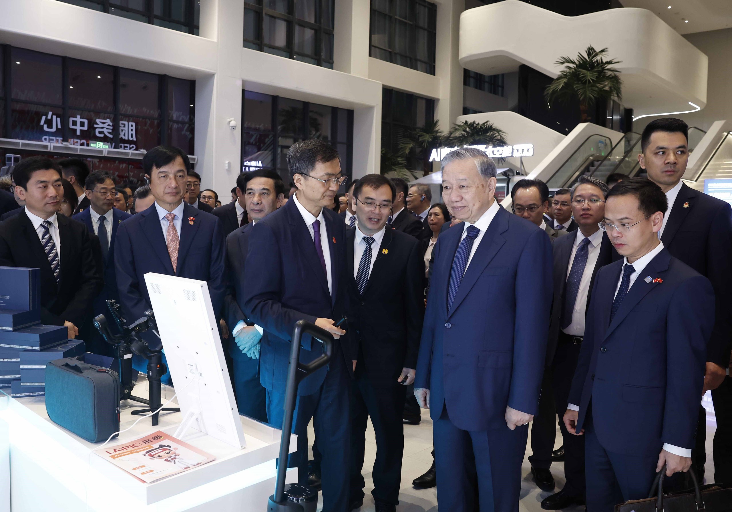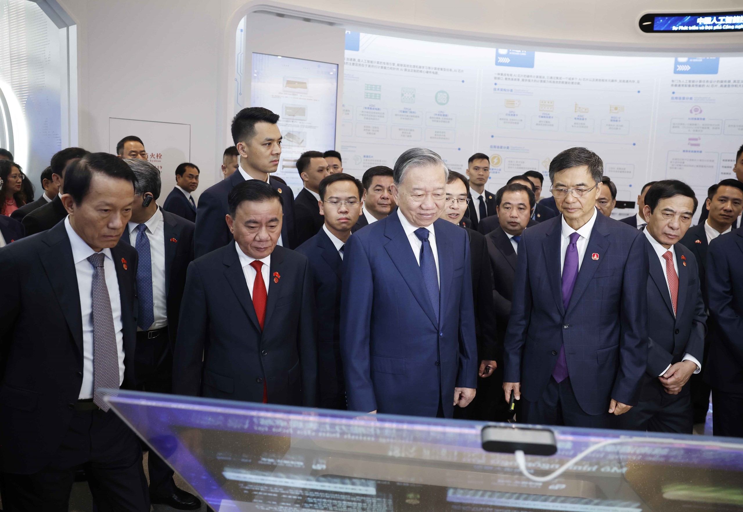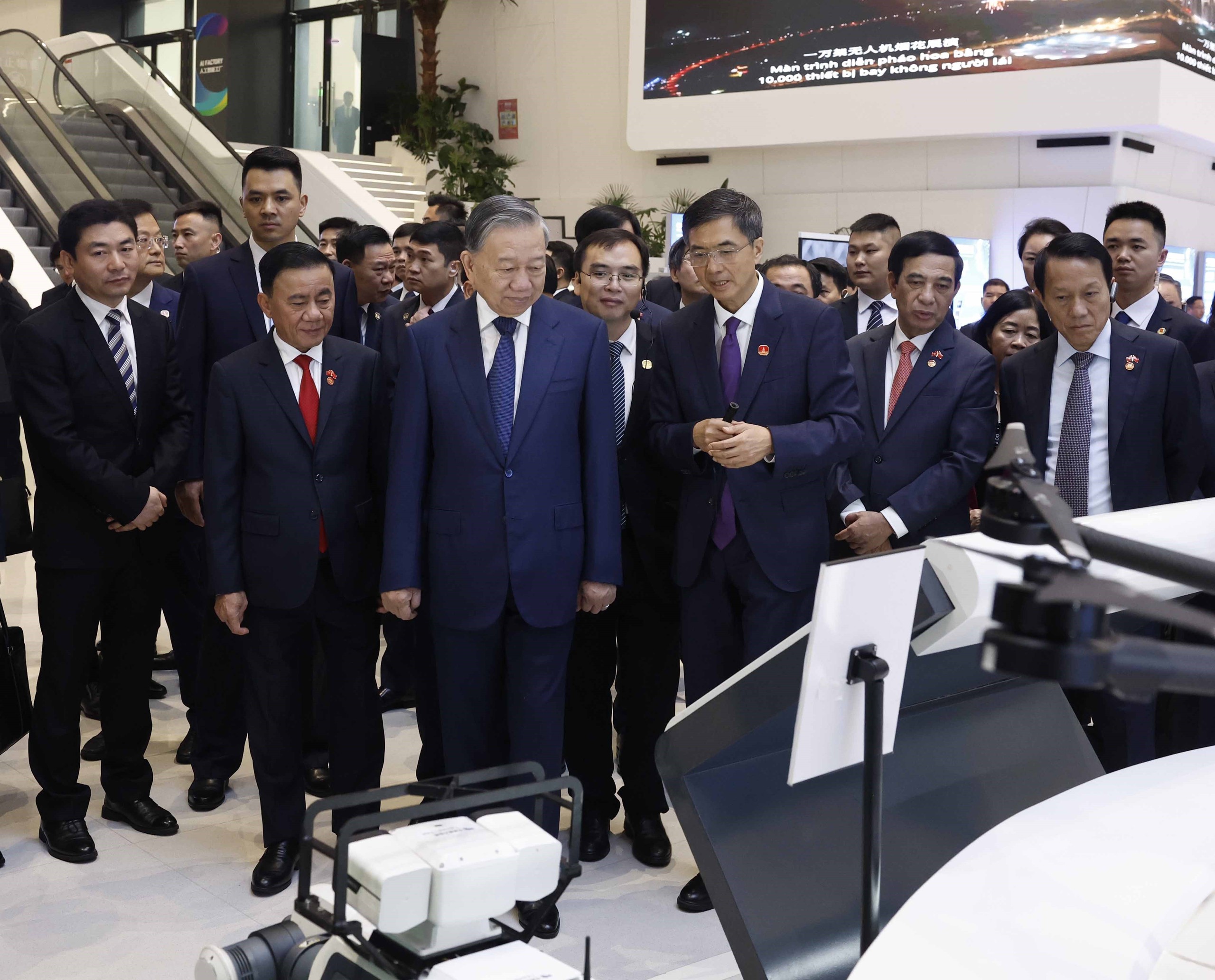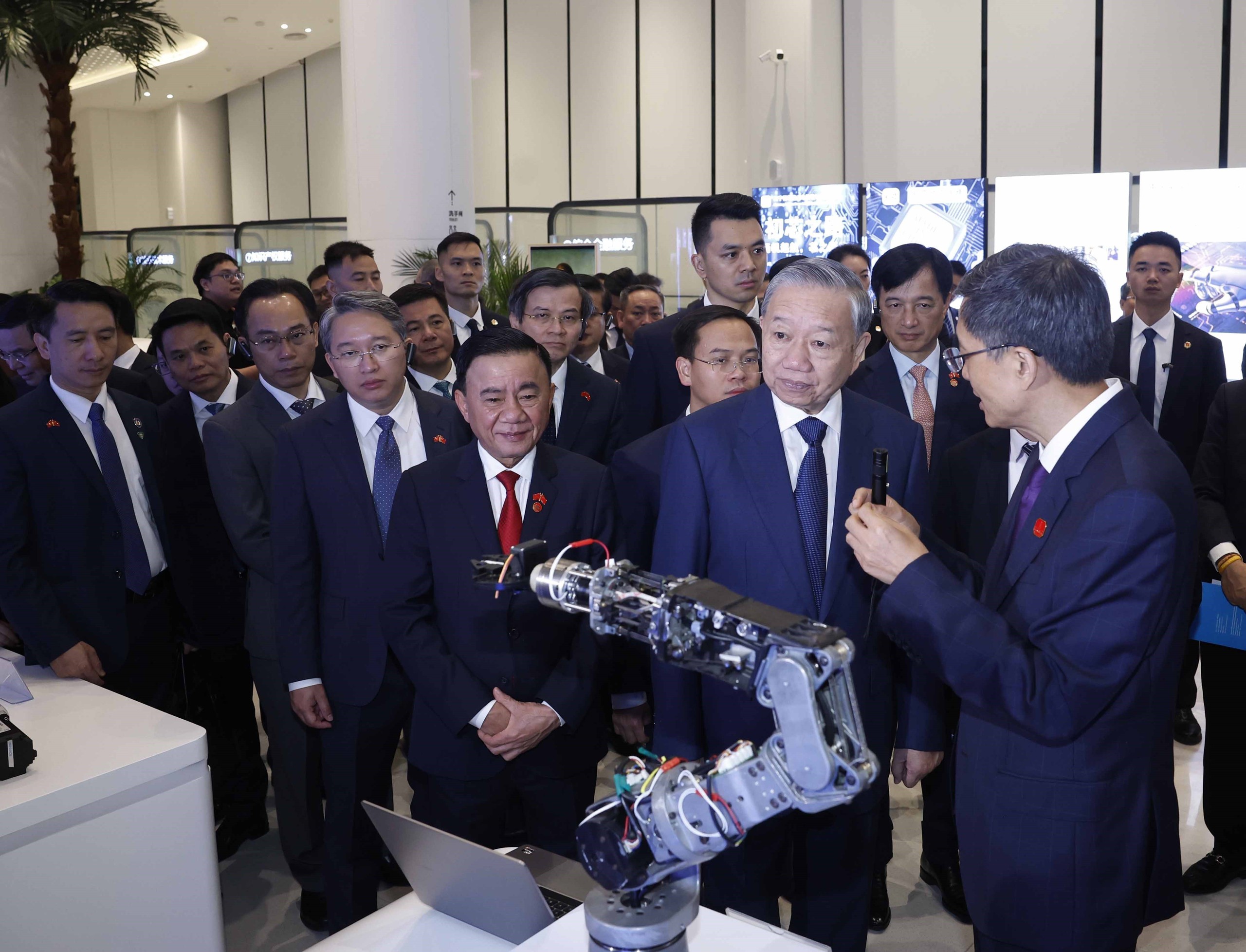 Tiếp tục chương trình thăm cấp Nhà nước tới Trung Quốc, sáng 17/4/2026, tại thành phố Nam Ninh, Tổng Bí thư, Chủ tịch nước Tô Lâm cùng Đoàn đại biểu cấp cao Việt Nam đến thăm, khảo sát Trung tâm hợp tác ứng dụng trí tuệ nhân tạo (AI) Trung Quốc - ASEAN.