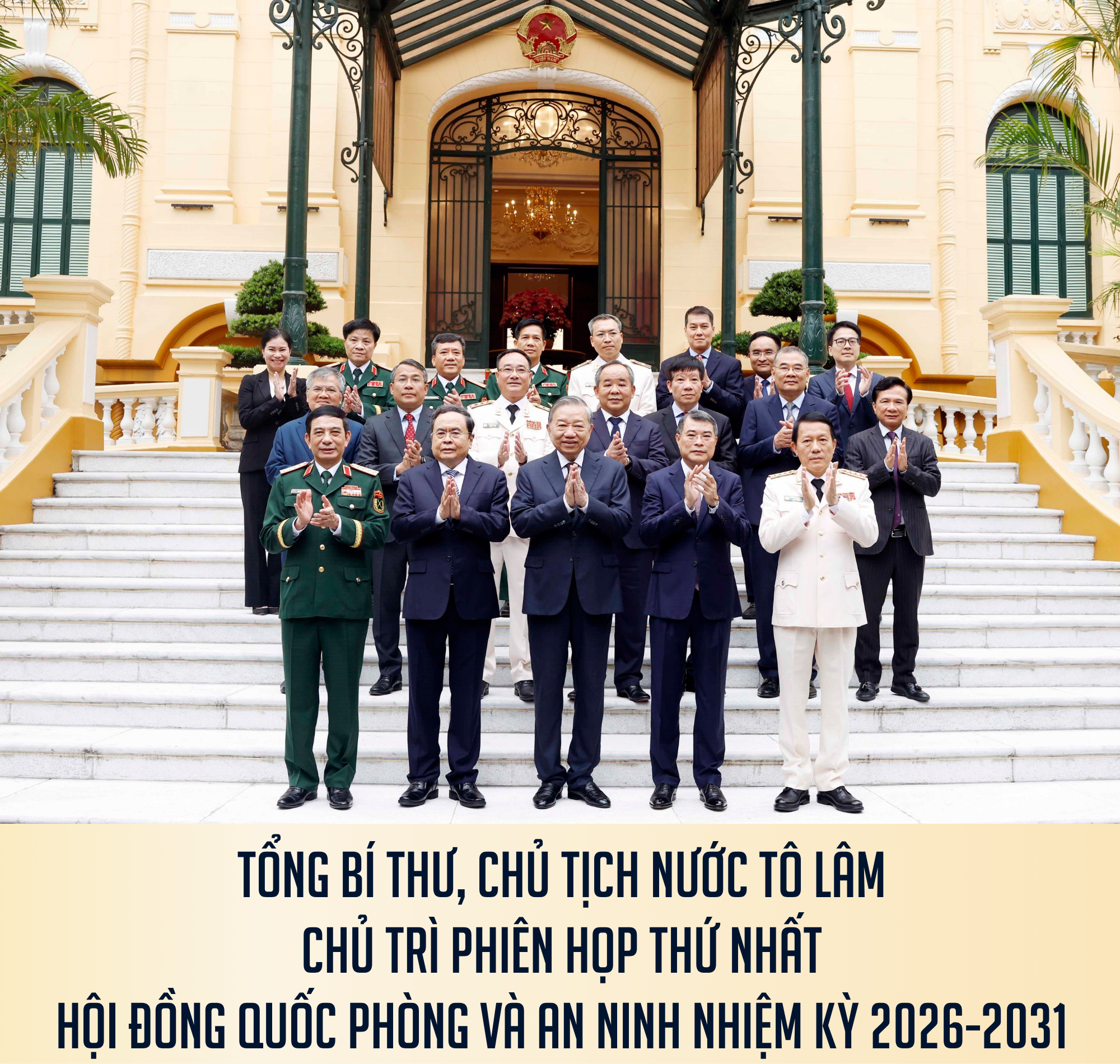 Sáng 28/4/2026, tại Hà Nội, Tổng Bí thư, Chủ tịch nước Tô Lâm, Thống lĩnh Lực lượng vũ trang nhân dân, Chủ tịch Hội đồng Quốc phòng và An ninh chủ trì Phiên họp thứ nhất Hội đồng Quốc phòng và An ninh nhiệm kỳ 2026 - 2031, sau khi Quốc hội khóa XVI phê chuẩn các thành viên Hội đồng nhiệm kỳ mới.