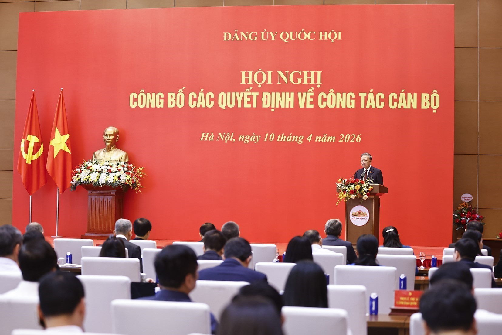 Phát biểu giao nhiệm vụ, Tổng Bí thư, Chủ tịch nước Tô Lâm nhấn mạnh, việc chỉ định, kiện toàn nhân sự Đảng ủy Quốc hội có ý nghĩa quan trọng; là bước đi cụ thể nhằm tăng cường sự lãnh đạo trực tiếp, toàn diện của Đảng đối với Quốc hội, bảo đảm Quốc hội thực hiện đầy đủ, đúng đắn và hiệu quả 3 chức năng trọng yếu: lập pháp; giám sát tối cao và quyết định các vấn đề quan trọng của đất nước.