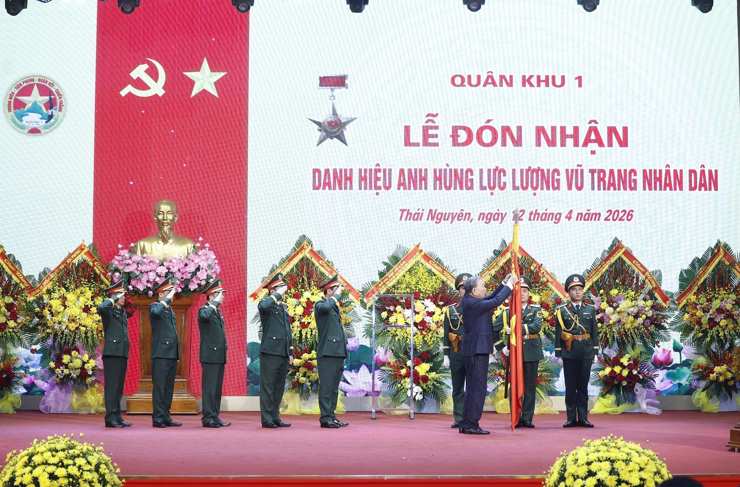 Sáng 12/4/2026, tại Thái Nguyên, Tổng Bí thư, Chủ tịch nước Tô Lâm, Bí thư Quân uỷ Trung ương dự Lễ đón nhận Danh hiệu Anh hùng Lực lượng vũ trang nhân dân của Quân khu 1.