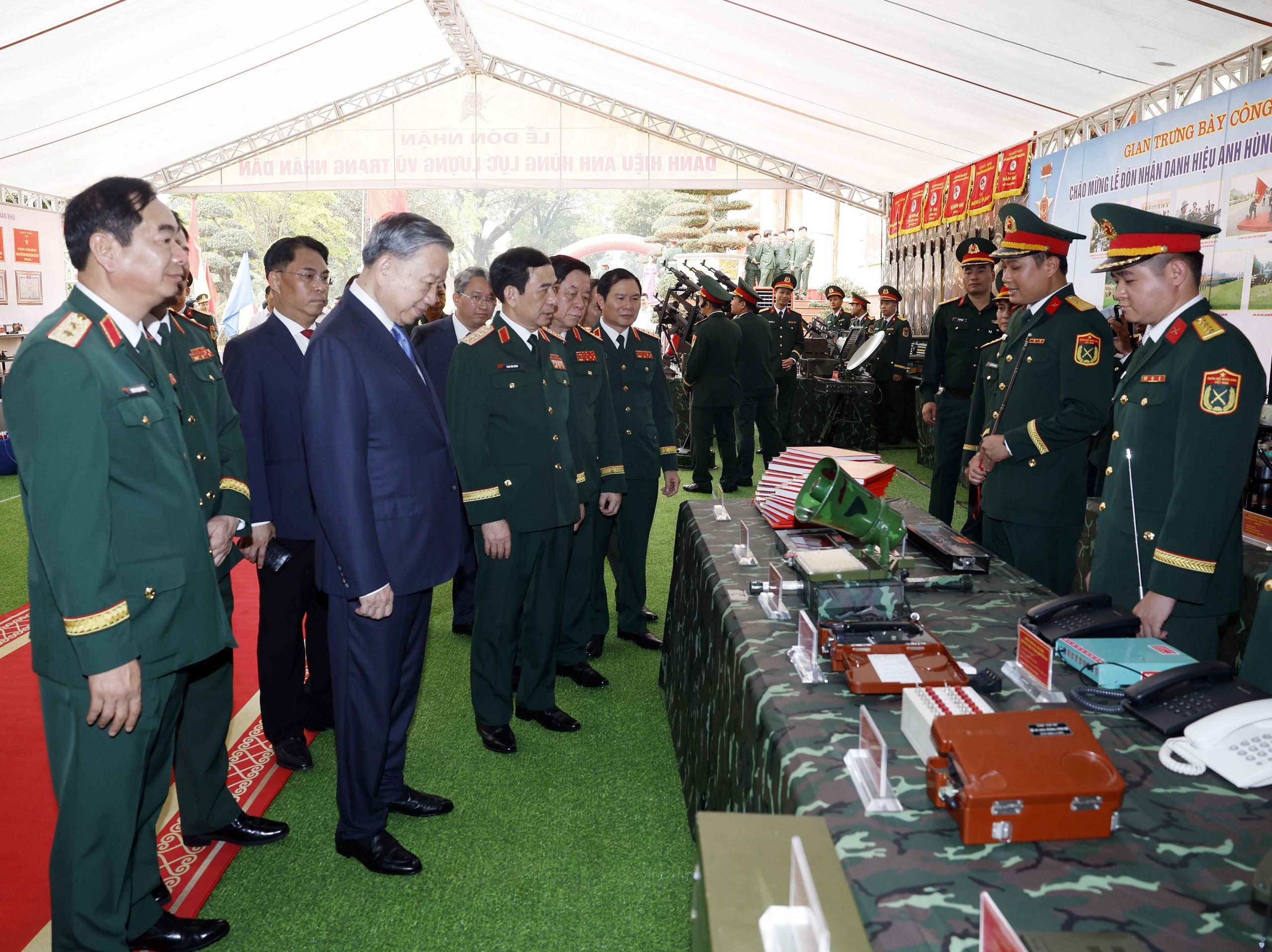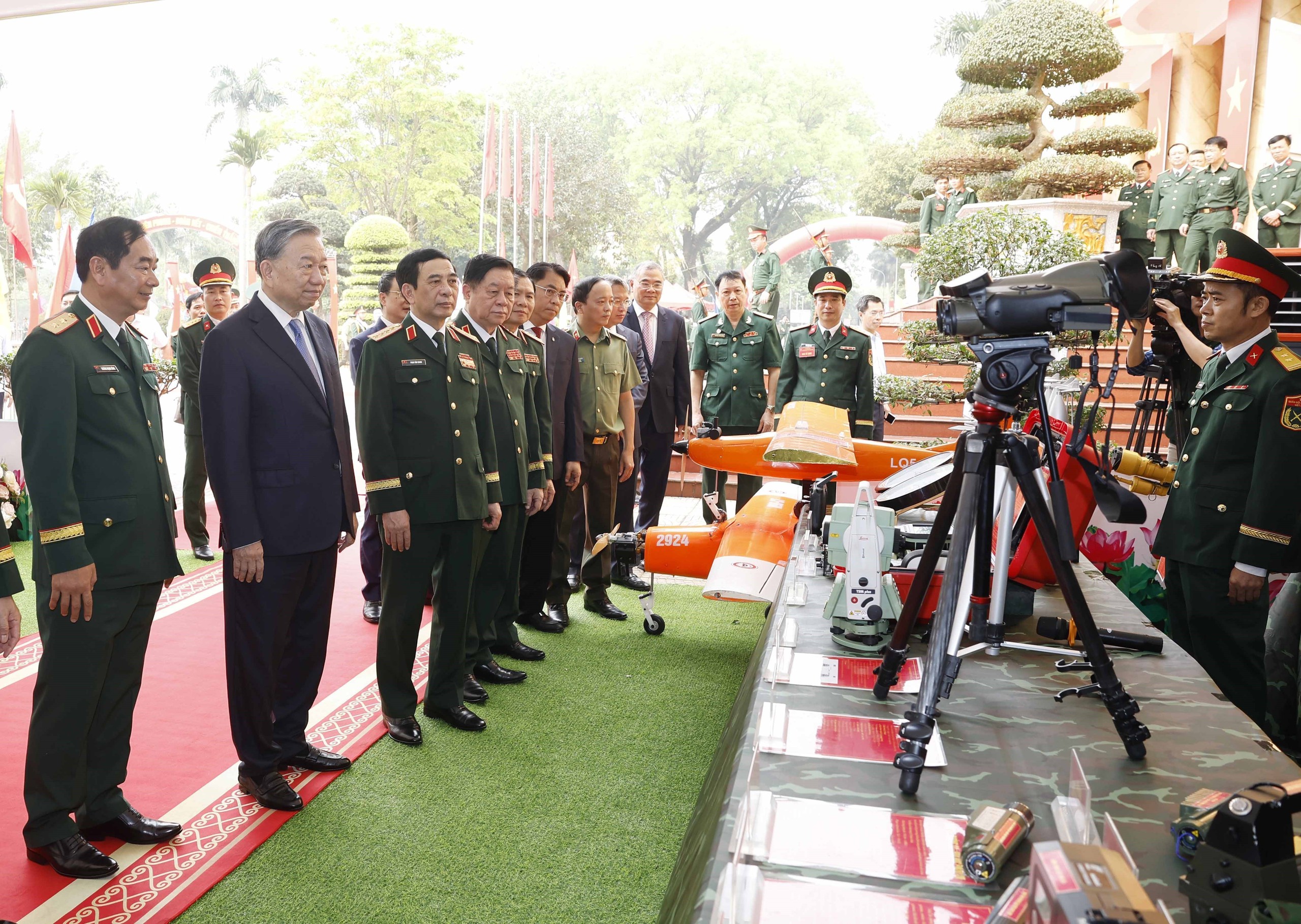 Tổng Bí thư, Chủ tịch nước Tô Lâm tham quan khu trưng bày các khí tài của Quân khu 1