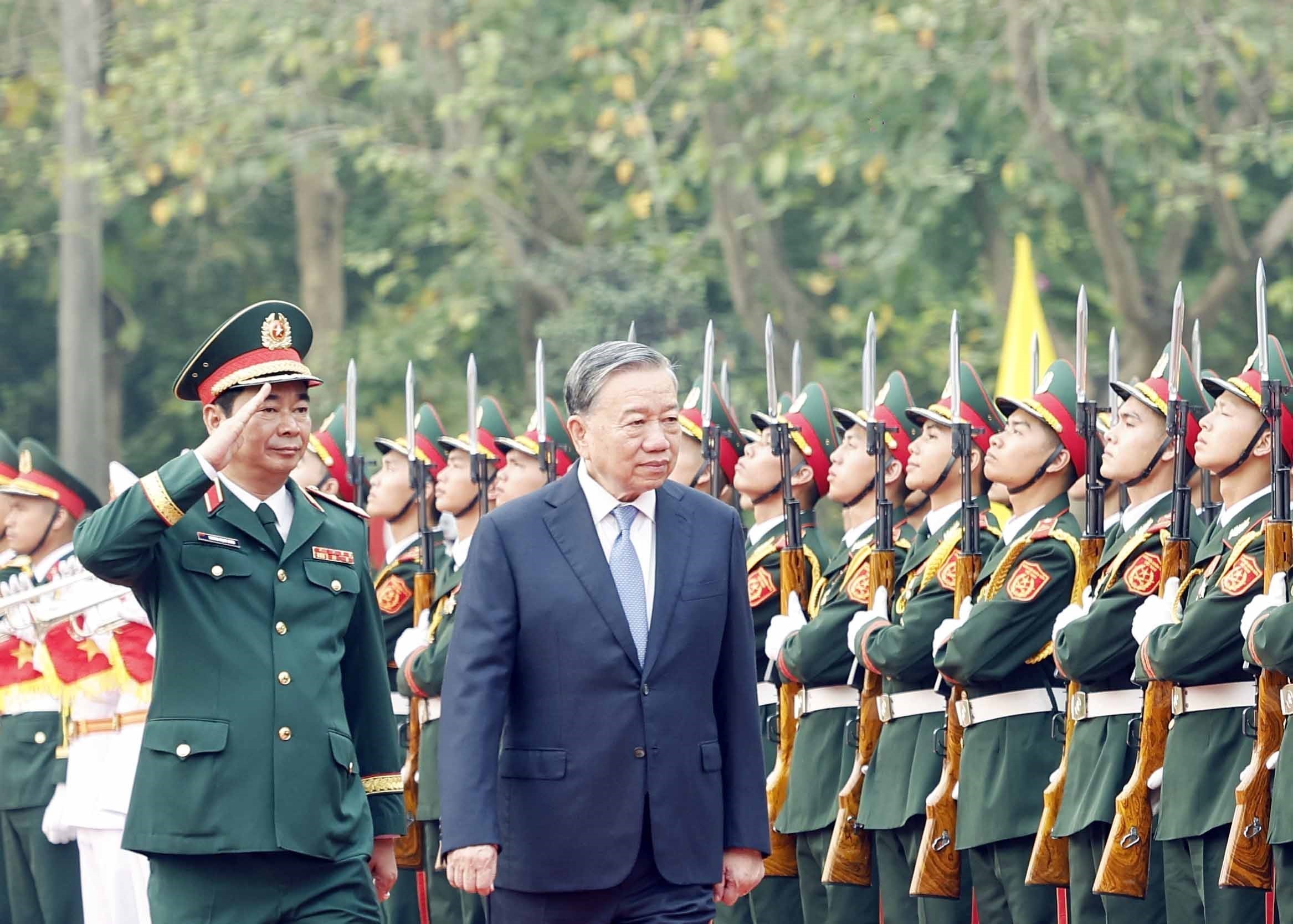 Lễ đón Tổng Bí thư, Chủ tịch nước Tô Lâm, Bí thư Quân uỷ Trung ương đến dự buổi lễ