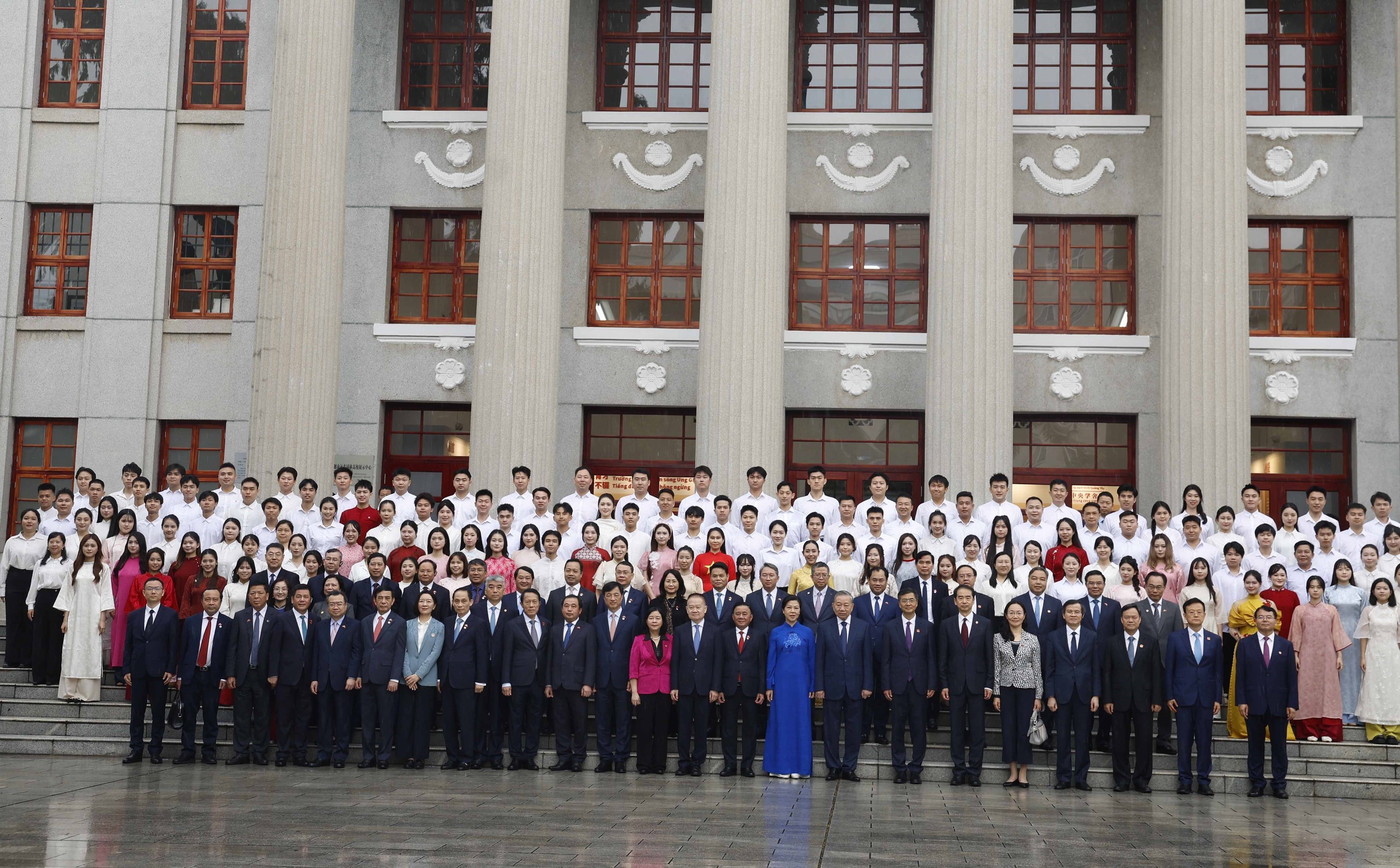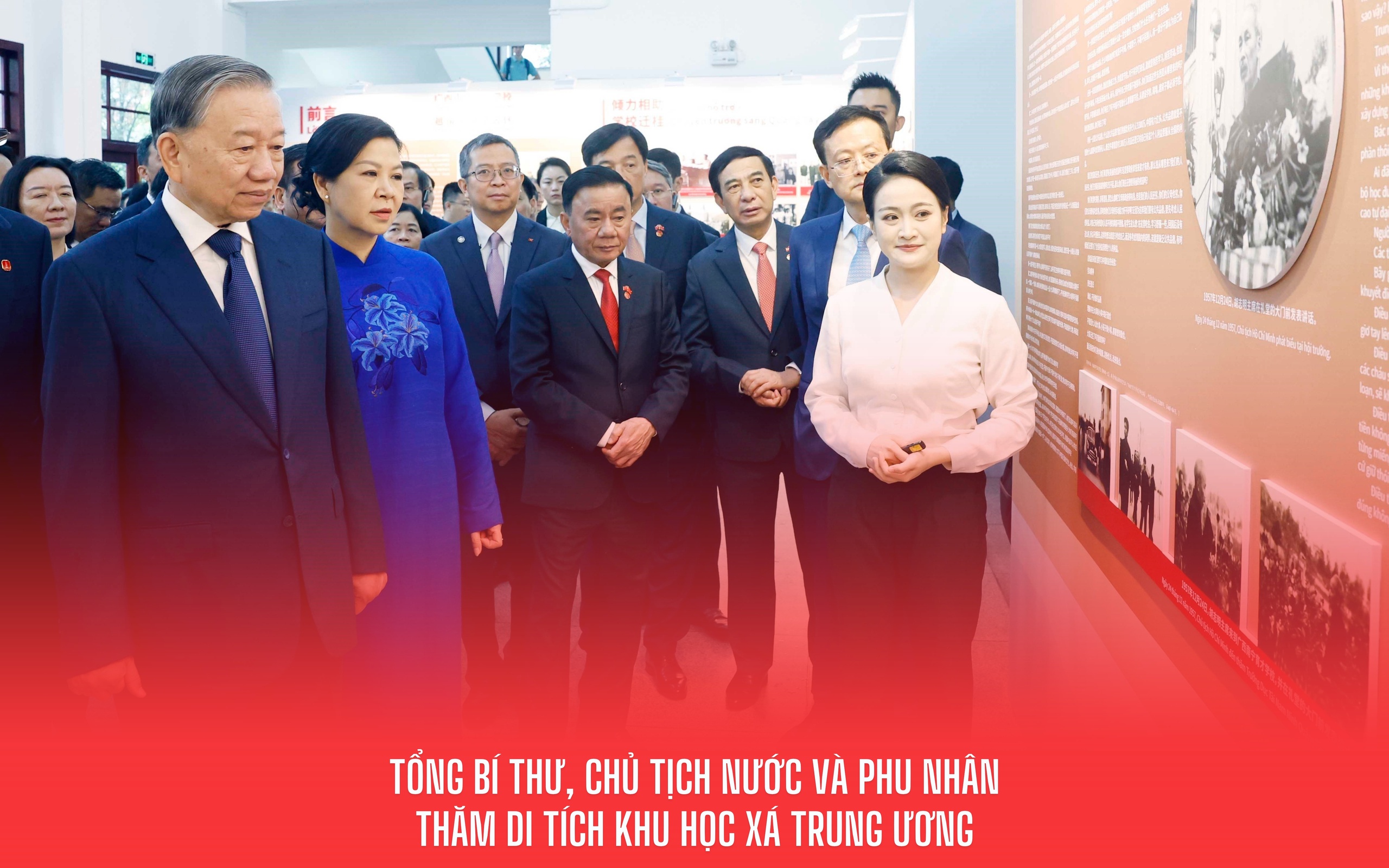Trong chương trình thăm cấp Nhà nước tới Trung Quốc, sáng 17/4/2026, tại thành phố Nam Ninh, Tổng Bí thư, Chủ tịch nước Tô Lâm và Phu nhân cùng Đoàn đại biểu cấp cao Việt Nam đến thăm Di tích Khu học xá Trung ương (Trường Dục Tài Nam Ninh).
