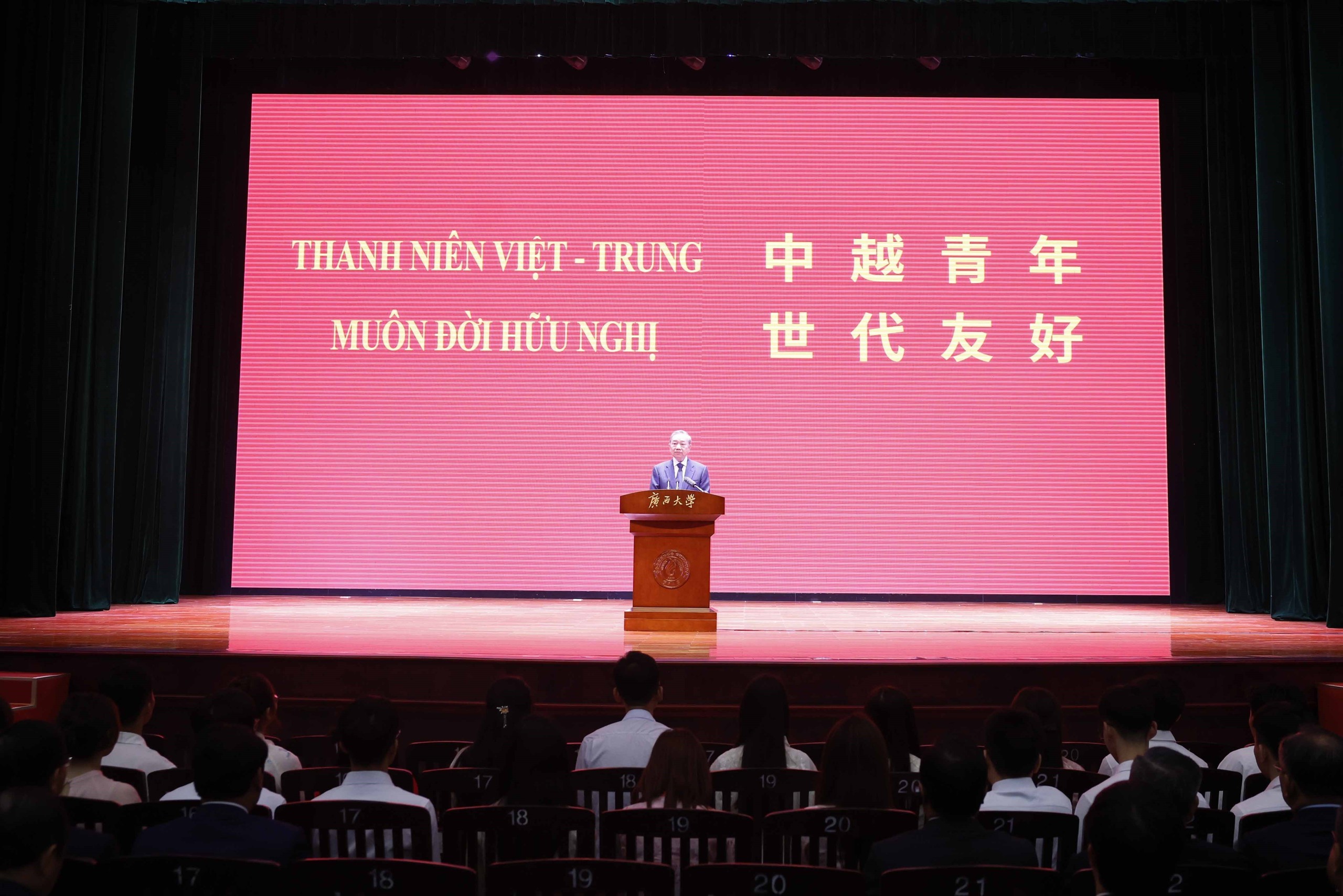 Trong chương trình thăm cấp Nhà nước tới Trung Quốc, sáng 17/4/2026, tại Thành phố Nam Ninh, Tổng Bí thư, Chủ tịch nước Tô Lâm dự Lễ khai mạc và phát biểu tại Liên hoan nhân dân biên giới Việt - Trung.