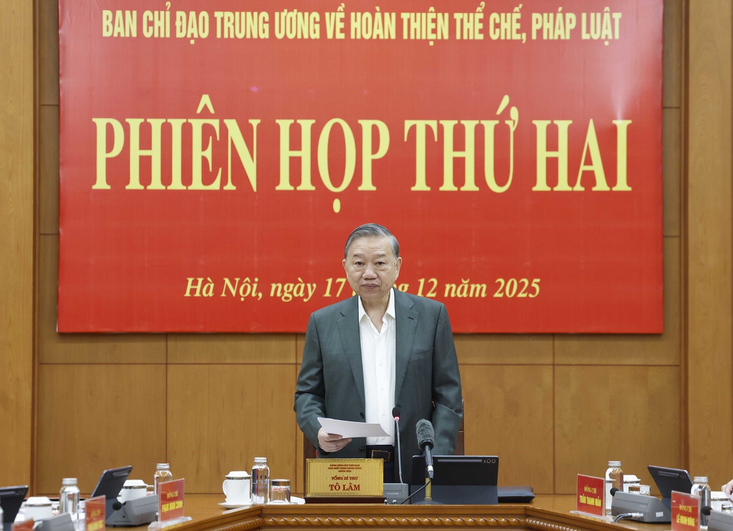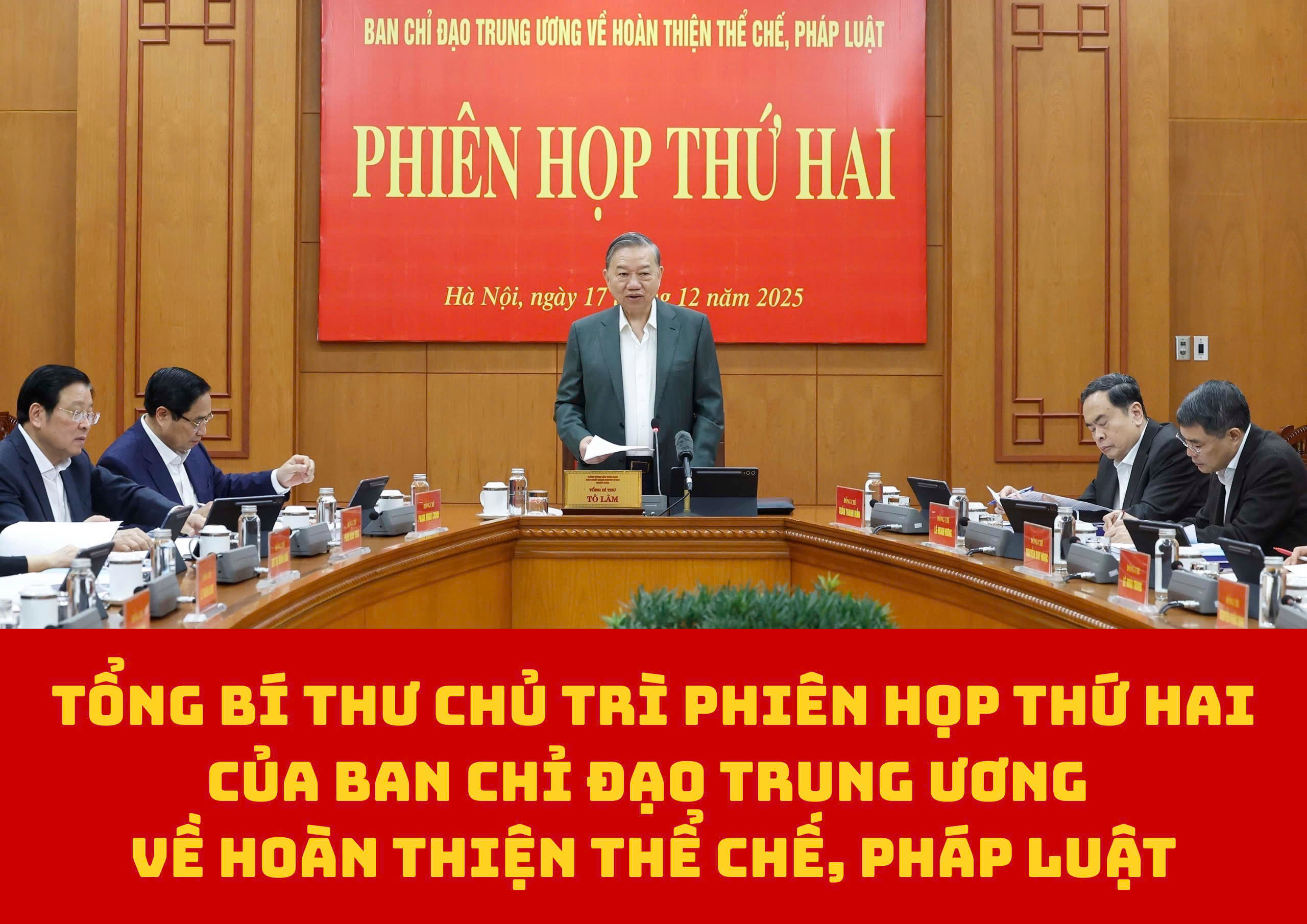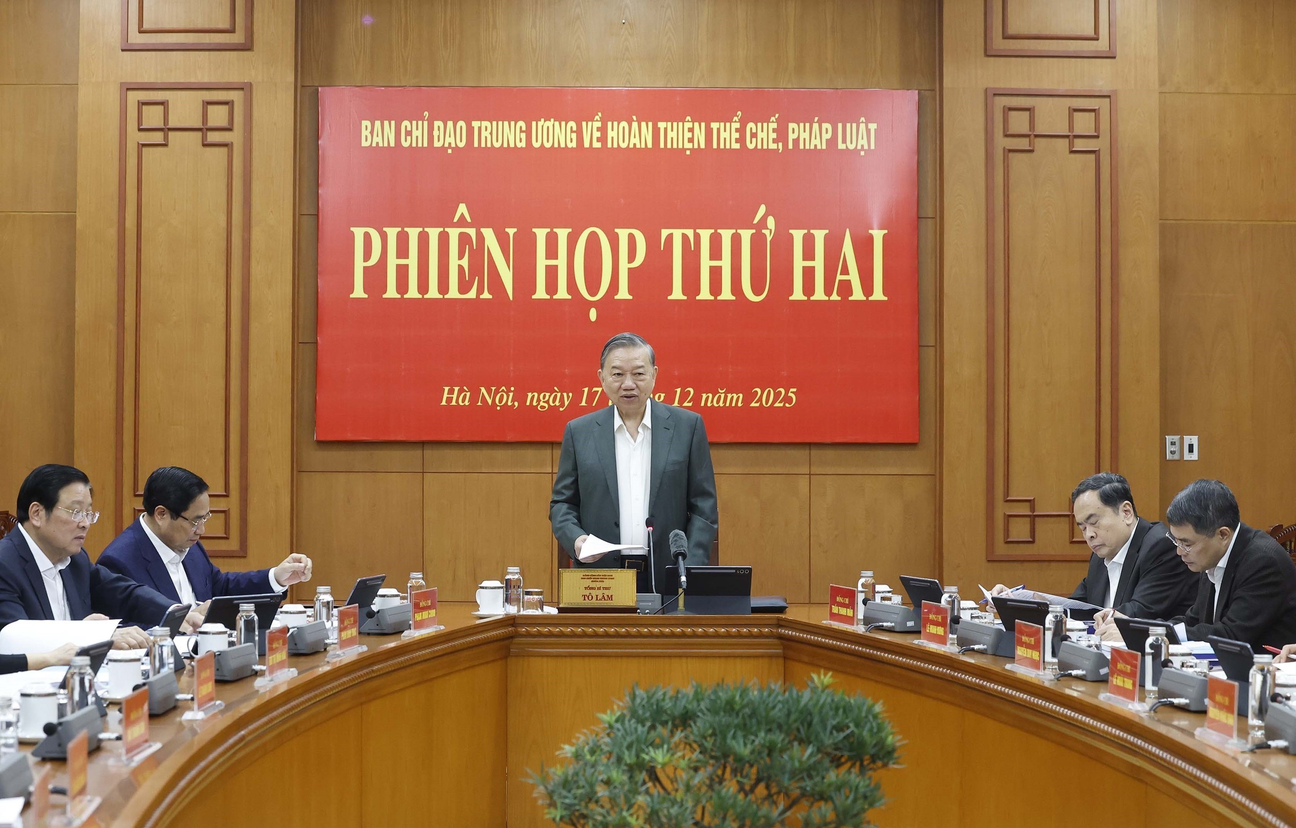 Sáng 17/12/2025, tại Trụ sở Trung ương Đảng, Ban Chỉ đạo Trung ương về hoàn thiện thể chế, pháp luật họp phiên thứ hai, dưới sự chủ trì của Tổng Bí thư Tô Lâm, Trưởng Ban Chỉ đạo.