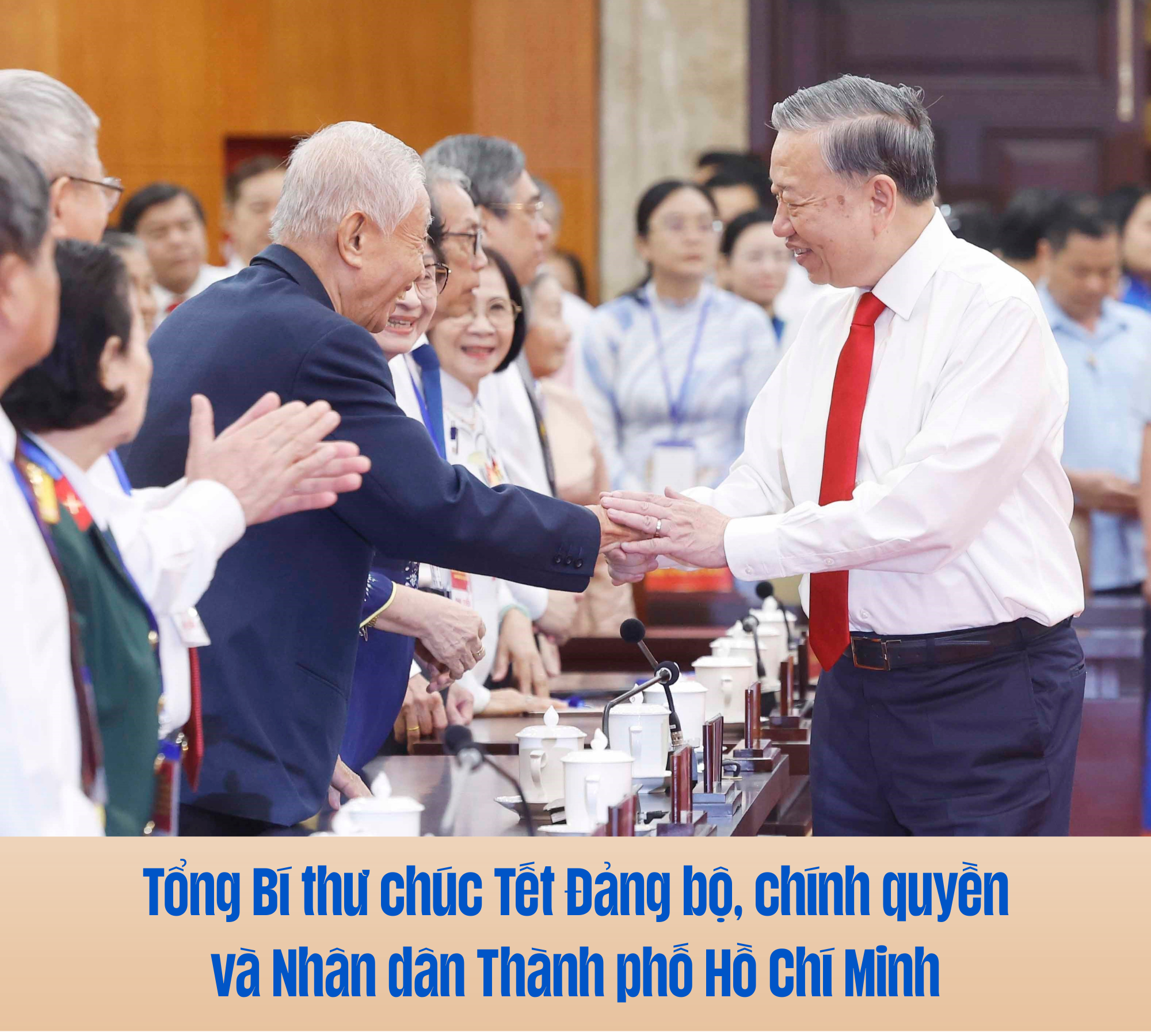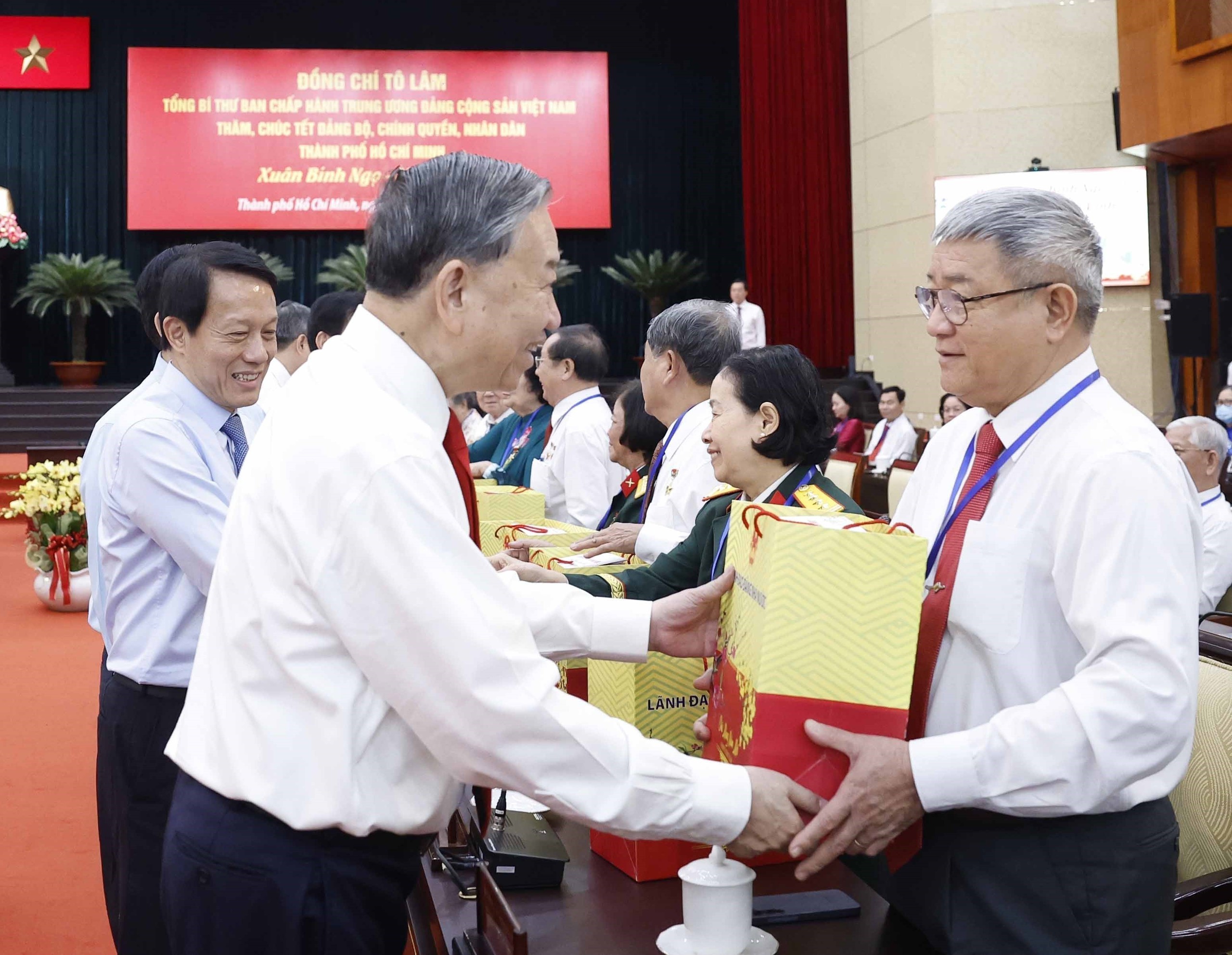 Tổng Bí thư Tô Lâm chúc Tết Đảng bộ, chính quyền và Nhân dân Thành phố Hồ Chí Minh. Ảnh: Thống Nhất – TTXVN