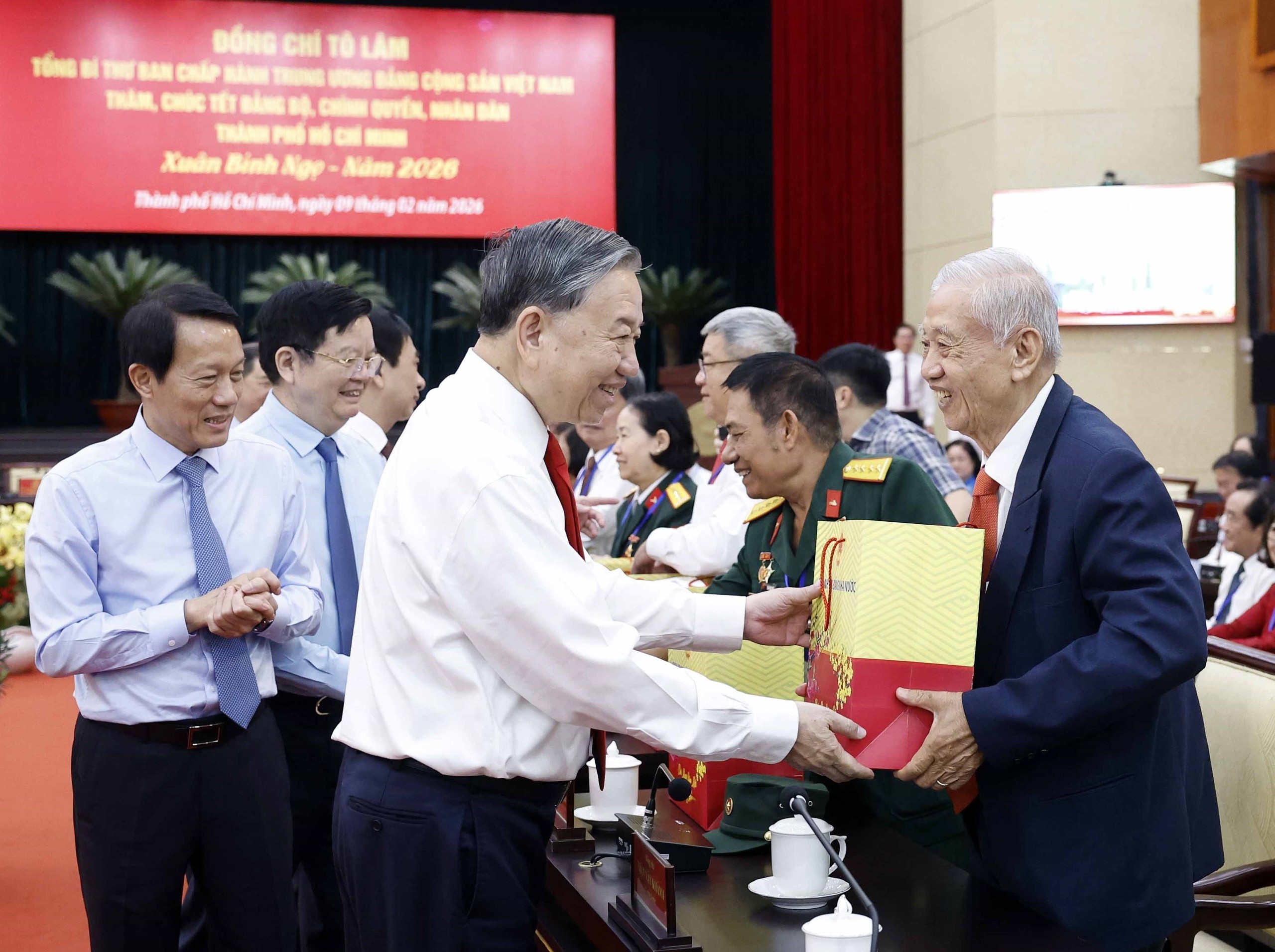 Nhân dịp năm mới Xuân Bính Ngọ 2026, Tổng Bí thư Tô Lâm đã tặng quà Đảng bộ Thành phố Hồ Chí Minh và đại diện các gia đình chính sách, người có công tiêu biểu trên địa bàn Thành phố.