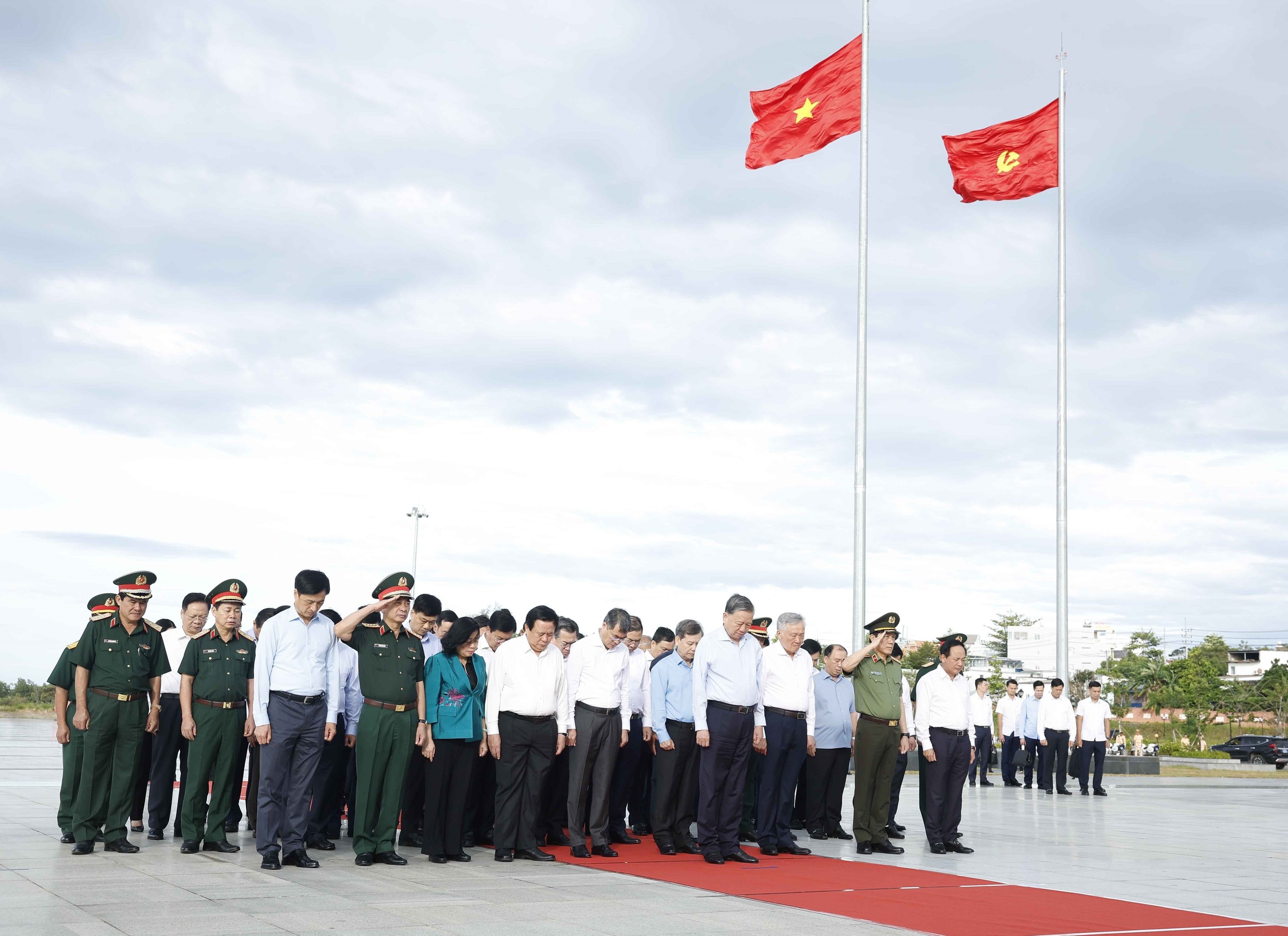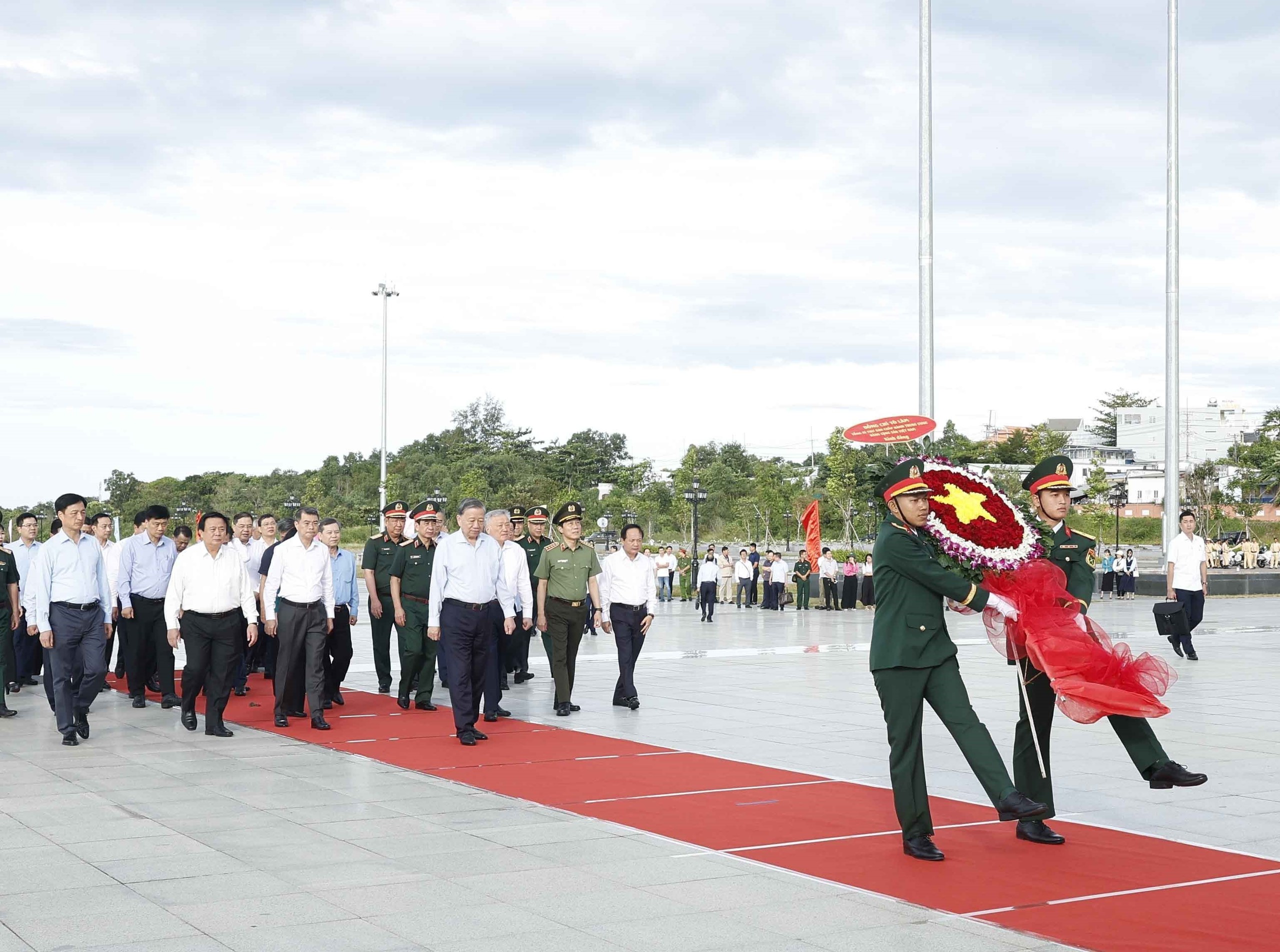 Trong không khí trang nghiêm, xúc động, Tổng Bí thư Tô Lâm và Đoàn công tác đã thành kính dâng hoa, dâng hương tưởng niệm, bày tỏ lòng biết ơn vô hạn trước công lao to lớn của Chủ tịch Hồ Chí Minh và các Anh hùng liệt sĩ đã anh dũng hy sinh vì độc lập, tự do của Tổ quốc, vì hạnh phúc của nhân dân.
