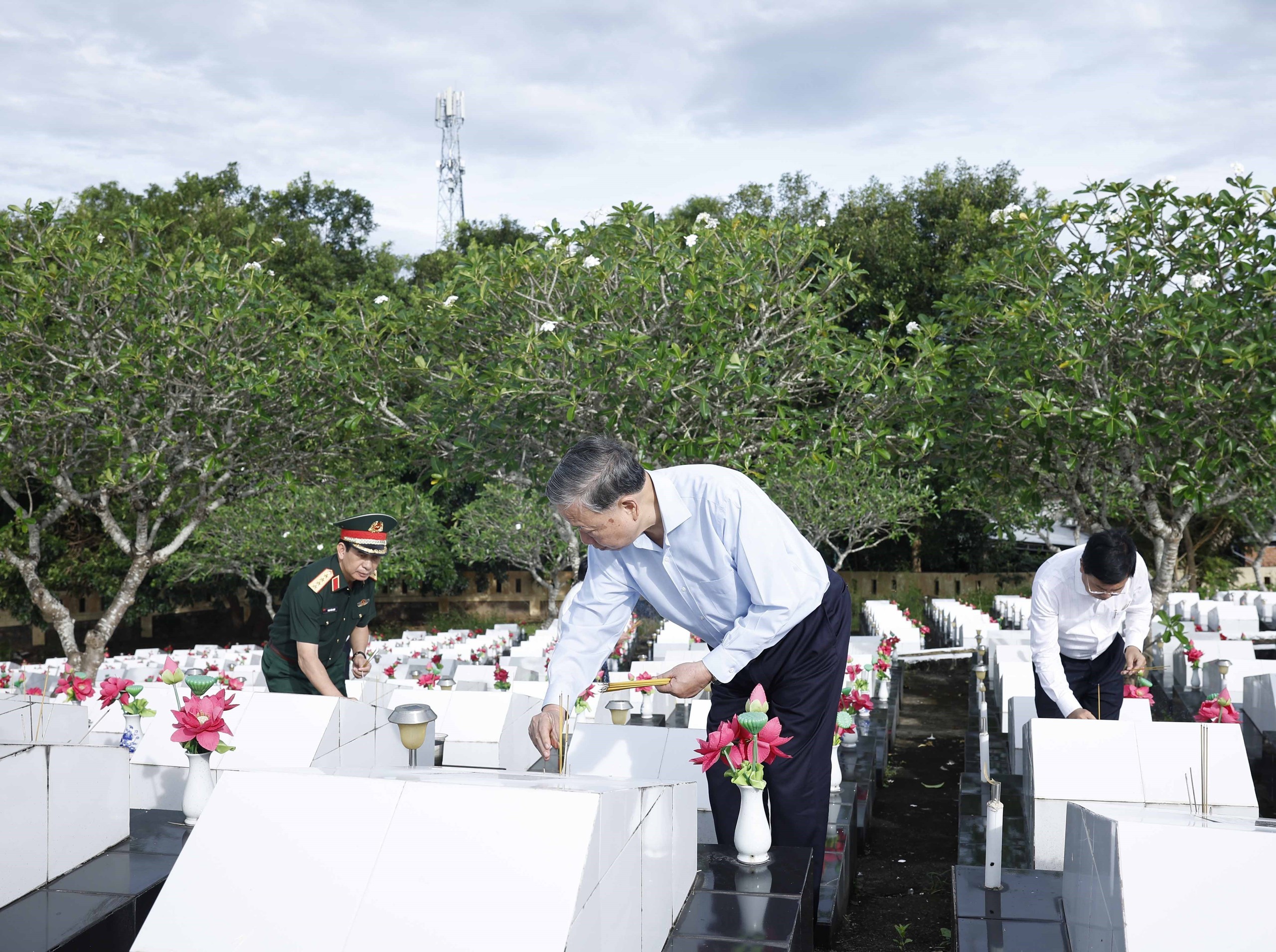 Tổng Bí thư Tô Lâm và đoàn công tác Trung ương dâng hoa, dâng hương tại Nghĩa trang liệt sĩ Phú Quốc. Ảnh: Thống Nhất – TTXVN
