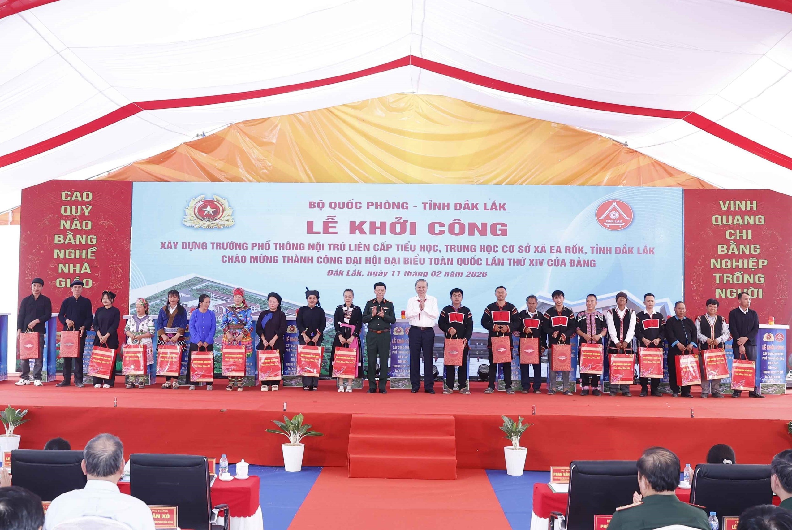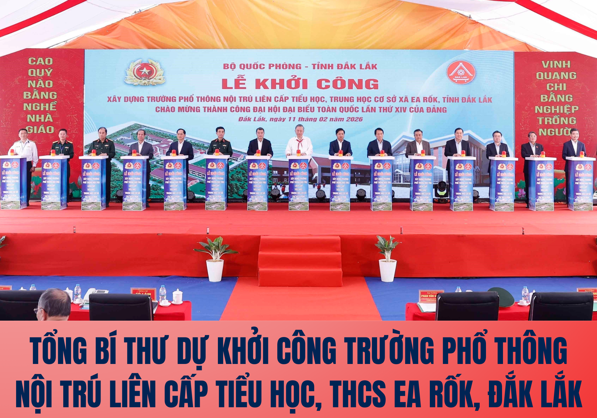 Sáng 11/2/2026, Tổng Bí thư Tô Lâm dự Lễ khởi công xây dựng Trường Phổ thông nội trú liên cấp Tiểu học, Trung học cơ sở xã Ea Rốk (tỉnh Đắk Lắk), do Bộ Tổng Tham mưu Quân đội nhân dân Việt Nam phối hợp với UBND tỉnh Đắk Lắk tổ chức.