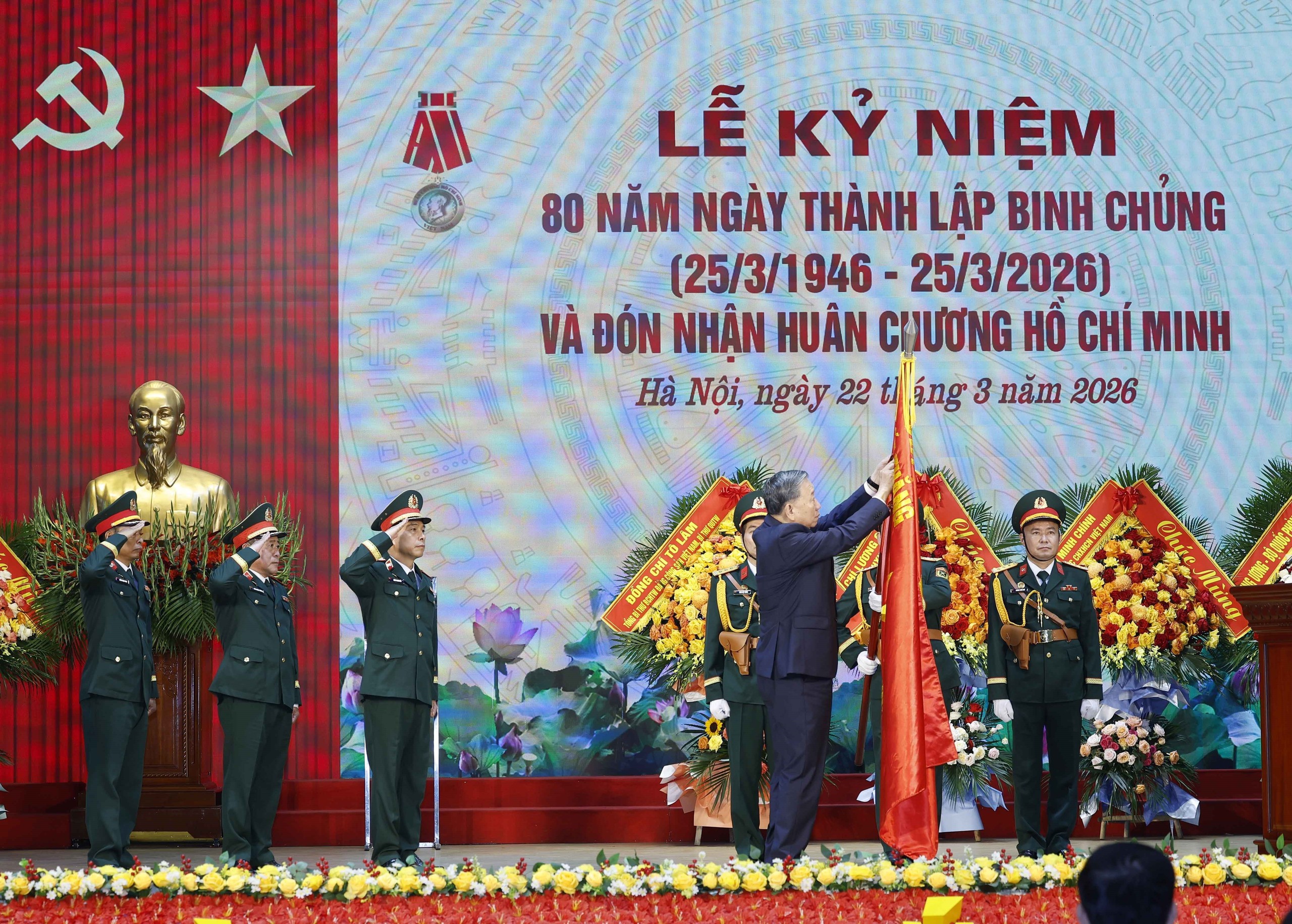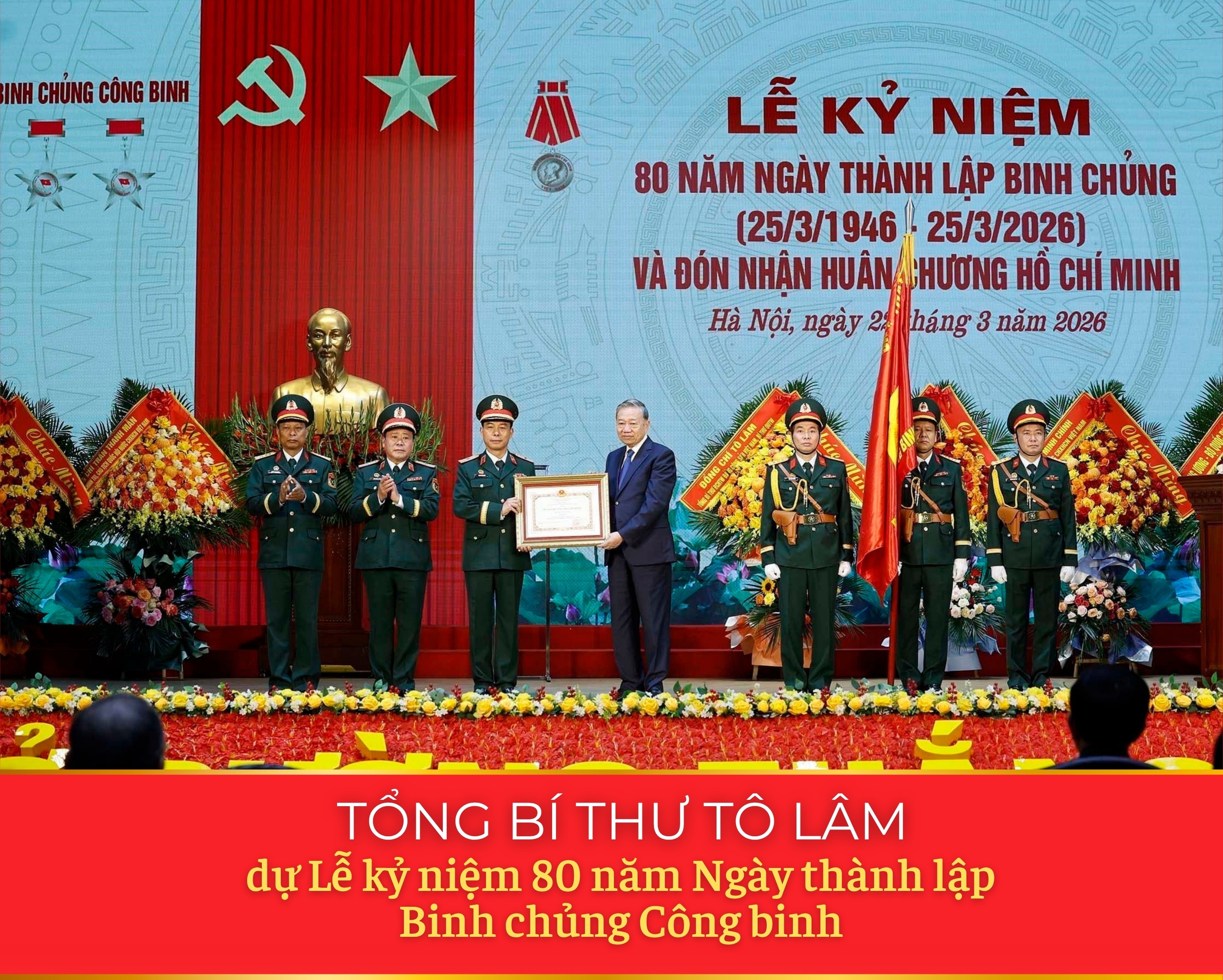Sáng 22/3/2026, tại Hà Nội, Tổng Bí thư Tô Lâm, Bí thư Quân uỷ Trung ương dự Lễ kỷ niệm 80 năm Ngày thành lập Binh chủng Công binh (25/3/1946 - 25/3/2026) và đón nhận Huân chương Hồ Chí Minh.