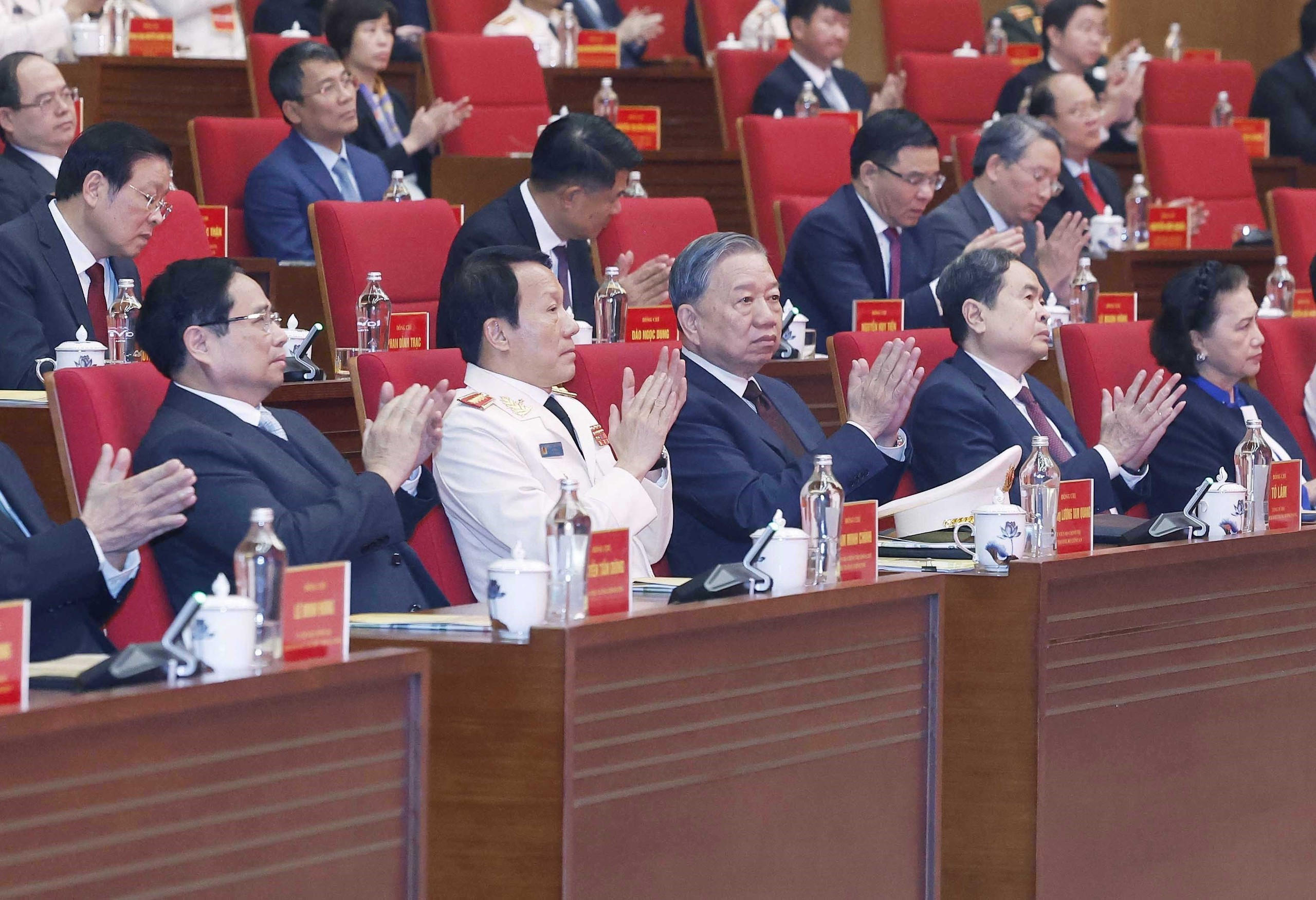 Tổng Bí thư Tô Lâm, các đồng chí lãnh đạo, nguyên lãnh đạo Đảng, Nhà nước và các đại biểu tham dự