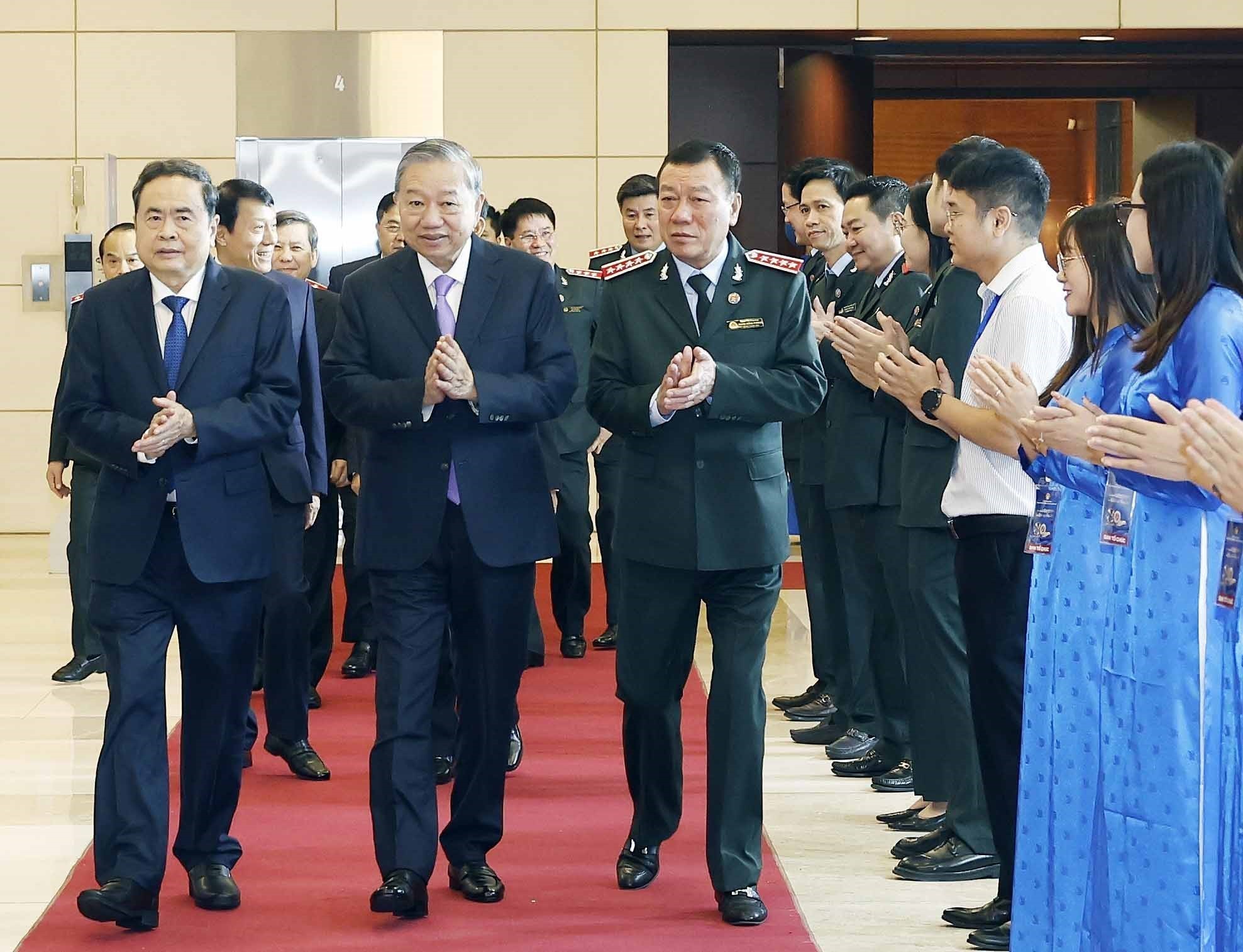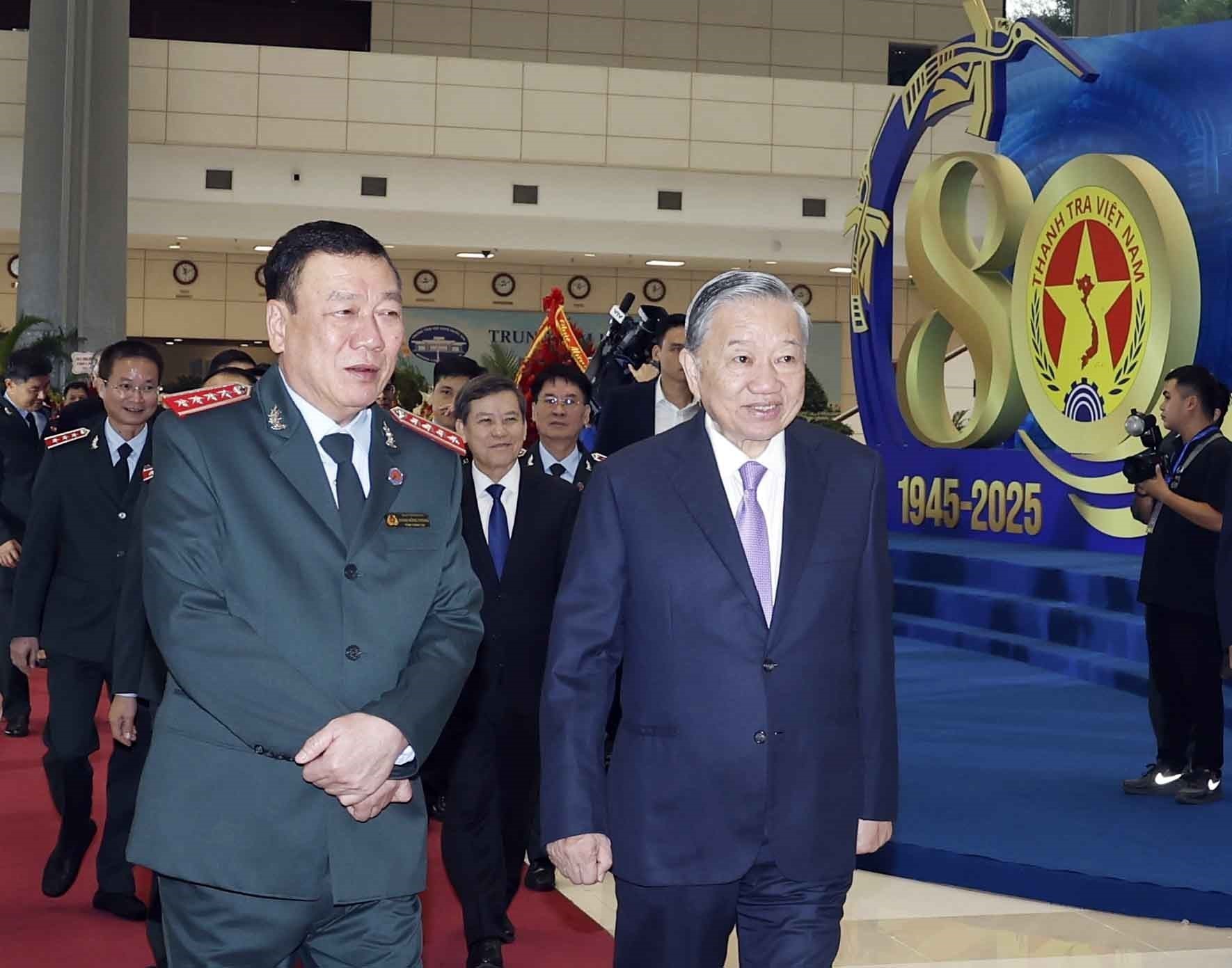 Tổng Bí thư Tô Lâm, Chủ tịch Quốc hội Trần Thanh Mẫn cùng các lãnh đạo Đảng, Nhà nước đến dự Lễ kỷ niệm 80 năm Ngày truyền thống Thanh tra Việt Nam (23/11/1945 - 23/11/2025). Ảnh: Thống Nhất - TTXVN