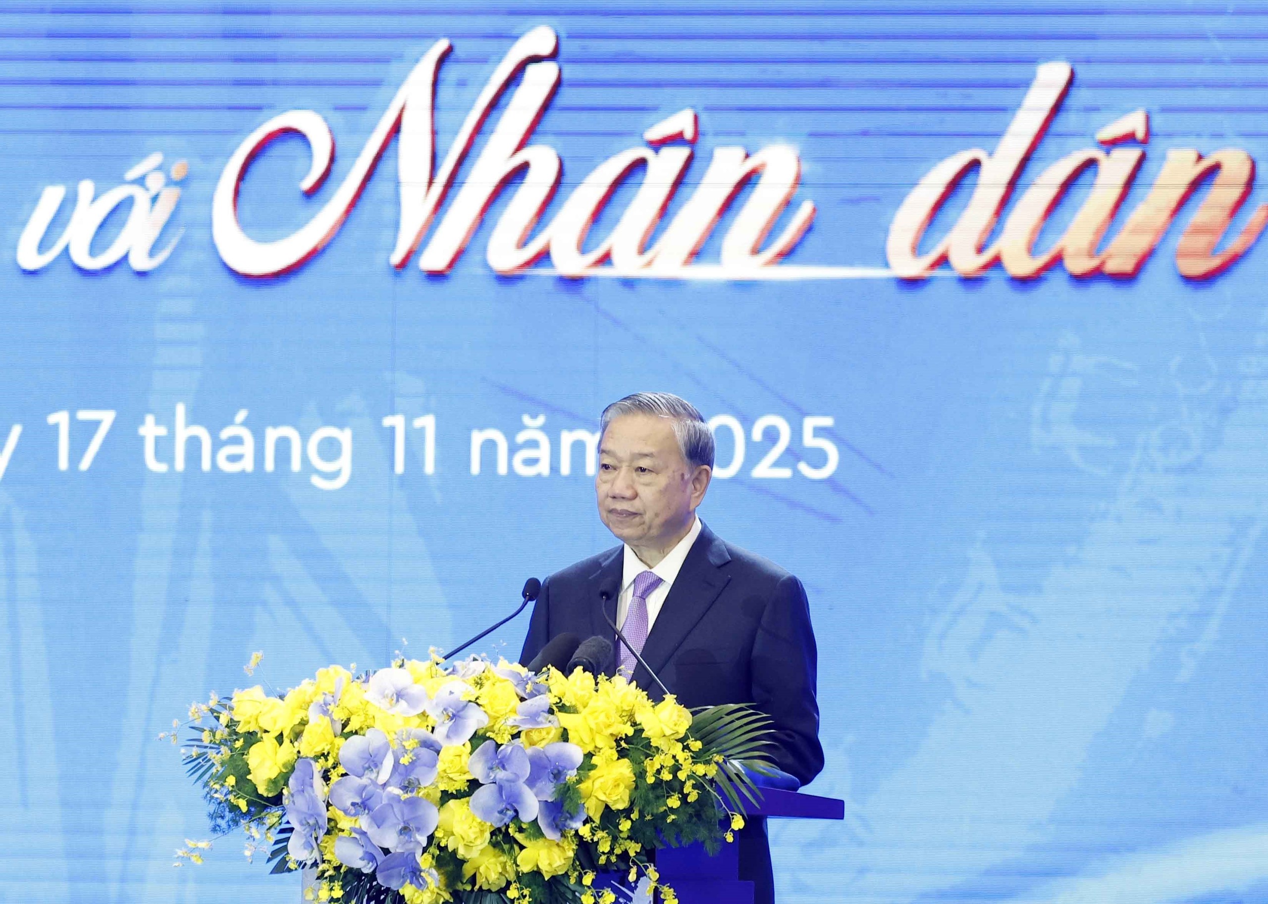Tổng Bí thư Tô Lâm phát biểu tại Lễ kỷ niệm 80 năm Ngày truyền thống Thanh tra Việt Nam (23/11/1945 - 23/11/2025). Ảnh: Thống Nhất - TTXVN