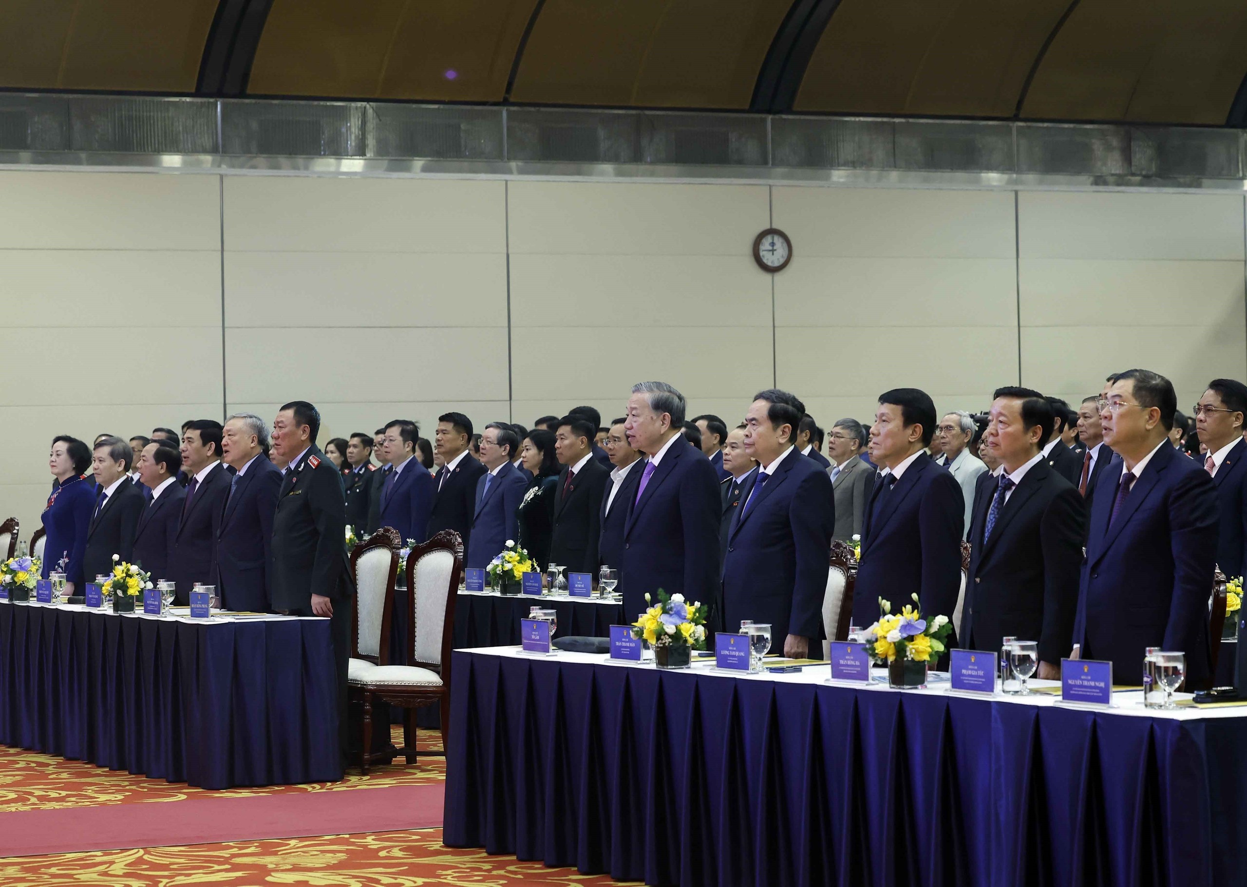 Tổng Bí thư Tô Lâm, Chủ tịch Quốc hội Trần Thanh Mẫn cùng các lãnh đạo Đảng, Nhà nước dự Lễ kỷ niệm 80 năm Ngày truyền thống Thanh tra Việt Nam (23/11/1945 - 23/11/2025). Ảnh: Thống Nhất - TTXVN
