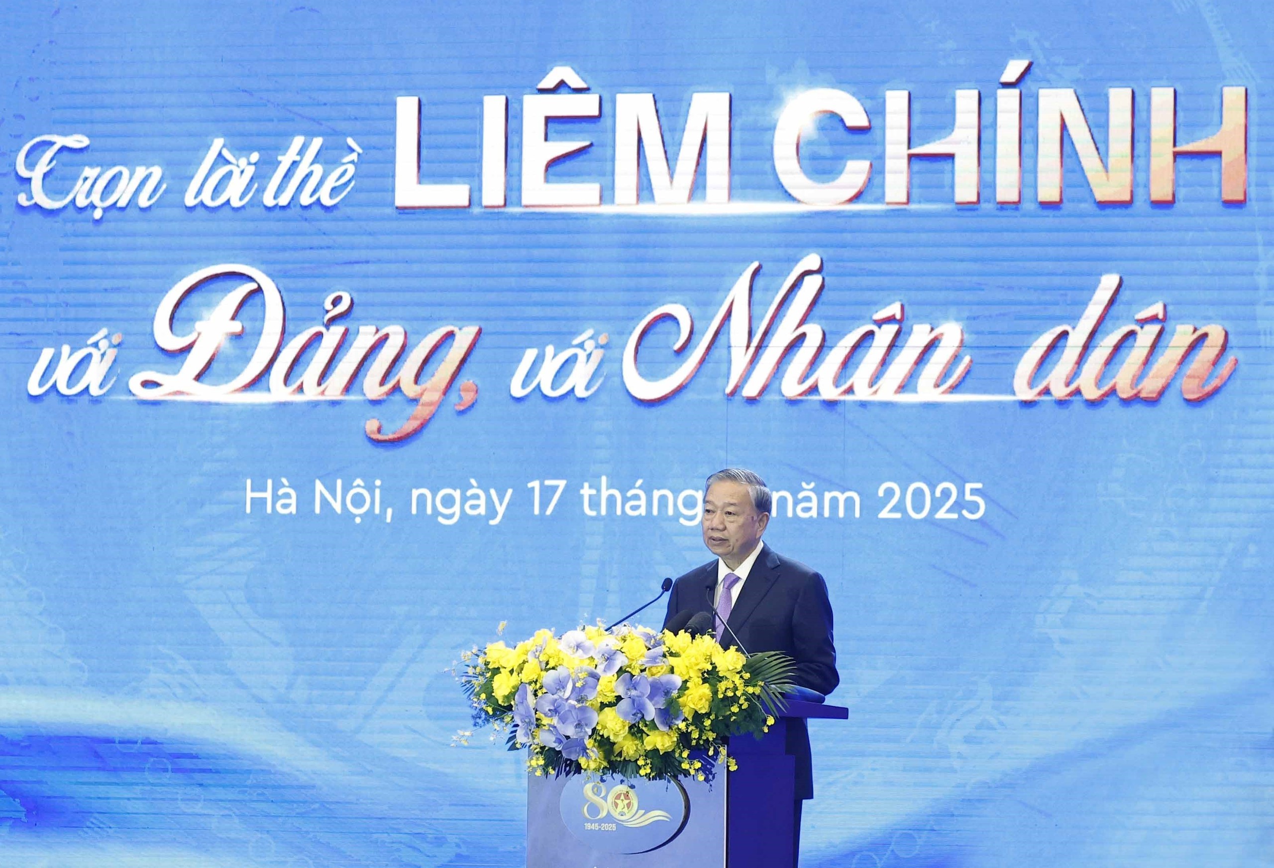 Tổng Bí thư Tô Lâm phát biểu tại Lễ kỷ niệm 80 năm Ngày truyền thống Thanh tra Việt Nam. Ảnh: TTXVN