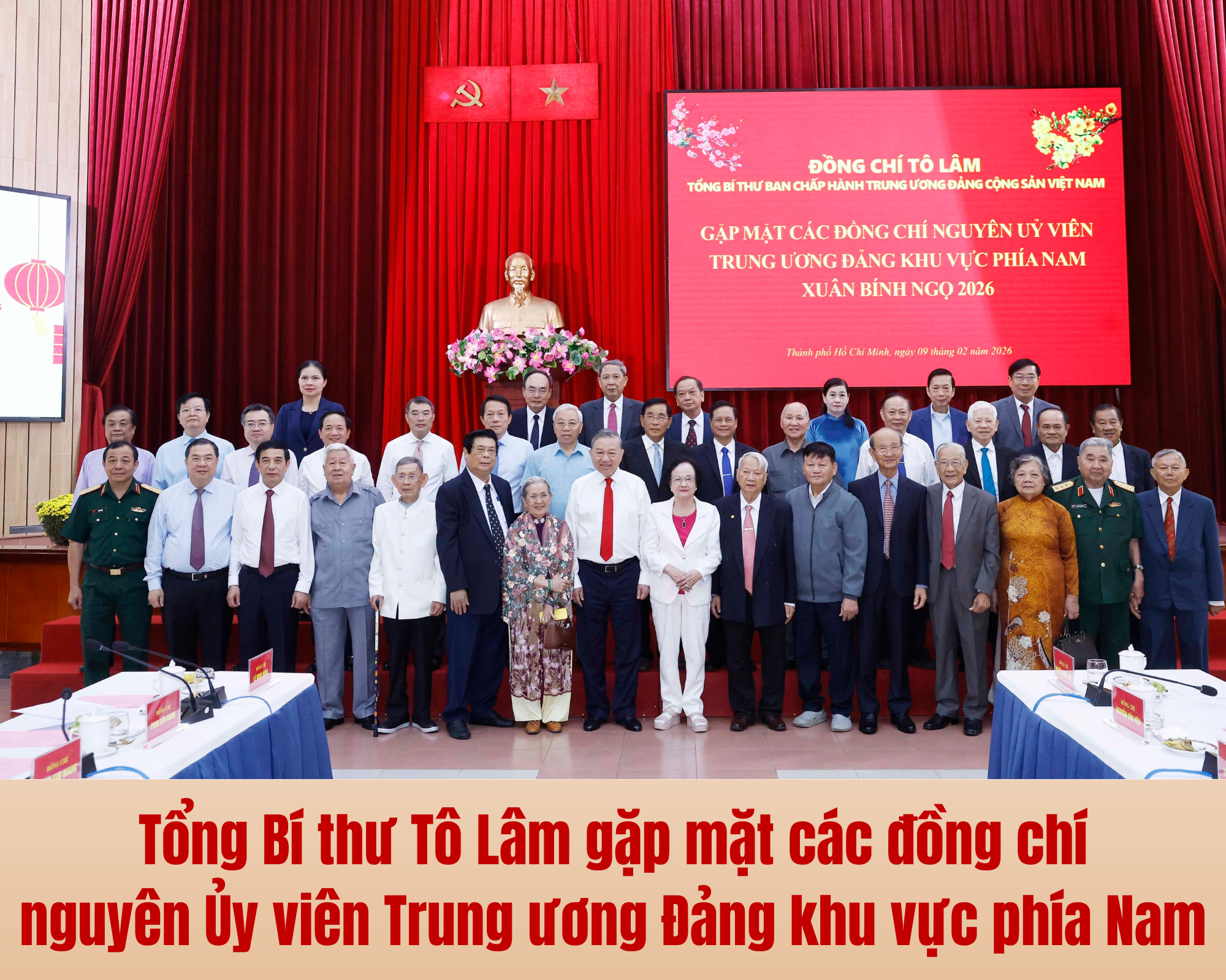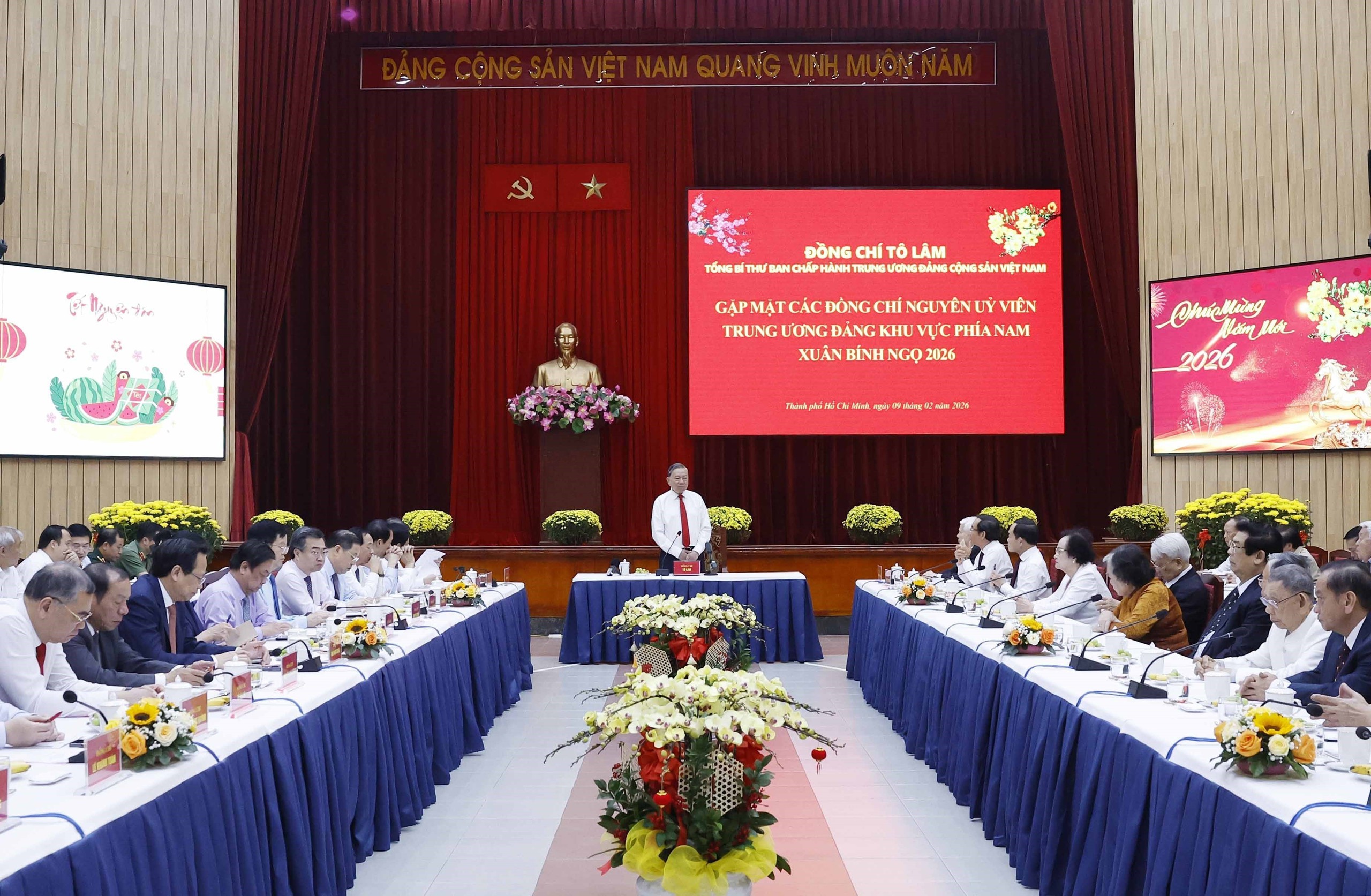 Nhân dịp kỷ niệm 96 năm ngày thành lập Đảng, mừng Xuân Bính Ngọ năm 2026, sáng 9/2, tại Thành phố Hồ Chí Minh, Tổng Bí thư Tô Lâm đã chủ trì buổi gặp mặt các đồng chí nguyên Ủy viên Trung ương Đảng các khóa khu vực phía Nam do điều kiện không tham dự cuộc gặp mặt tại Hà Nội.