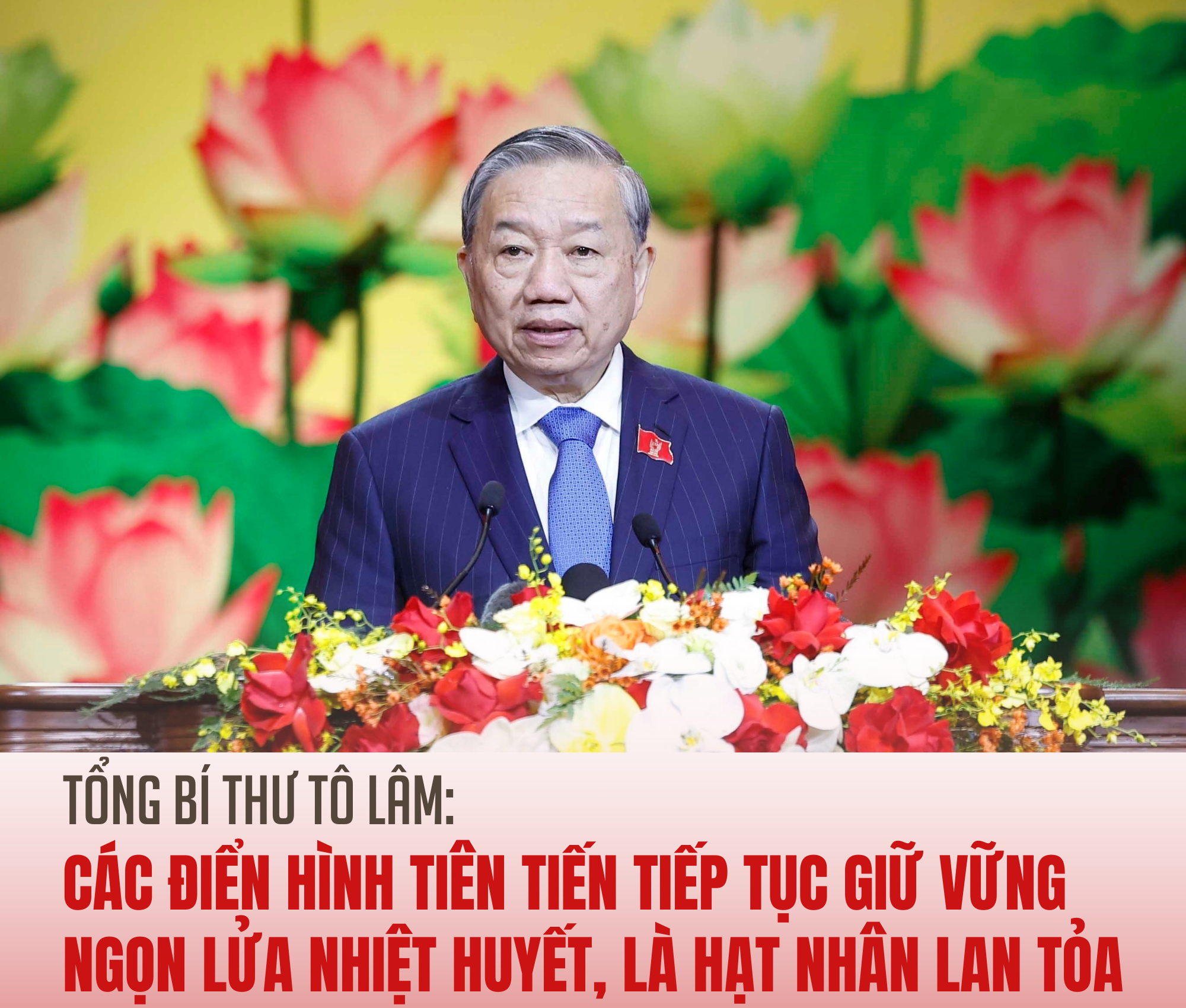 Tổng Bí thư mong muốn các điển hình tiên tiến được tôn vinh tiếp tục giữ vững ngọn lửa nhiệt huyết, tiếp tục là hạt nhân lan tỏa. Đồng thời, mỗi chúng ta hãy đặt cho mình một mục tiêu thi đua: học tốt hơn, làm việc tốt hơn, kỷ luật hơn, sáng tạo hơn, nhiệt tình hơn, trách nhiệm hơn... Khi mỗi người tốt lên, mỗi tổ chức mạnh lên, cả đất nước, dân tộc sẽ tiến lên.