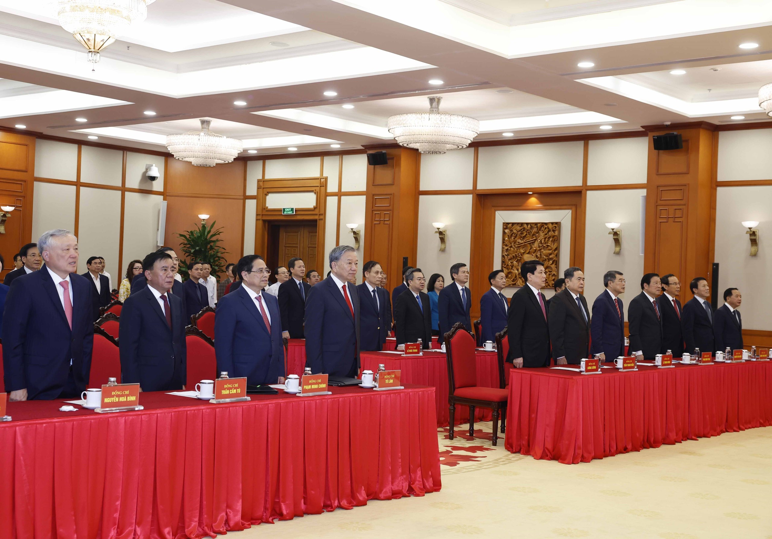 Cùng dự có các đồng chí: Lương Cường, Ủy viên Bộ Chính trị khóa XIII, Chủ tịch nước; Phạm Minh Chính, Ủy viên Bộ Chính trị khóa XIII, Thủ tướng Chính phủ; Trần Thanh Mẫn, Ủy viên Bộ Chính trị, Chủ tịch Quốc hội; Trần Cẩm Tú, Ủy viên Bộ Chính trị, Thường trực Ban Bí thư.