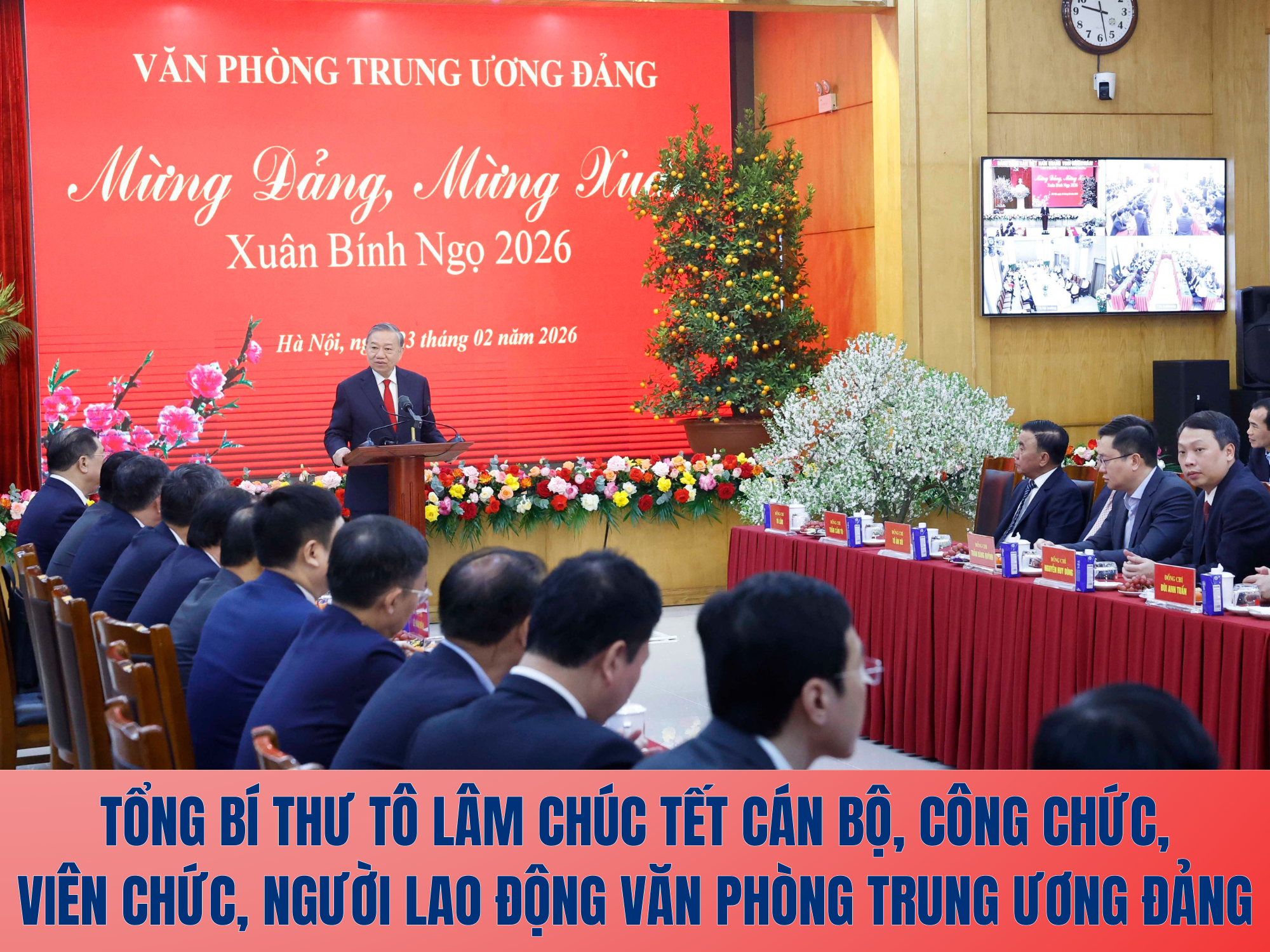 Nhân dịp đầu Xuân năm mới Bính Ngọ 2026, sáng 23/2/2026, Tổng Bí thư Tô Lâm chúc Tết cán bộ, công chức, viên chức, người lao động Văn phòng Trung ương Đảng.
