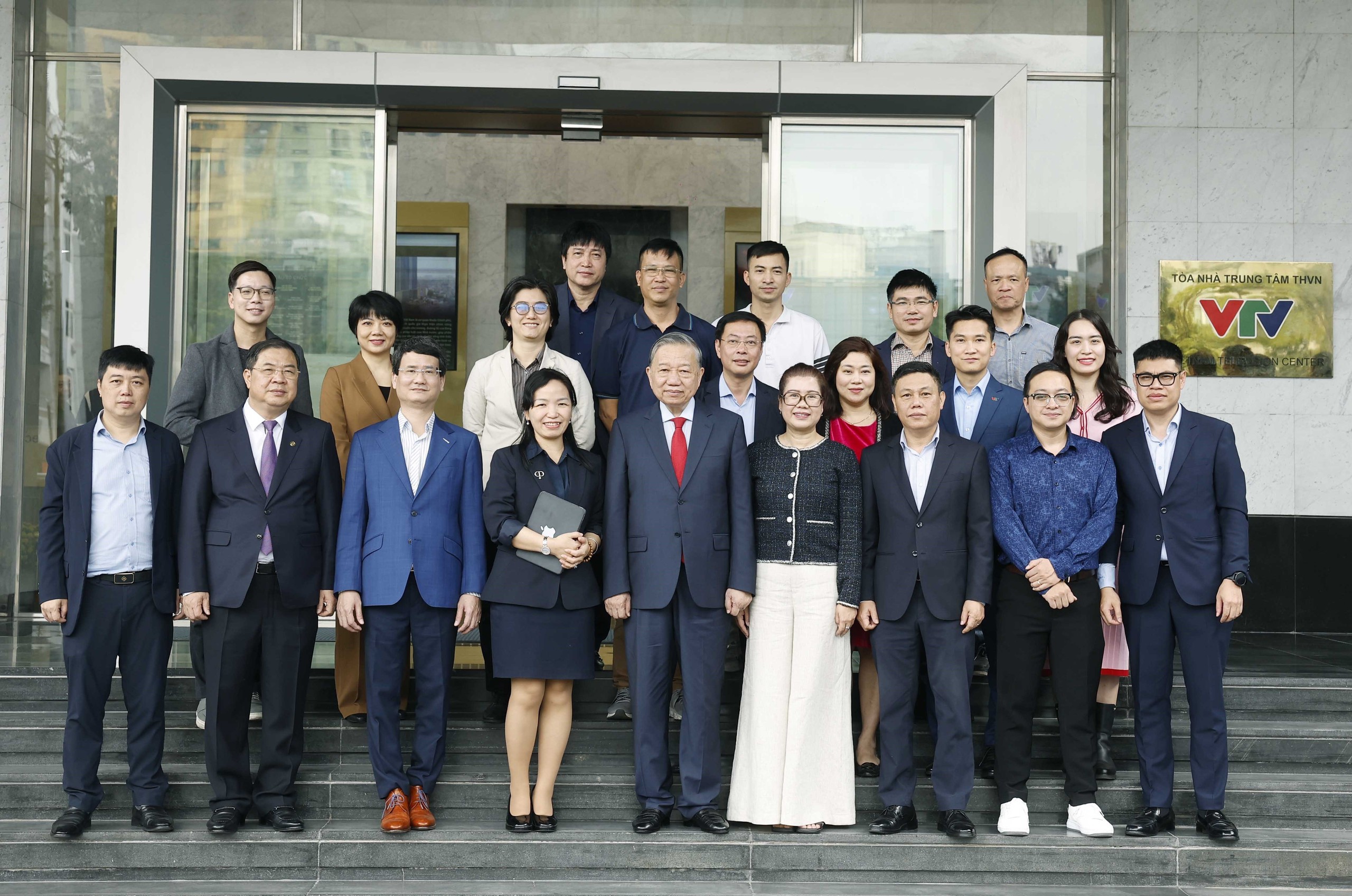 Tổng Bí thư Tô Lâm với cán bộ, phóng viên, biên tập viên và kỹ thuật viên Đài Truyền hình Việt Nam. Ảnh: Thống Nhất-TTXVN
