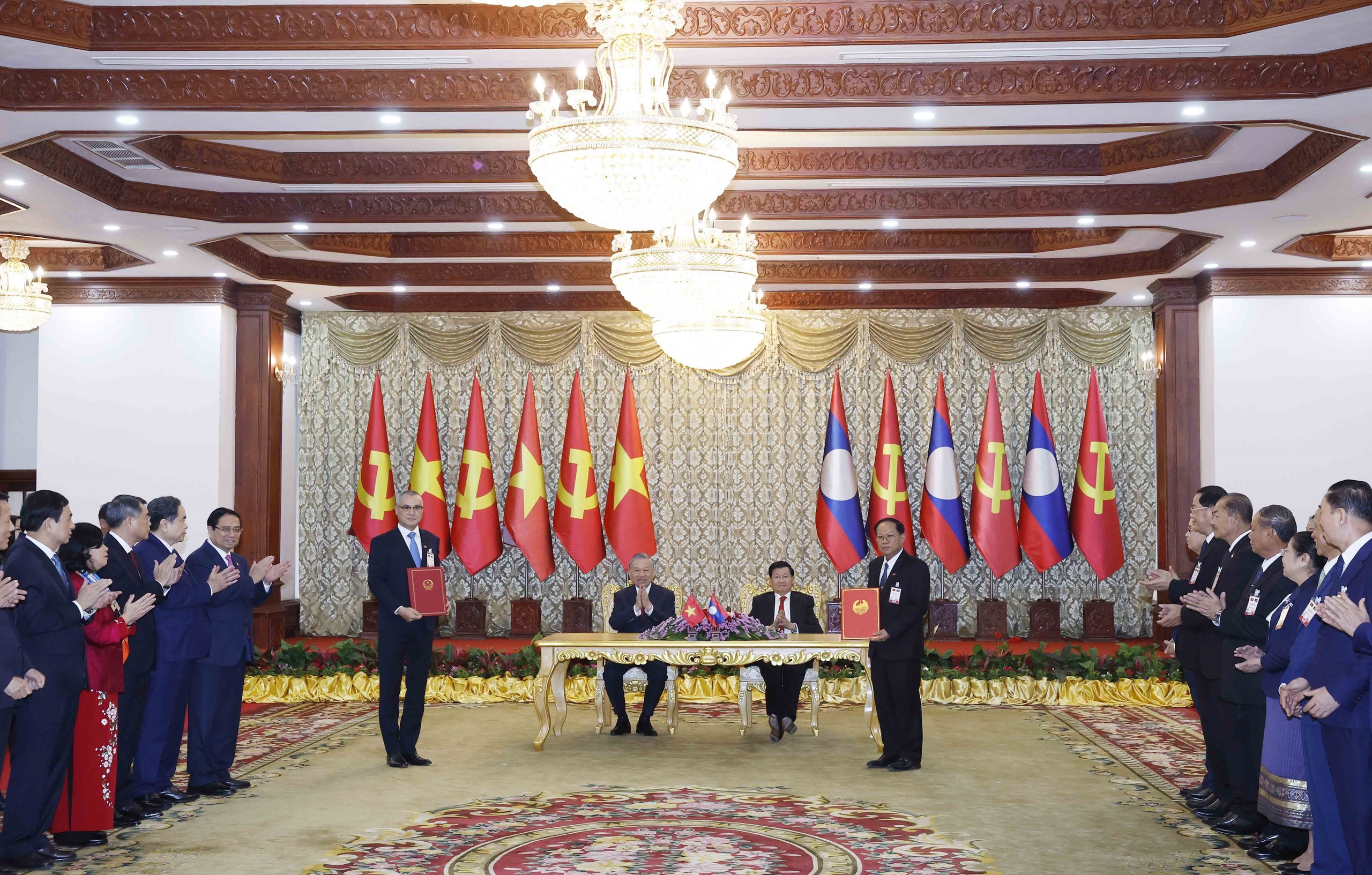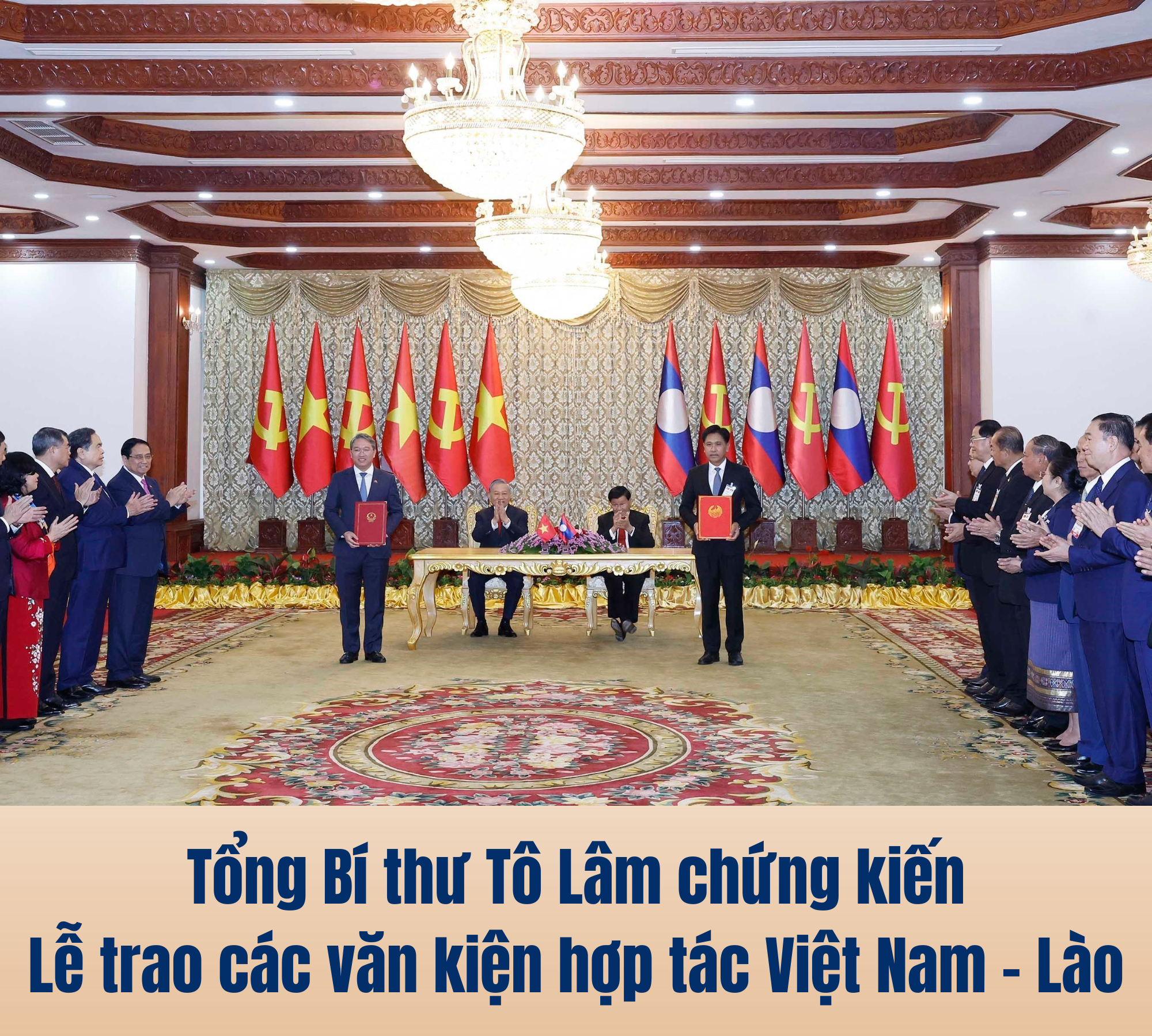 Trong khuôn khổ chuyến thăm cấp Nhà nước tới Lào, sáng 5/2, tại thủ đô Viêng Chăn, Tổng Bí thư Tô Lâm và Tổng Bí thư, Chủ tịch nước Lào Thongloun Sisoulith đã chứng kiến Lễ trao các văn kiện hợp tác nhằm tiếp tục thắt chặt quan hệ hợp tác, góp phần củng cố và tăng cường hơn nữa mối quan hệ hữu nghị vĩ đại, đoàn kết đặc biệt, hợp tác toàn diện và gắn kết chiến lược giữa hai nước Việt Nam và Lào.