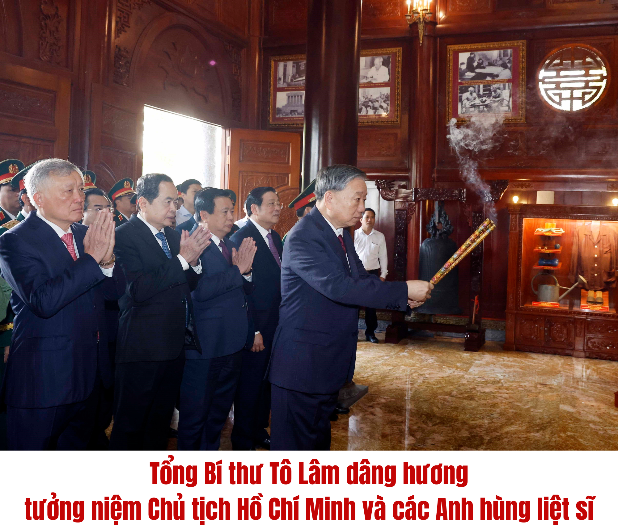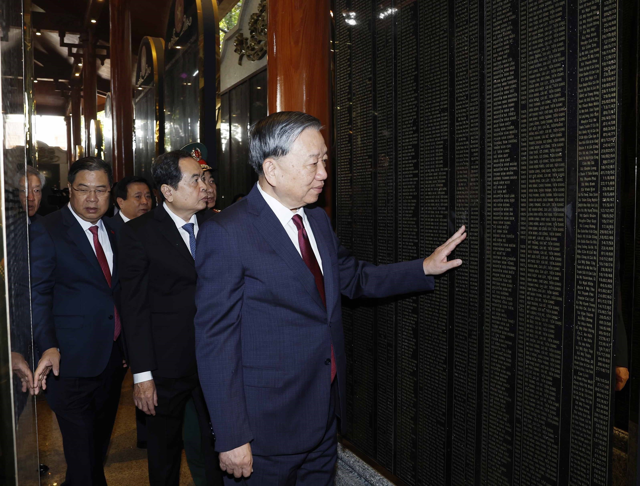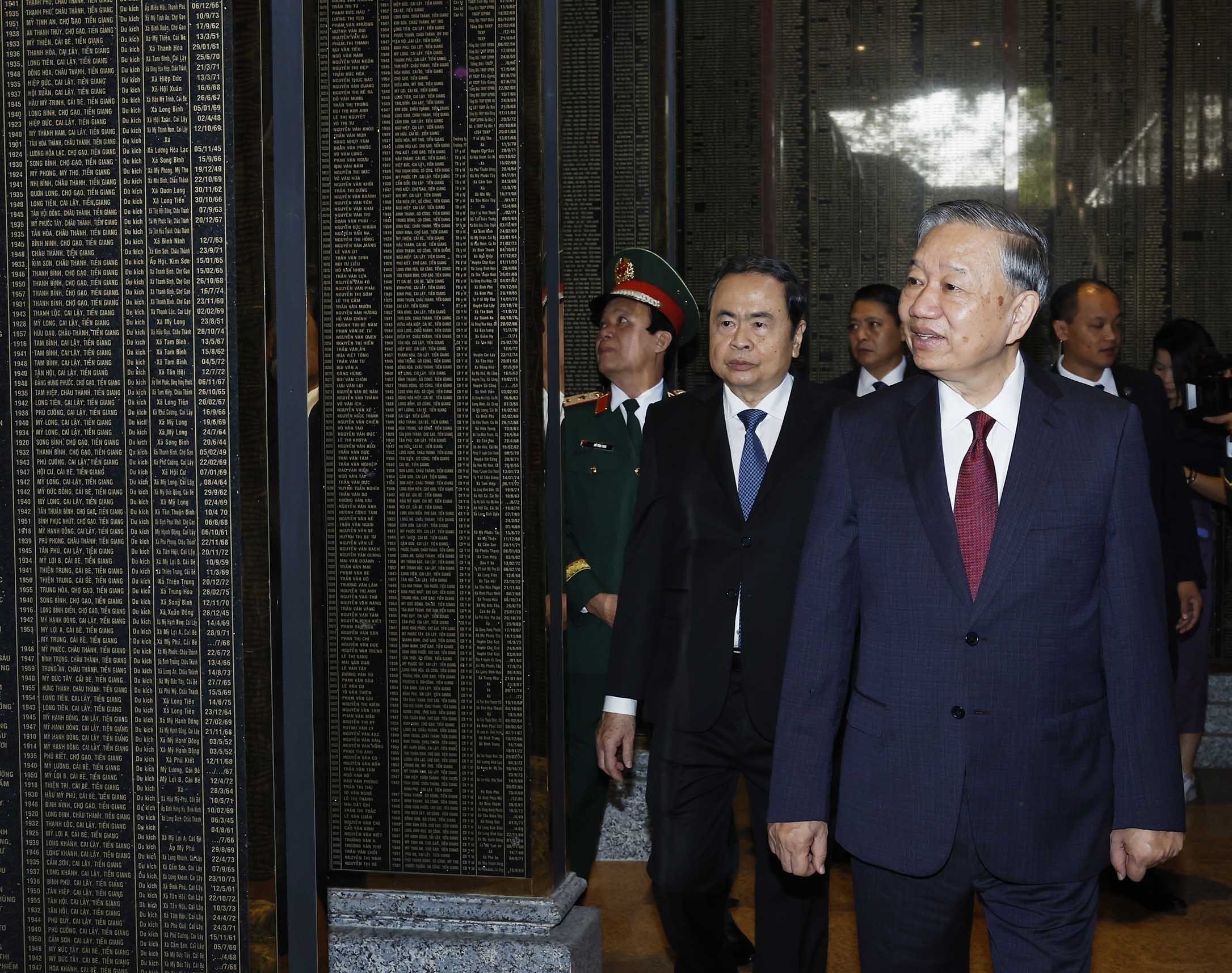Tổng Bí thư Tô Lâm và các đại biểu thăm Nhà bia tưởng niệm các Anh hùng liệt sĩ. Ảnh: Thống Nhất – TTXVN