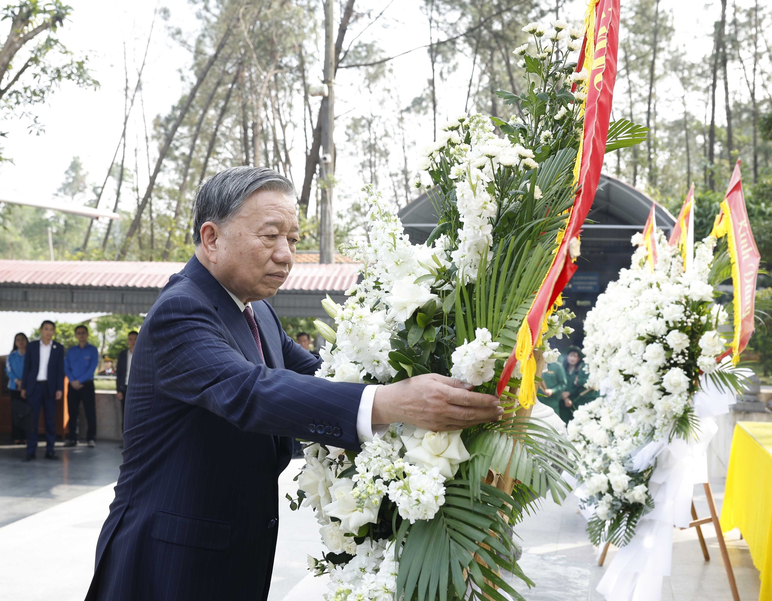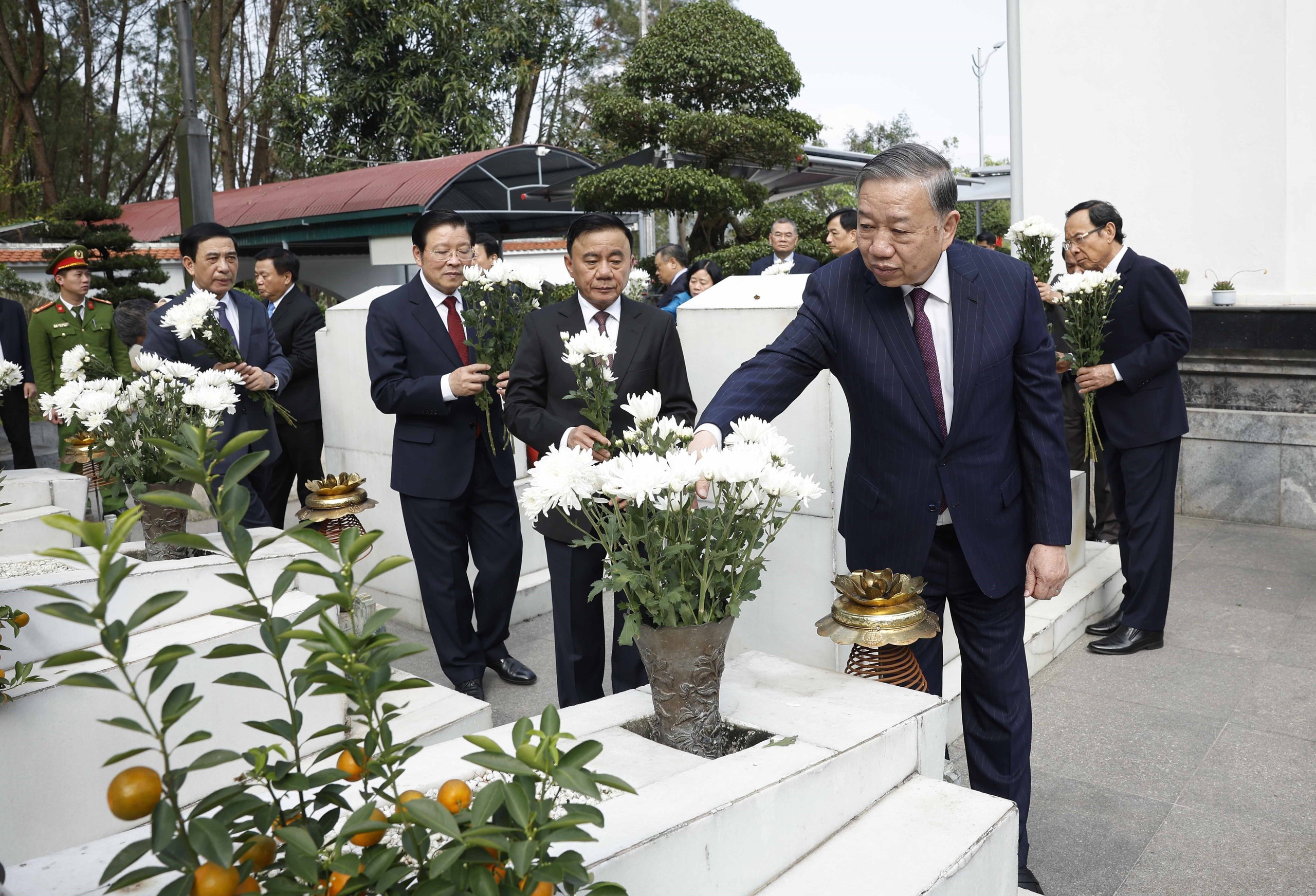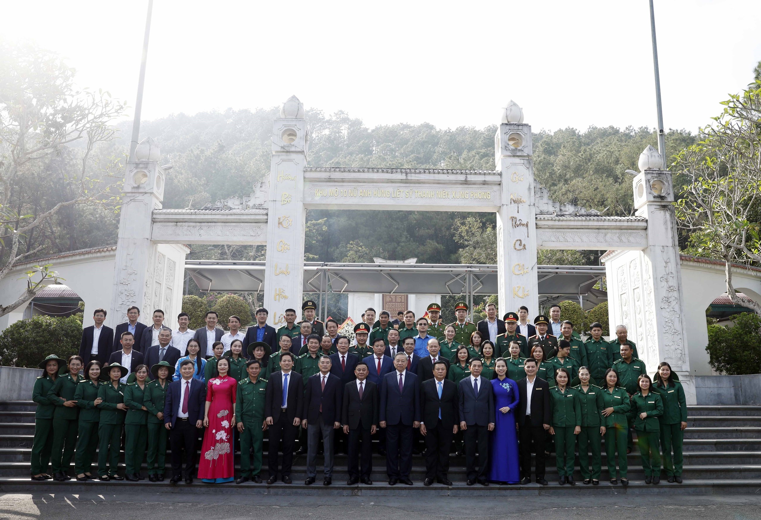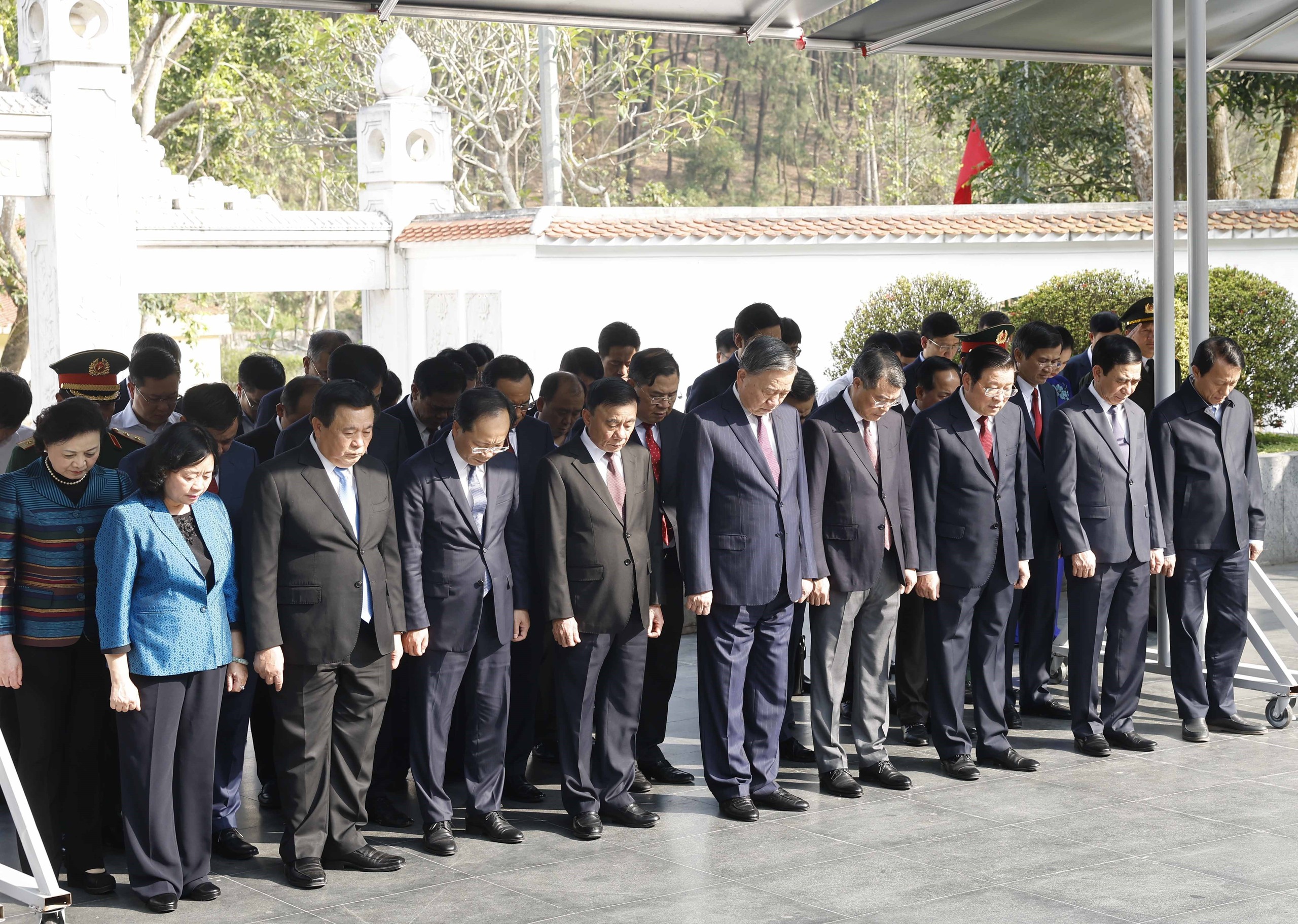 Trước anh linh các anh hùng liệt sĩ, Tổng Bí thư Tô Lâm và Đoàn công tác kính cẩn nghiêng mình, bày tỏ lòng biết ơn vô hạn đối với công lao to lớn của các thế hệ cha anh vì sự nghiệp đấu tranh giải phóng dân tộc và thống nhất đất nước.