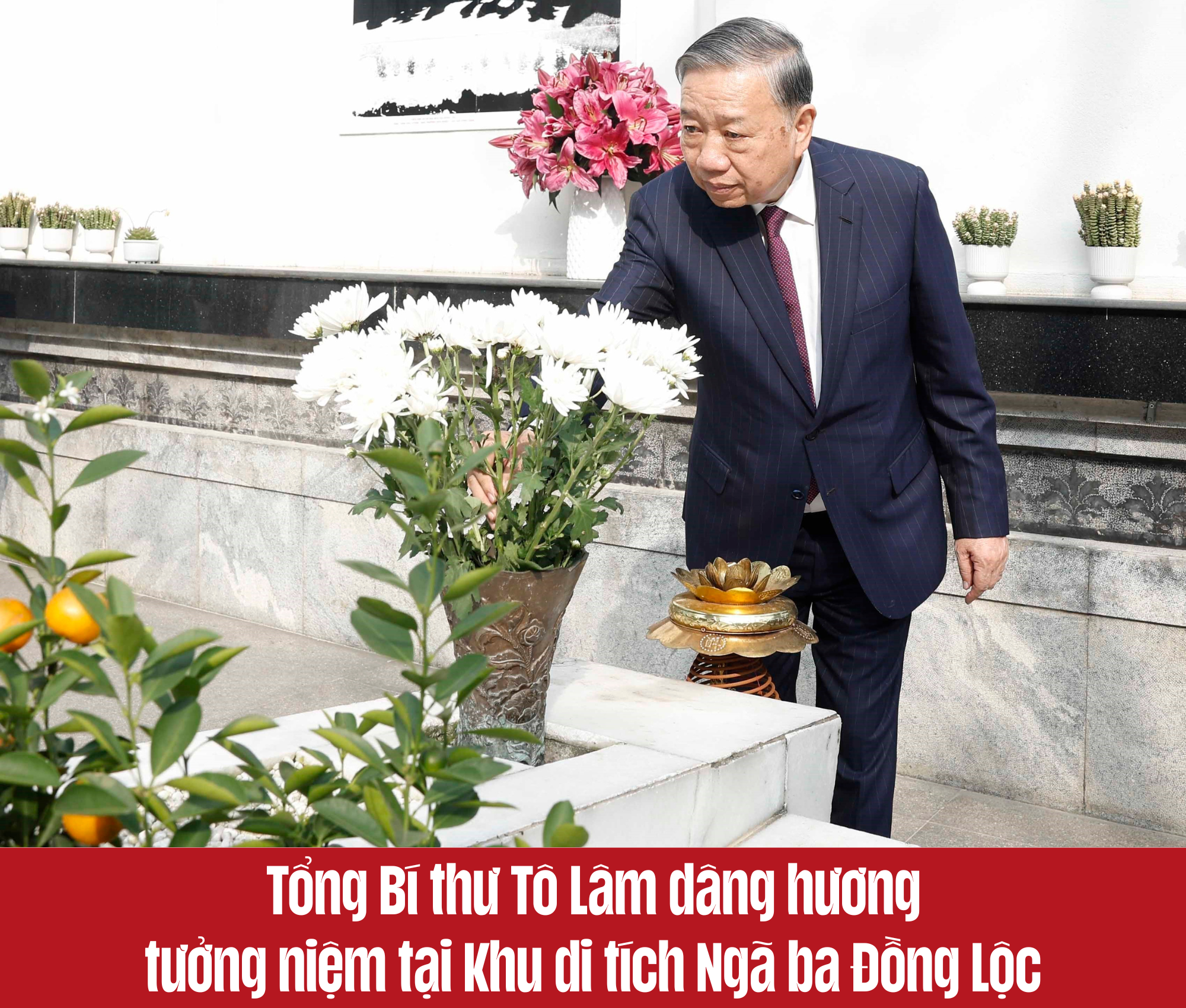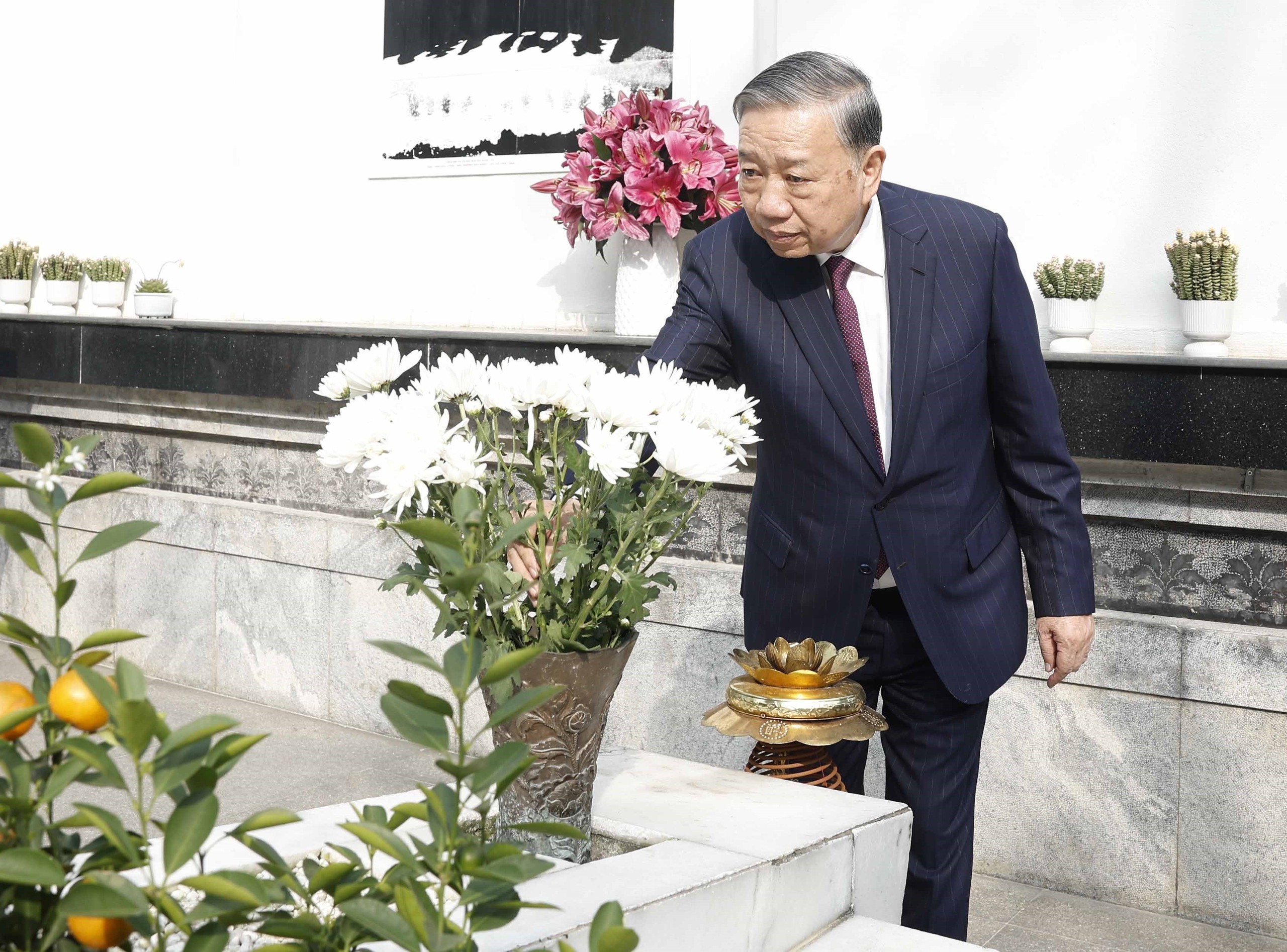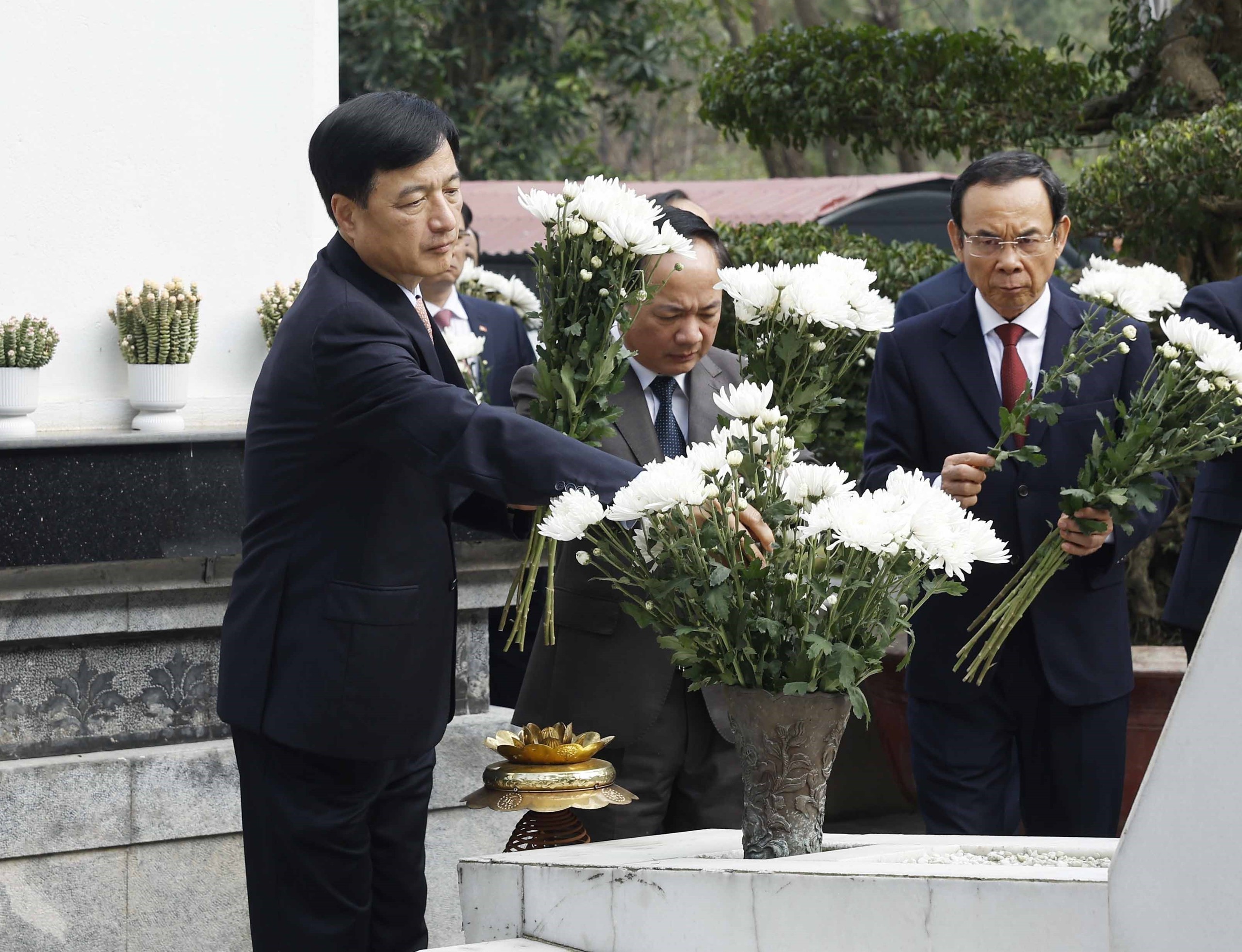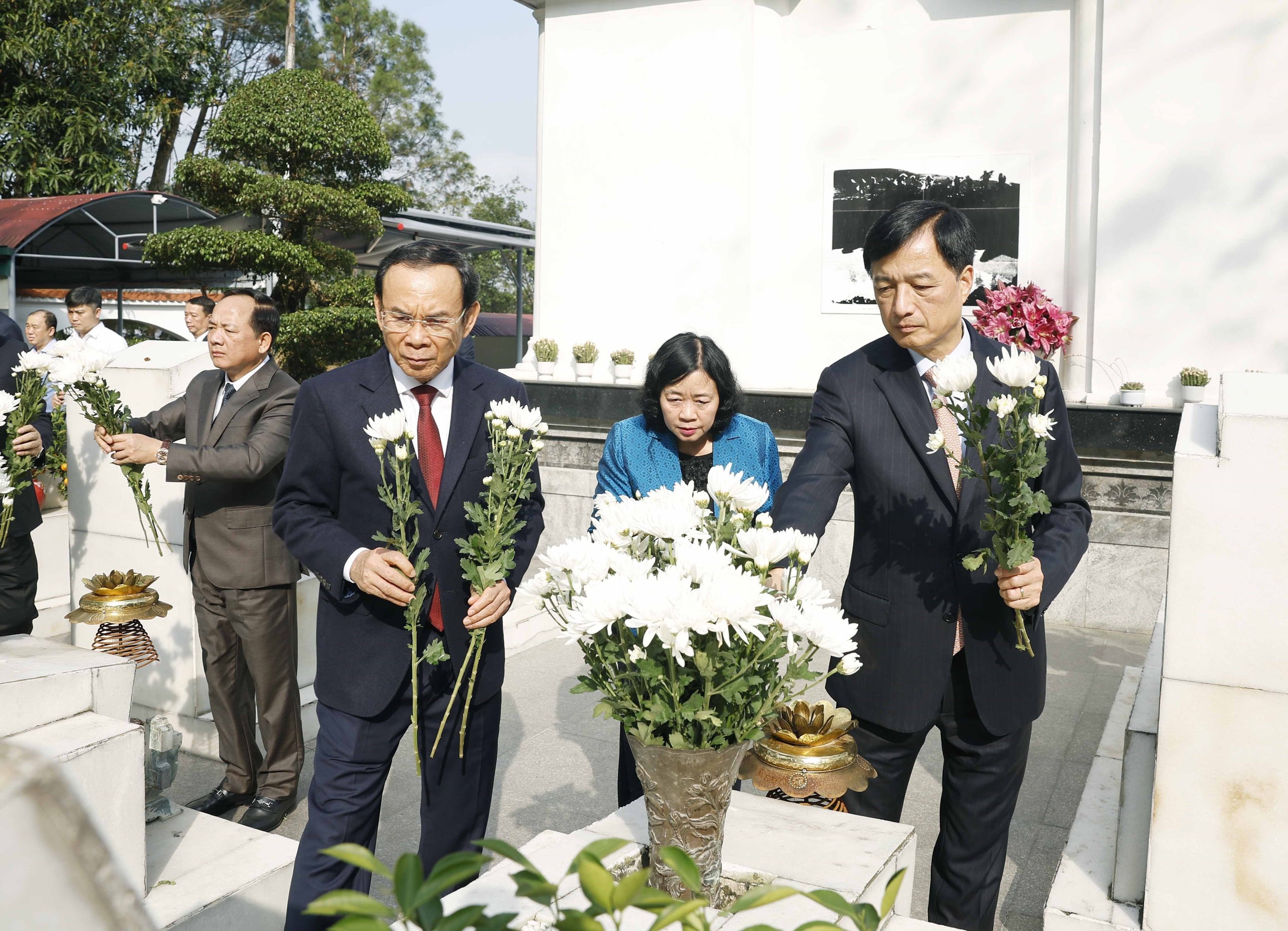 Trước anh linh các anh hùng liệt sĩ, Tổng Bí thư Tô Lâm và Đoàn công tác kính cẩn nghiêng mình, bày tỏ lòng biết ơn vô hạn đối với công lao to lớn của các thế hệ cha anh vì sự nghiệp đấu tranh giải phóng dân tộc và thống nhất đất nước.