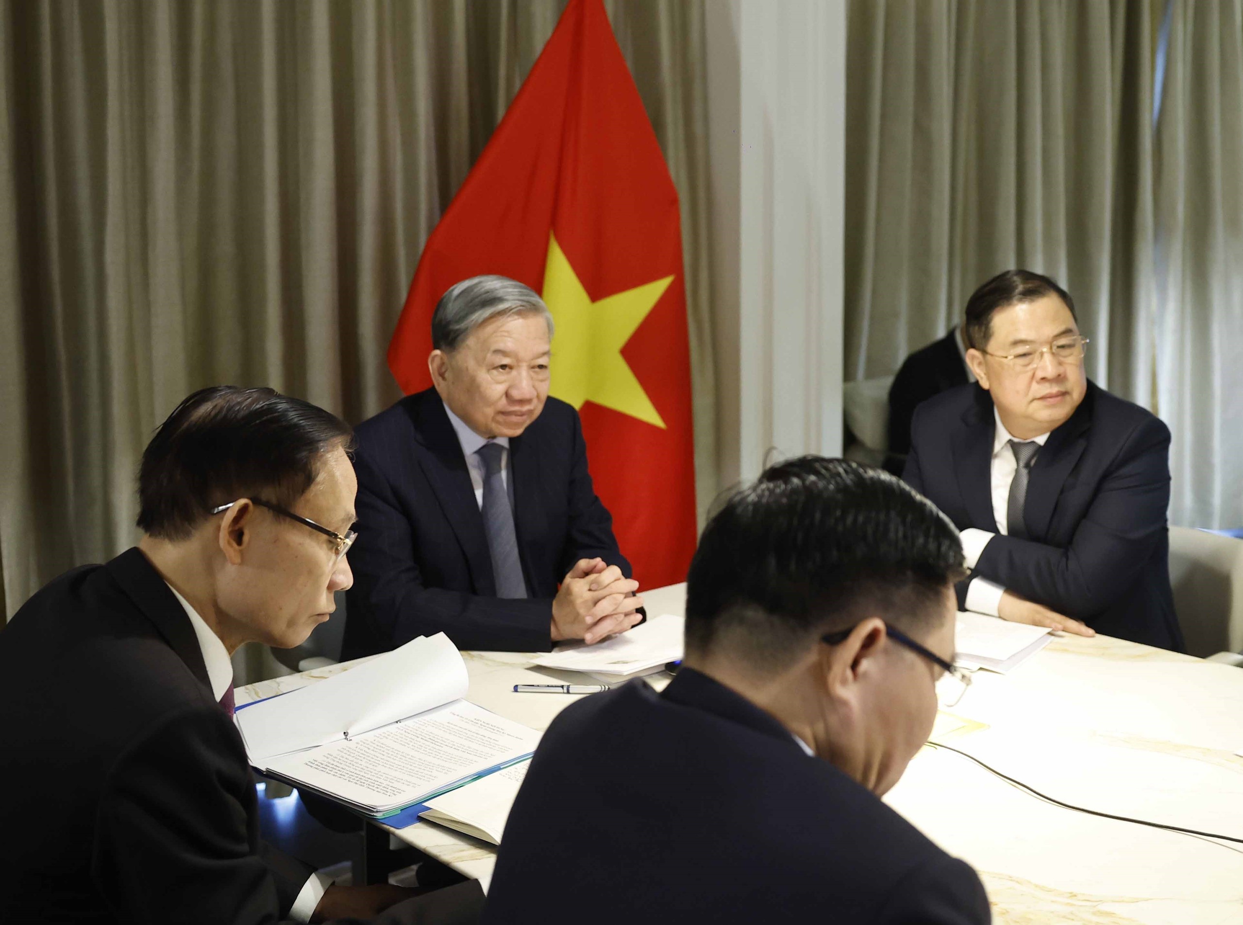 Theo đặc phái viên TTXVN, trưa 18/2 (theo giờ địa phương), chuyên cơ chở Tổng Bí thư Tô Lâm và đoàn đã tới sân bay quân sự Andrews (Hoa Kỳ), tham dự cuộc họp khai mạc Hội đồng Hòa bình về Gaza, theo lời mời của Tổng thống Hợp chúng quốc Hoa Kỳ Donald Trump, Chủ tịch Sáng lập Hội đồng Hòa bình về Gaza từ ngày 18 - 20/2/2026.
