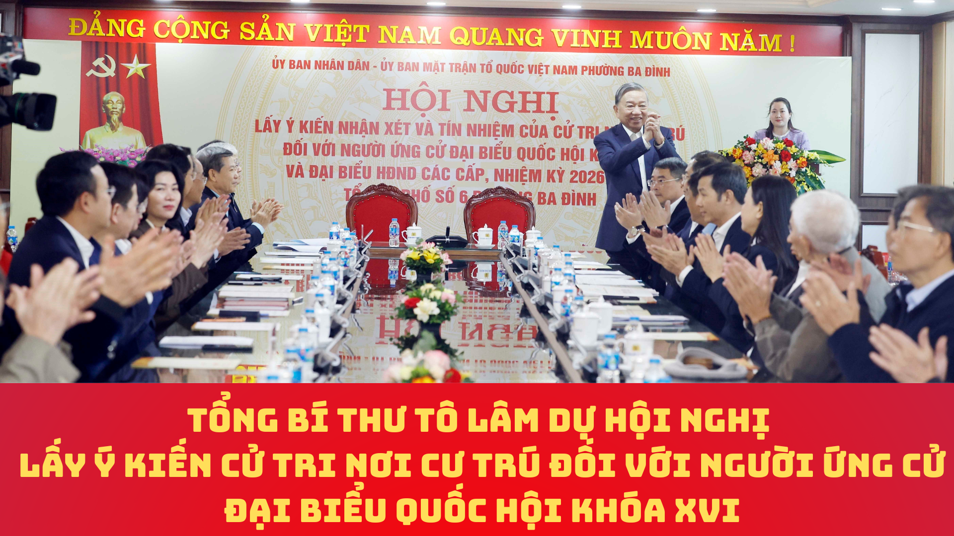 Tại hội nghị, cử tri đã nghe giới thiệu các tiêu chuẩn của người ứng cử đại biểu Quốc hội khóa XVI và tóm tắt tiểu sử 7 người ứng cử, hiện đang cư trú trên địa bàn phường Ba Đình, gồm: Tổng Bí thư Tô Lâm; Chủ tịch Quốc hội Trần Thanh Mẫn; Thường trực Ban Bí thư Trần Cẩm Tú; Phó Chủ tịch Thường trực Quốc hội Đỗ Văn Chiến; Trưởng ban Tổ chức Trung ương Lê Minh Hưng; Trưởng ban Nội chính Trung ương Lê Minh Trí; Chủ nhiệm Văn phòng Chủ tịch nước Lê Khánh Hải.