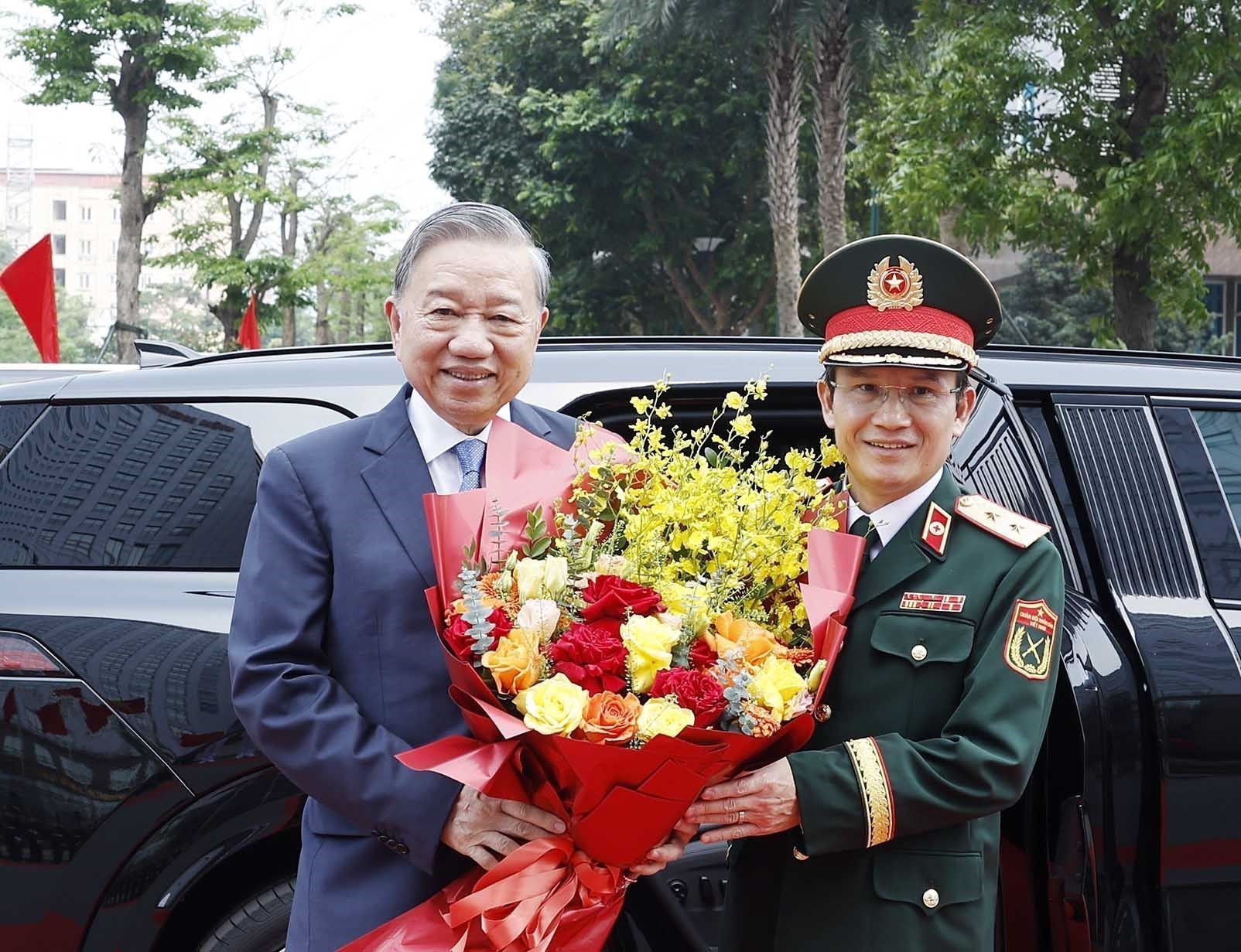 Tham dự buổi Lễ có các đồng chí Ủy viên Bộ Chính trị: Lê Minh Hưng, Bí thư Trung ương Đảng, Trưởng ban Tổ chức Trung ương; Bùi Thị Minh Hoài, Bí thư Trung ương Đảng, Chủ tịch Ủy ban Trung ương Mặt trận Tổ quốc Việt Nam; Đại tướng Phan Văn Giang, Phó Bí thư Quân ủy Trung ương, Bộ trưởng Bộ Quốc phòng; Đại tướng Lương Tam Quang, Bộ trưởng Bộ Công an; Nguyễn Duy Ngọc, Bí thư Thành ủy Hà Nội; Lê Minh Trí, Bí thư Trung ương Đảng, Trưởng ban Nội chính Trung ương; Trần Sỹ Thanh, Bí thư Trung ương Đảng, Chủ nhiệm Ủy ban kiểm tra Trung ương; Trịnh Văn Quyết, Bí thư Trung ương Đảng, Trưởng ban Tuyên giáo và Dân vận Trung ương; Nguyễn Thanh Nghị, Trưởng ban Chính sách, chiến lược Trung ương; Phạm Gia Túc, Chánh Văn phòng Trung ương Đảng; Đại tướng Nguyễn Trọng Nghĩa, Bí thư Trung ương Đảng, Chủ nhiệm Tổng cục Chính trị Quân đội nhân dân Việt Nam; Đoàn Minh Huấn, Giám đốc Học viện Chính trị quốc gia Hồ Chí Minh.