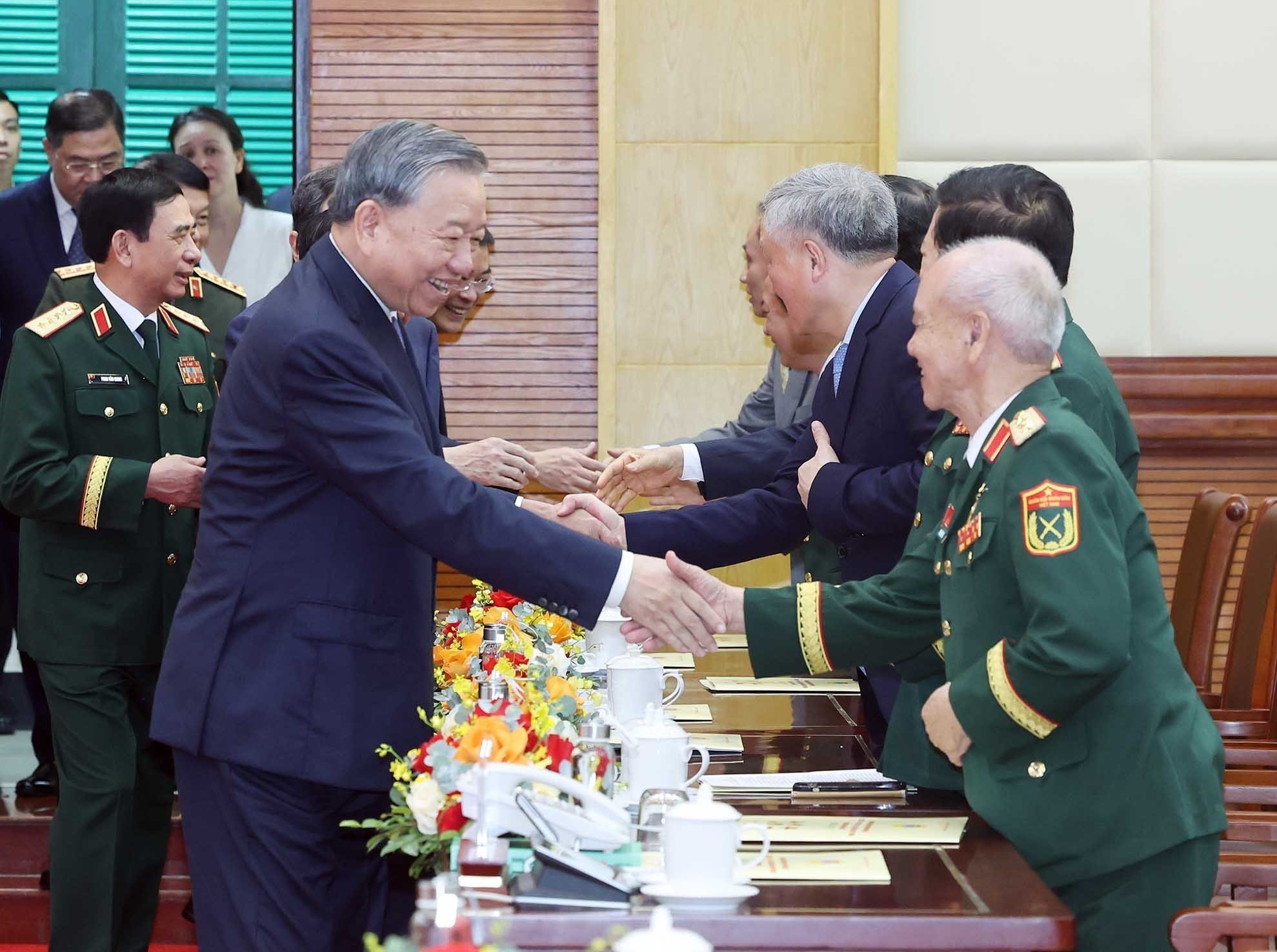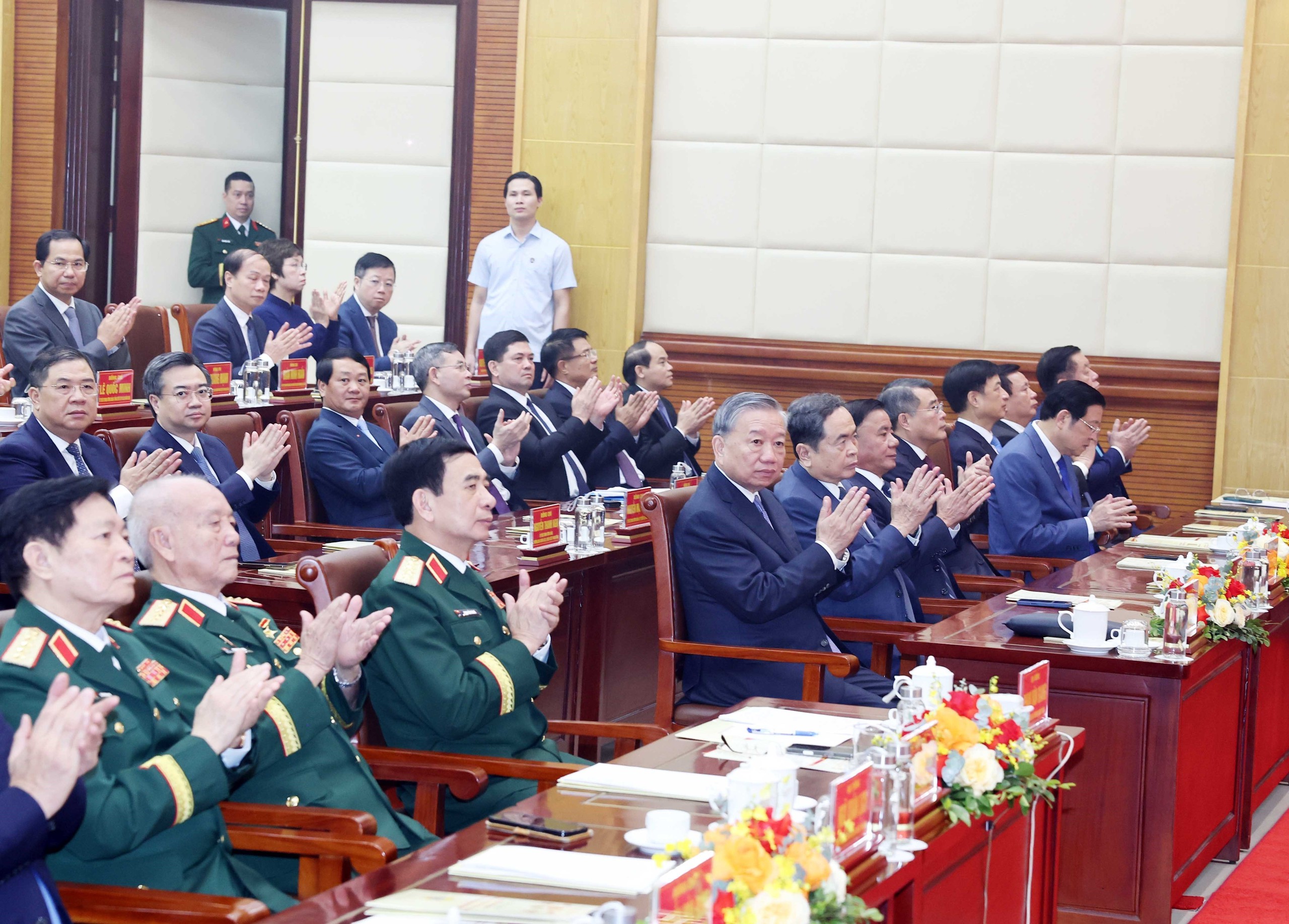 Tổng Bí thư Tô Lâm, Bí thư Quân uỷ Trung ương và các đại biểu. Ảnh: Thống Nhất - TTXVN
