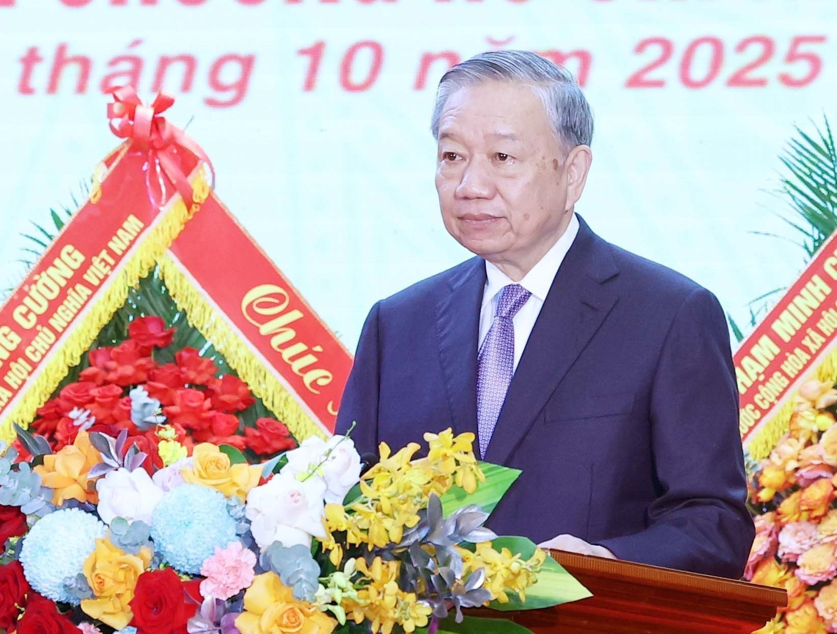 Tổng Bí thư Tô Lâm, Bí thư Quân uỷ Trung ương phát biểu. Ảnh: Thống Nhất - TTXVN