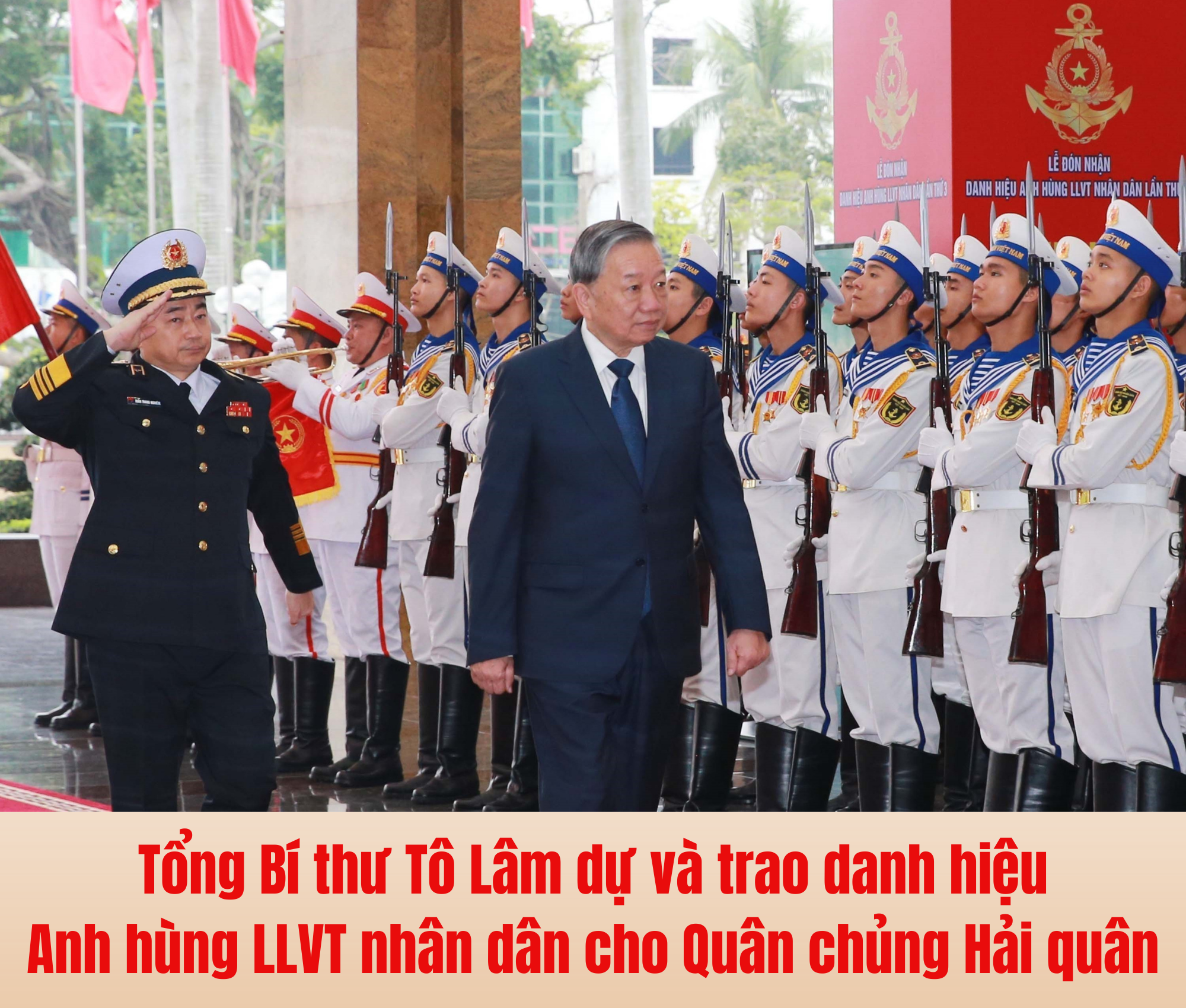 Tại buổi Lễ, Tổng Bí thư Tô Lâm, Bí thư Quân ủy Trung ương đã trao tặng danh hiệu Anh hùng Lực lượng vũ trang nhân dân (lần thứ 3) cho Quân chủng Hải quân, Bộ Quốc phòng.