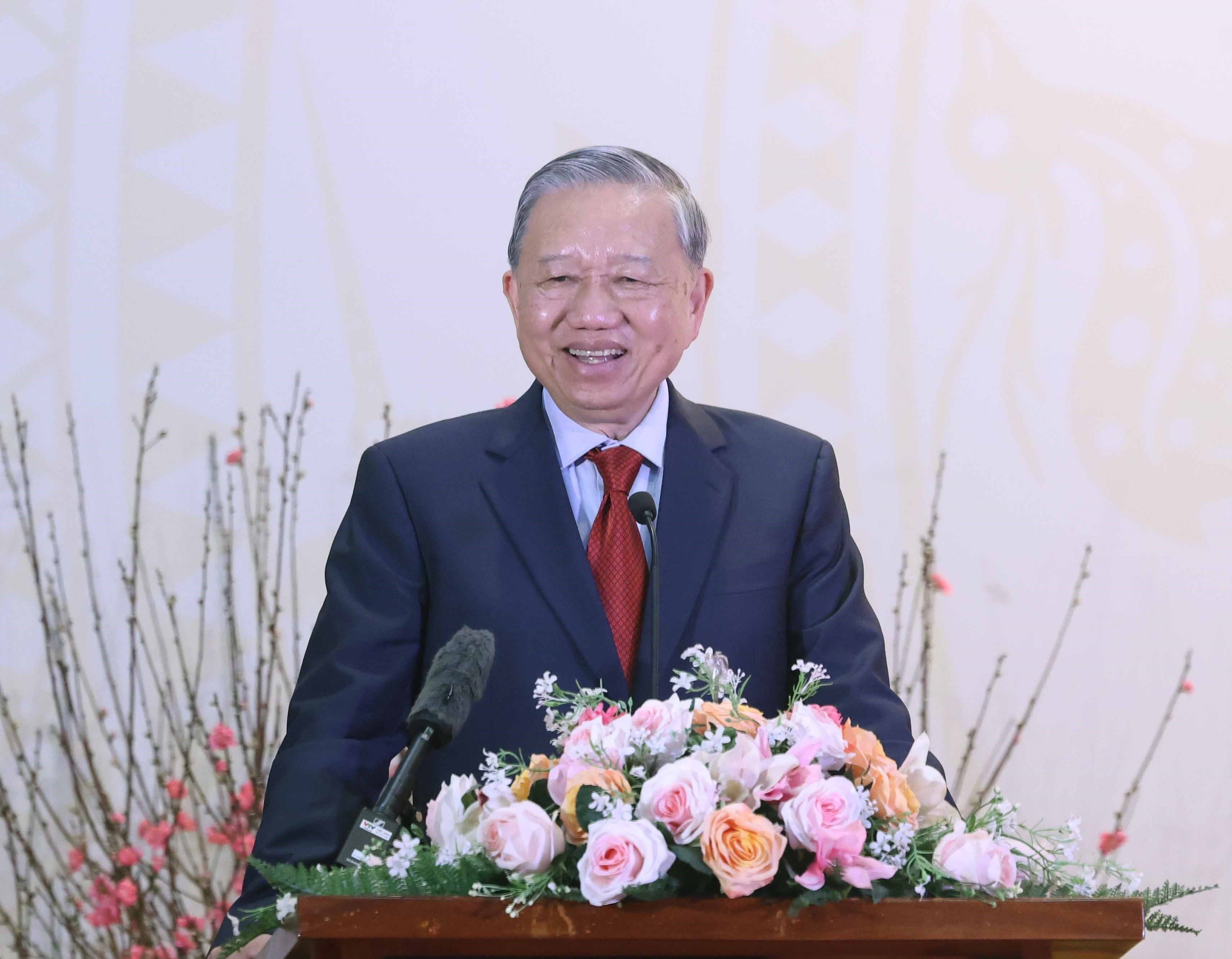 Tổng Bí thư Tô Lâm phát biểu tại cuộc gặp gỡ cán bộ, nhân viên Đại sứ quán và cộng đồng người Việt Nam tại Campuchia. Ảnh: Thống Nhất – TTXVN