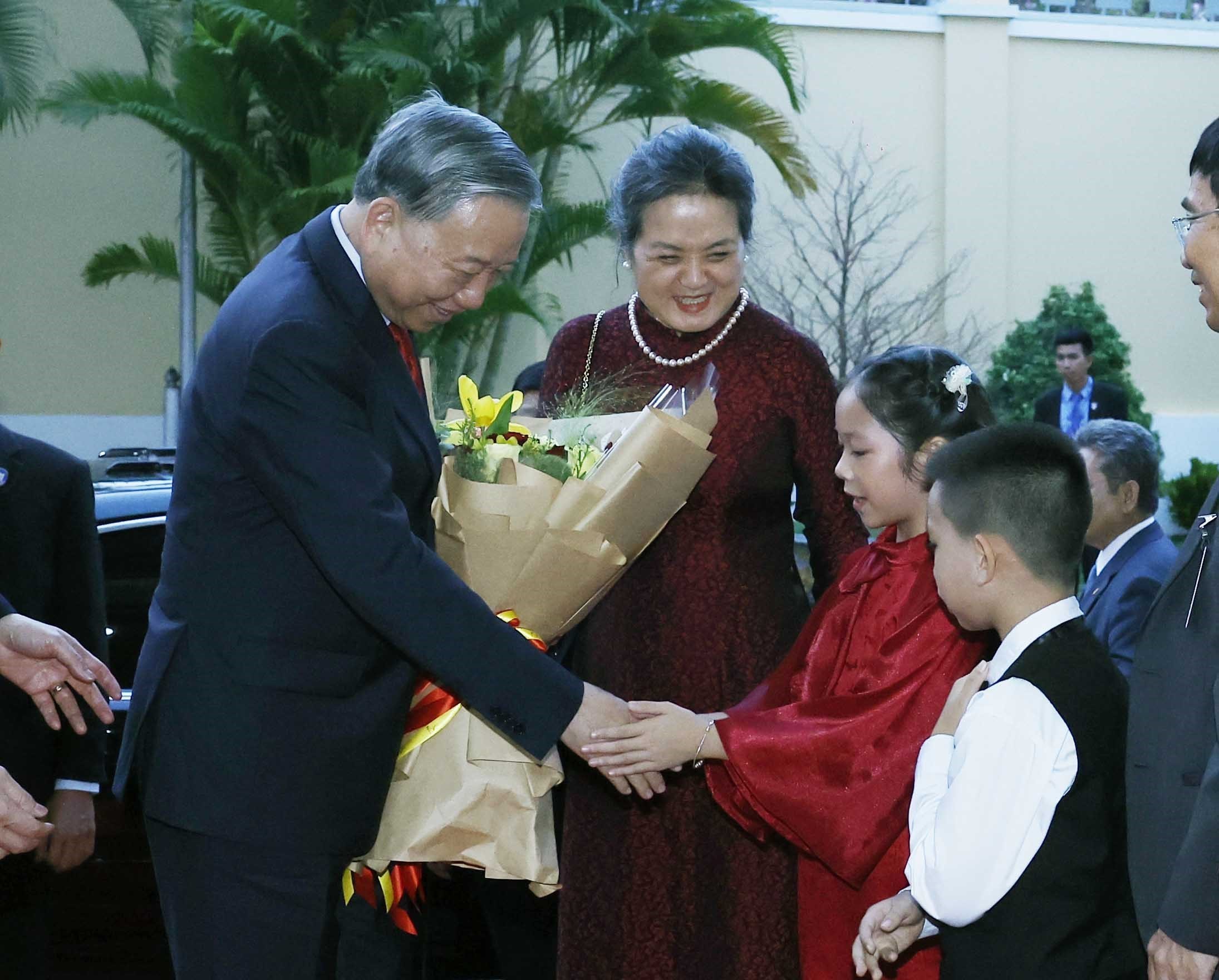 Phát biểu tại buổi gặp, Tổng Bí thư Tô Lâm nhấn mạnh chuyến thăm cấp Nhà nước tới Lào và Campuchia lần này có ý nghĩa hết sức đặc biệt, là chuyến công tác nước ngoài đầu tiên của lãnh đạo Đảng, Nhà nước Việt Nam ngay sau Đại hội XIV của Đảng, thể hiện rõ chính sách nhất quán, coi trọng và ưu tiên hàng đầu của Đảng, Nhà nước Việt Nam đối với Lào và Campuchia.
