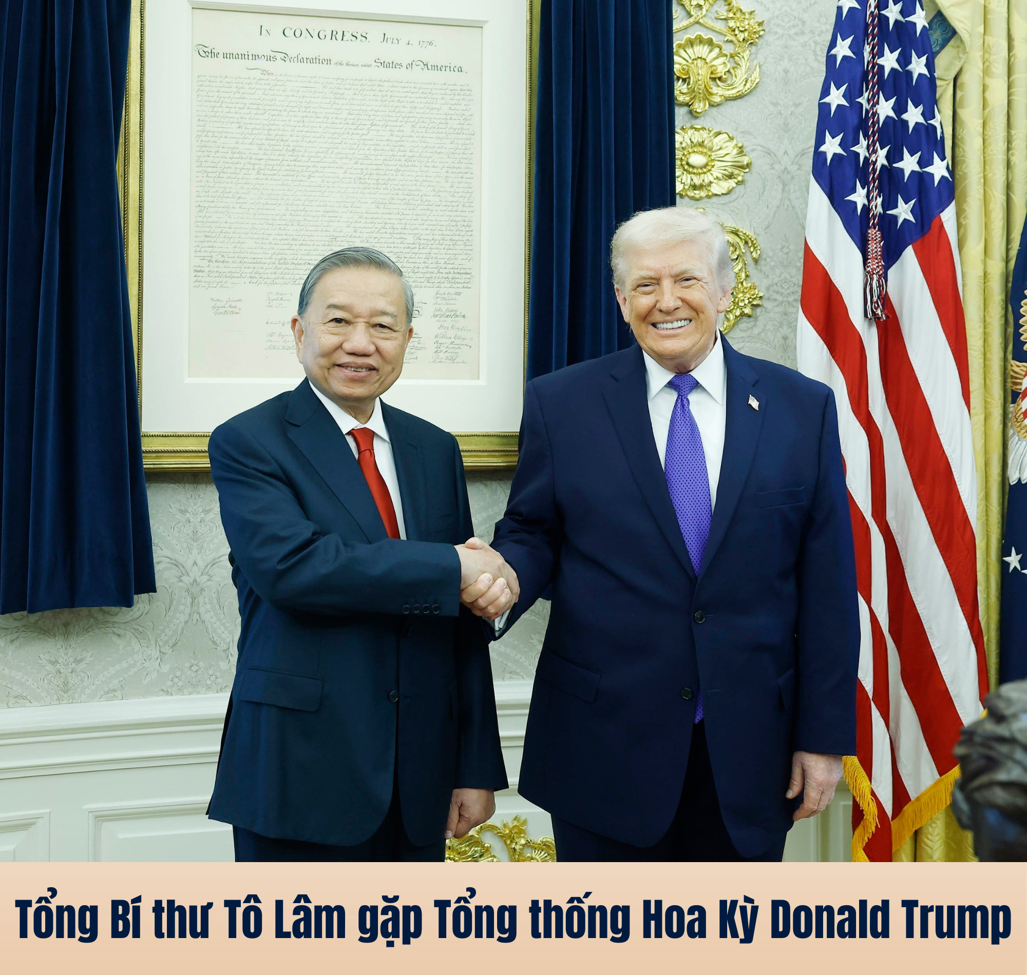 Tổng thống Donald Trump chúc mừng Tổng Bí thư Tô Lâm được bầu lại làm Tổng Bí thư Ban Chấp hành Trung ương Đảng Cộng sản Việt Nam khoá XIV; bày tỏ vui mừng được đón tiếp Tổng Bí thư tại Nhà Trắng. Tổng thống Donald Trump bày tỏ tình cảm yêu mến đối với nhân dân Việt Nam và cá nhân Tổng Bí thư Tô Lâm. Tổng thống Donald Trump nhắc lại cam kết của Hoa Kỳ ủng hộ một Việt Nam "mạnh, độc lập, tự cường, thịnh vượng".