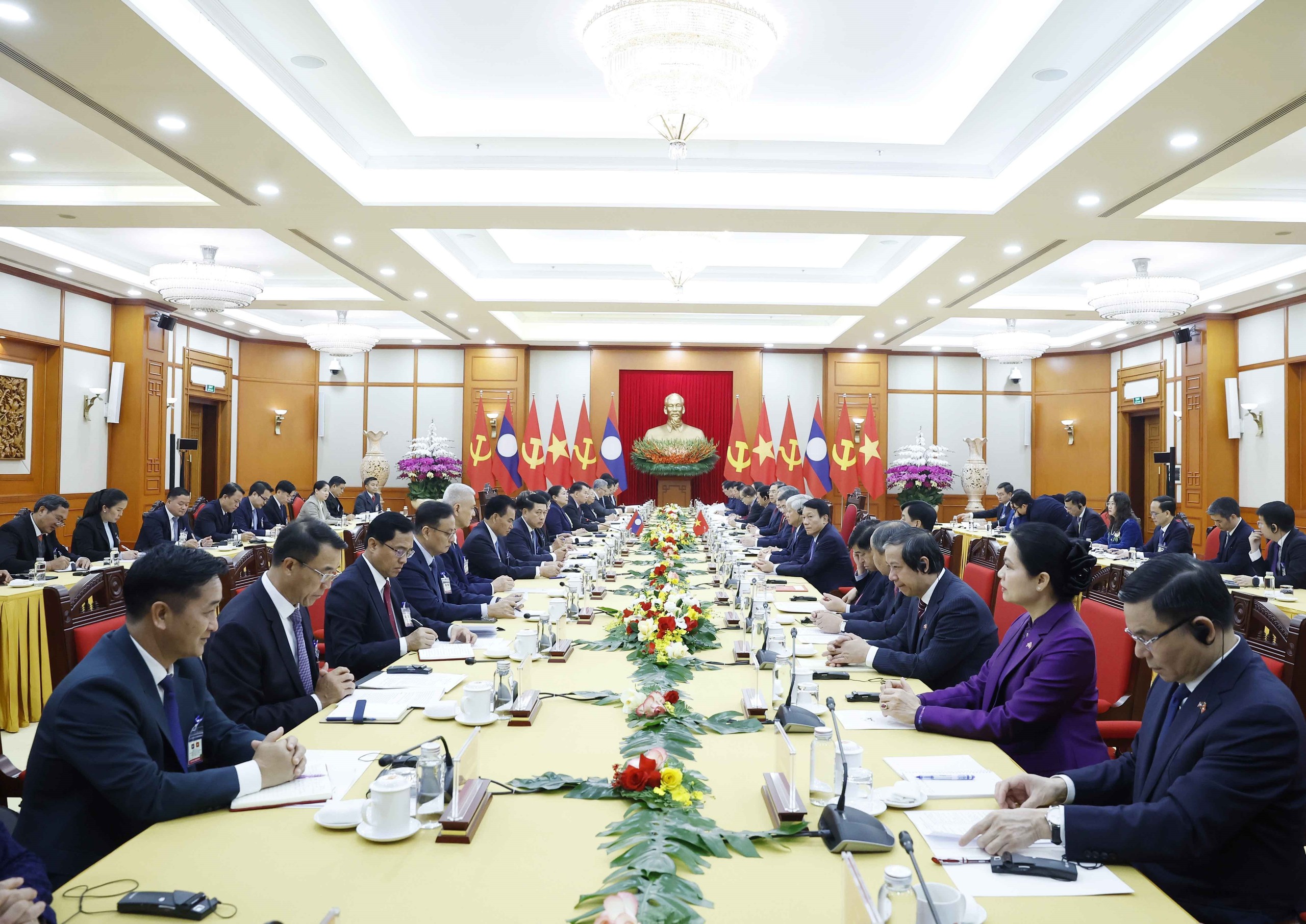 Cuộc hội đàm giữa Tổng Bí thư Tô Lâm và đoàn cấp cao Việt Nam với Tổng Bí thư, Chủ tịch nước Lào Thongloun Sisoulith và đoàn cấp cao Lào. Ảnh: Thống Nhất - TTXVN