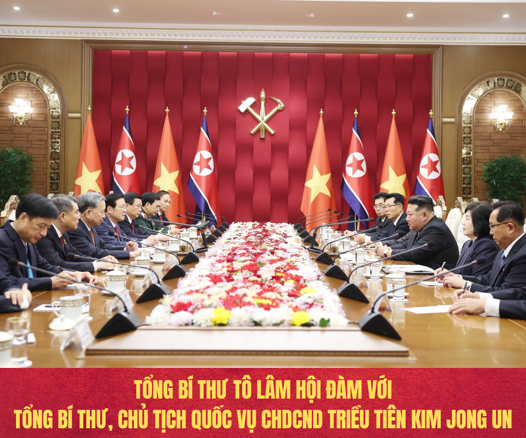 Tổng Bí thư Tô Lâm và Tổng Bí thư, Chủ tịch Quốc vụ Kim Jong Un đã cùng ôn lại và bày tỏ trân trọng mối quan hệ hữu nghị truyền thống giữa hai Đảng, hai nước do Chủ tịch Hồ Chí Minh và Chủ tịch Kim Nhật Thành đích thân xây dựng và các thế hệ lãnh đạo hai bên dày công vun đắp, kế thừa và phát huy; sự giúp đỡ lẫn nhau chí nghĩa, chí tình trong những năm tháng cách mạng gian khổ. Hai nhà lãnh đạo bày tỏ vui mừng trước việc quan hệ hai Đảng, hai nước tiếp tục được củng cố và tăng cường, nhất trí cùng thúc đẩy quan hệ Việt Nam - Triều Tiên bước vào giai đoạn phát triển mới thiết thực, hiệu quả hơn, góp phần thực hiện mục tiêu phát triển của mỗi nước, vì hạnh phúc của nhân dân hai nước, vì hòa bình, ổn định, phát triển của khu vực và thế giới.