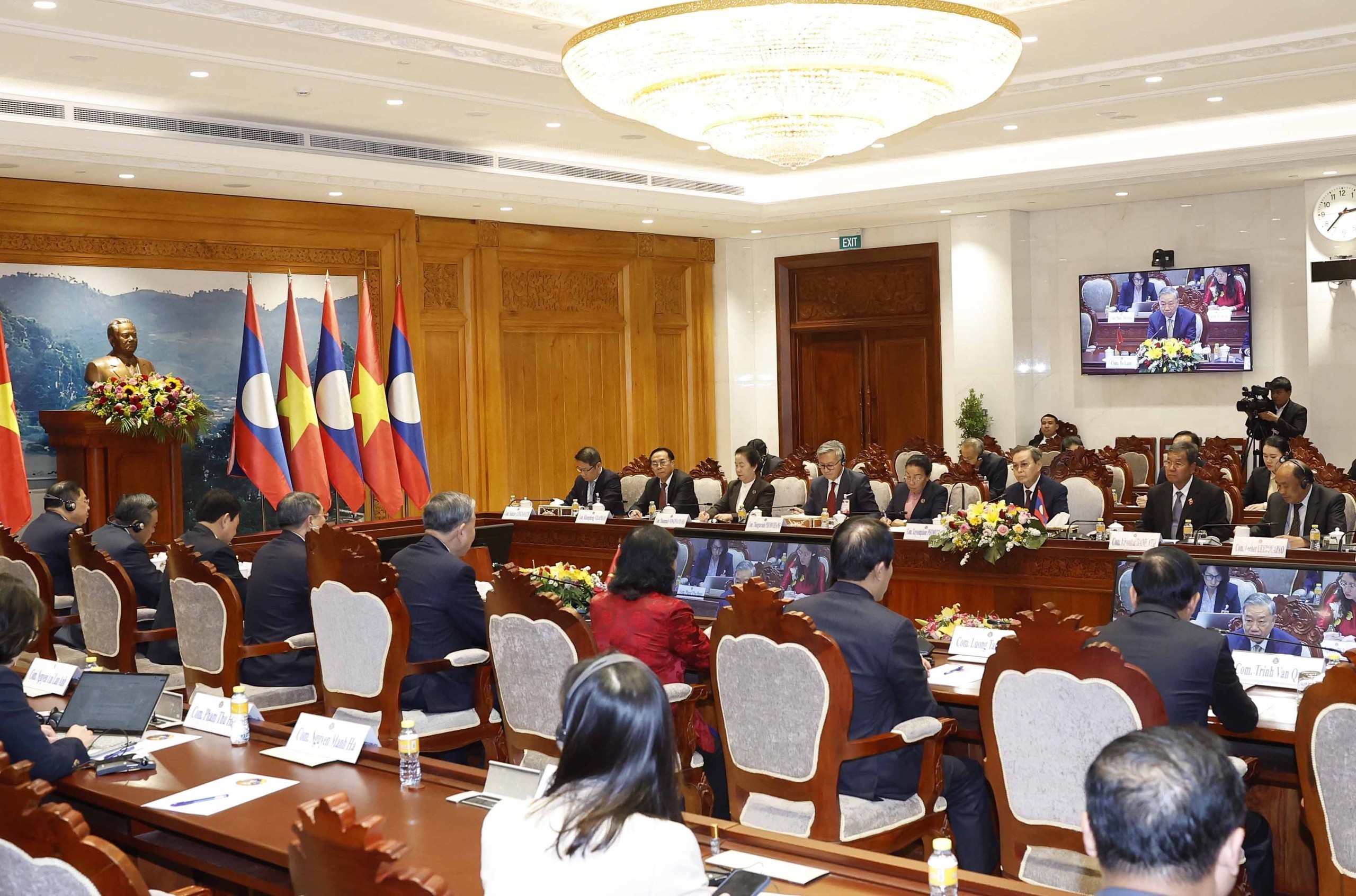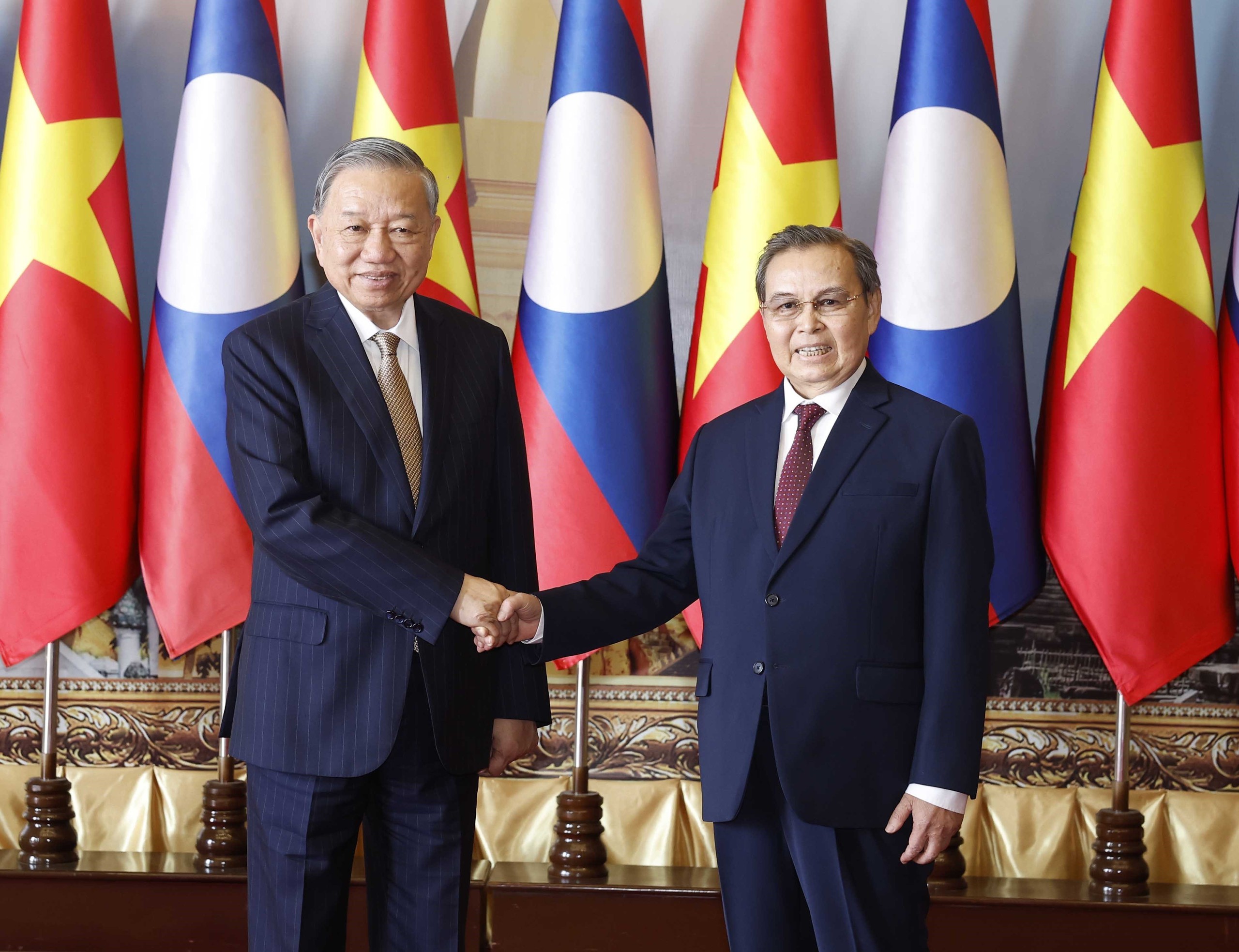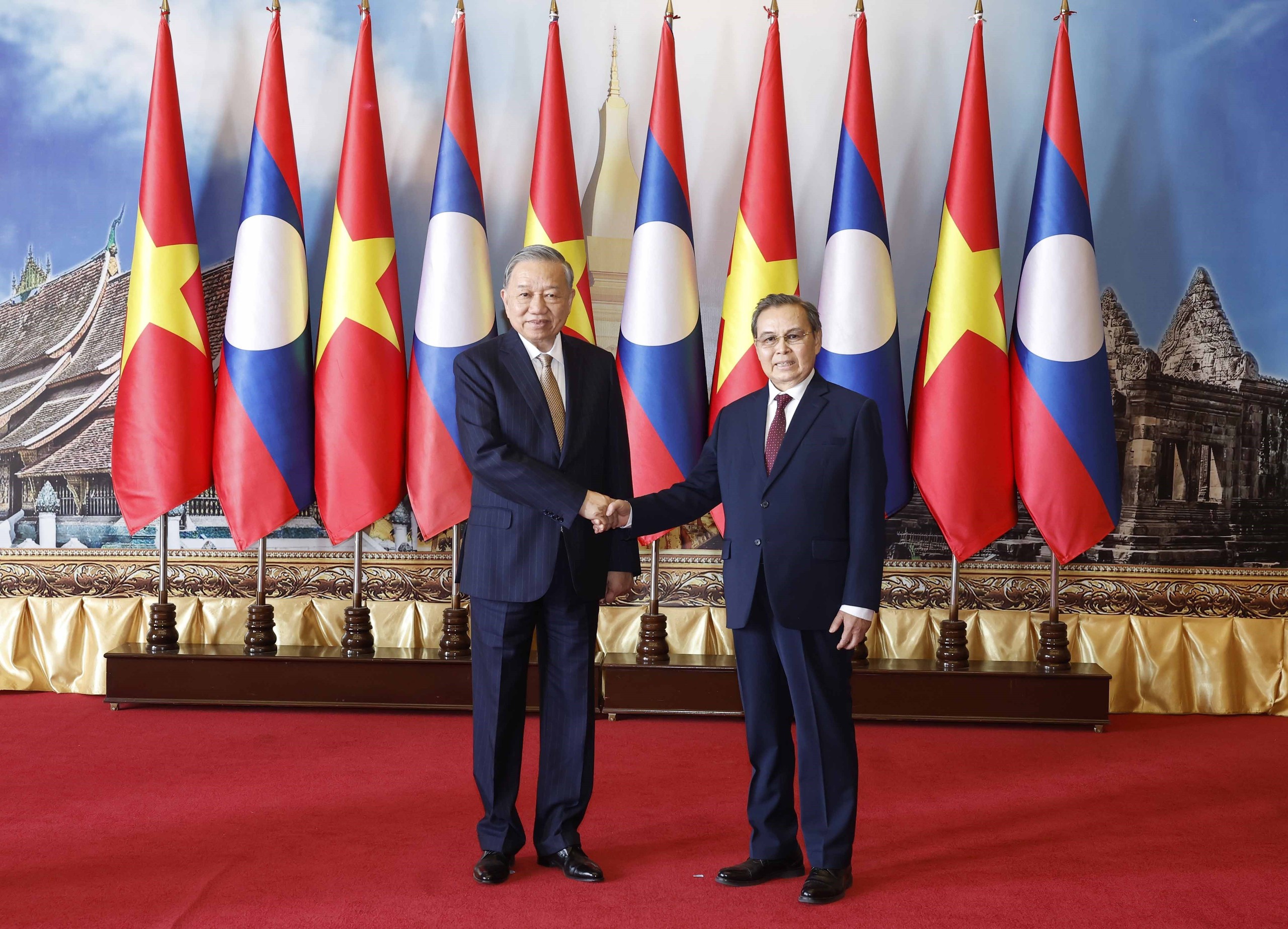 Tổng Bí thư Tô Lâm bày tỏ vui mừng thăm cấp Nhà nước tới Lào trên cương vị Tổng Bí thư Ban Chấp hành Trung ương Đảng Cộng sản Việt Nam khóa XIV; vui mừng được gặp lại Chủ tịch Quốc hội Lào Saysomphone Phomvihane, đồng thời chúc mừng đồng chí tiếp tục được tín nhiệm tái đắc cử vào Bộ Chính trị Ban Chấp hành Trung ương Đảng Nhân dân Cách mạng Lào khóa XII.