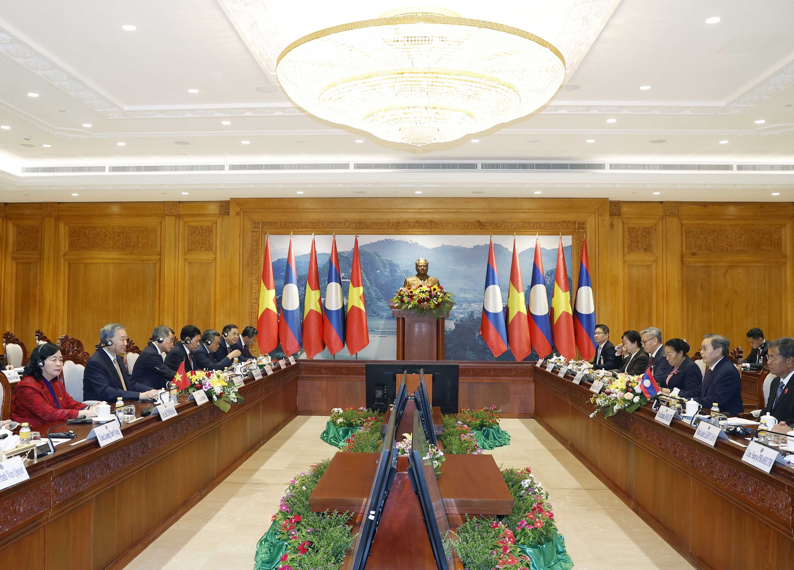 Nhân dịp này, Tổng Bí thư Tô Lâm khẳng định, trước sau như một, Việt Nam luôn coi trọng và dành ưu tiên hàng đầu cho mối quan hệ đặc biệt “có một không hai” với Lào, ủng hộ mạnh mẽ, toàn diện sự nghiệp bảo vệ, xây dựng đất nước Lào; bày tỏ trân trọng cảm ơn sự giúp đỡ to lớn, chí tình, chí nghĩa, quý báu mà Đảng, Nhà nước và Nhân dân Lào đã dành cho Việt Nam trong suốt thời gian qua. Tổng Bí thư thông báo một số nét nổi bật về tình hình Việt Nam, nhất là kết quả Đại hội XIV của Đảng và việc Việt Nam đang tích cực chuẩn bị cho cuộc bầu cử Quốc hội khóa XVI và Hội đồng nhân dân các cấp nhiệm kỳ 2026 - 2031.