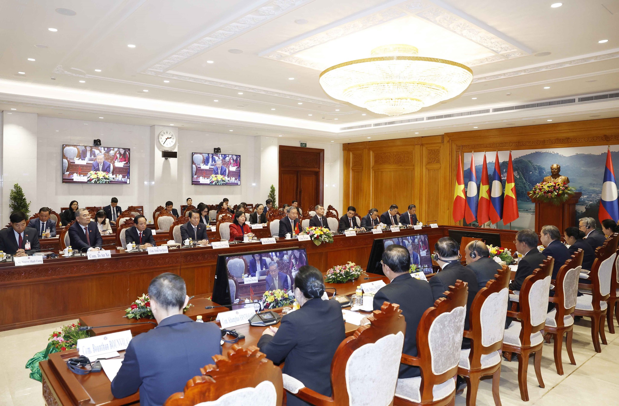 Sáng 5/2/2026, sau Lễ đón chính thức tại Phủ Chủ tịch ở Thủ đô Vientiane, Tổng Bí thư Tô Lâm và Tổng Bí thư, Chủ tịch nước Lào Thongloun Sisoulith cùng đoàn đại biểu cấp cao hai nước tiến hành hội đàm.